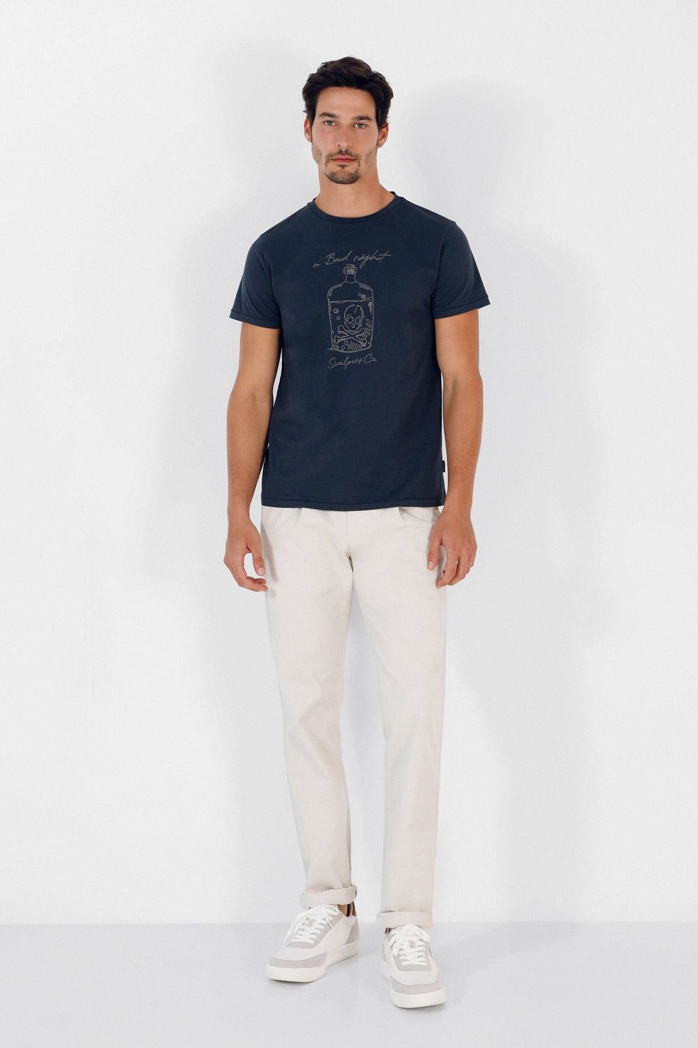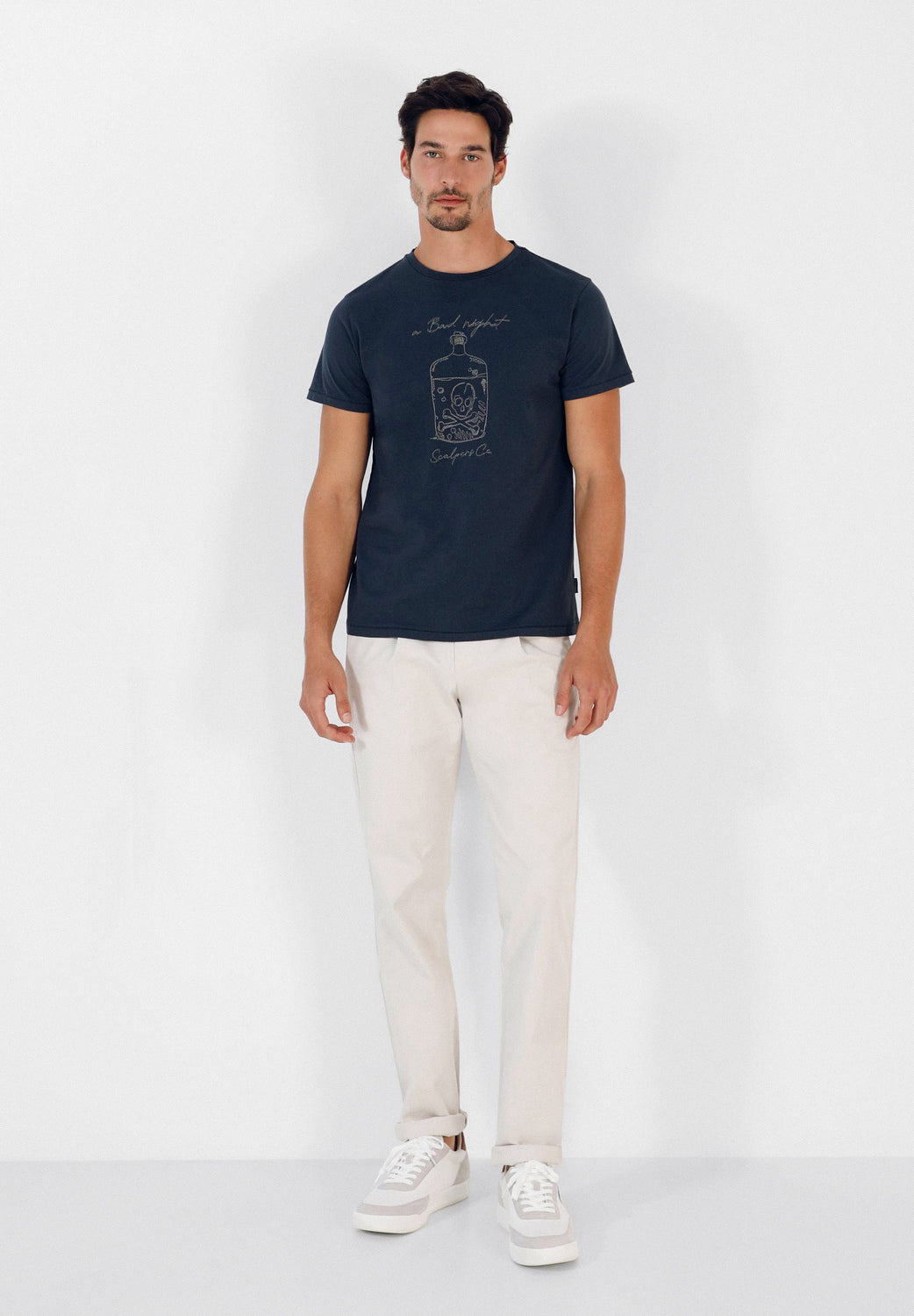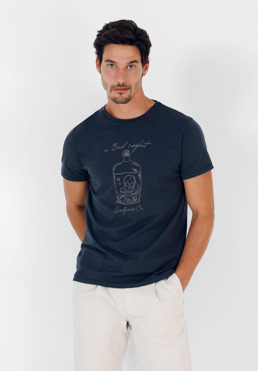 Camiseta con aplicación bordada de calavera delantero confeccionada en tejido 100% algodón orgánico. Corte Regular Fit, cuello redondo y manga corta.