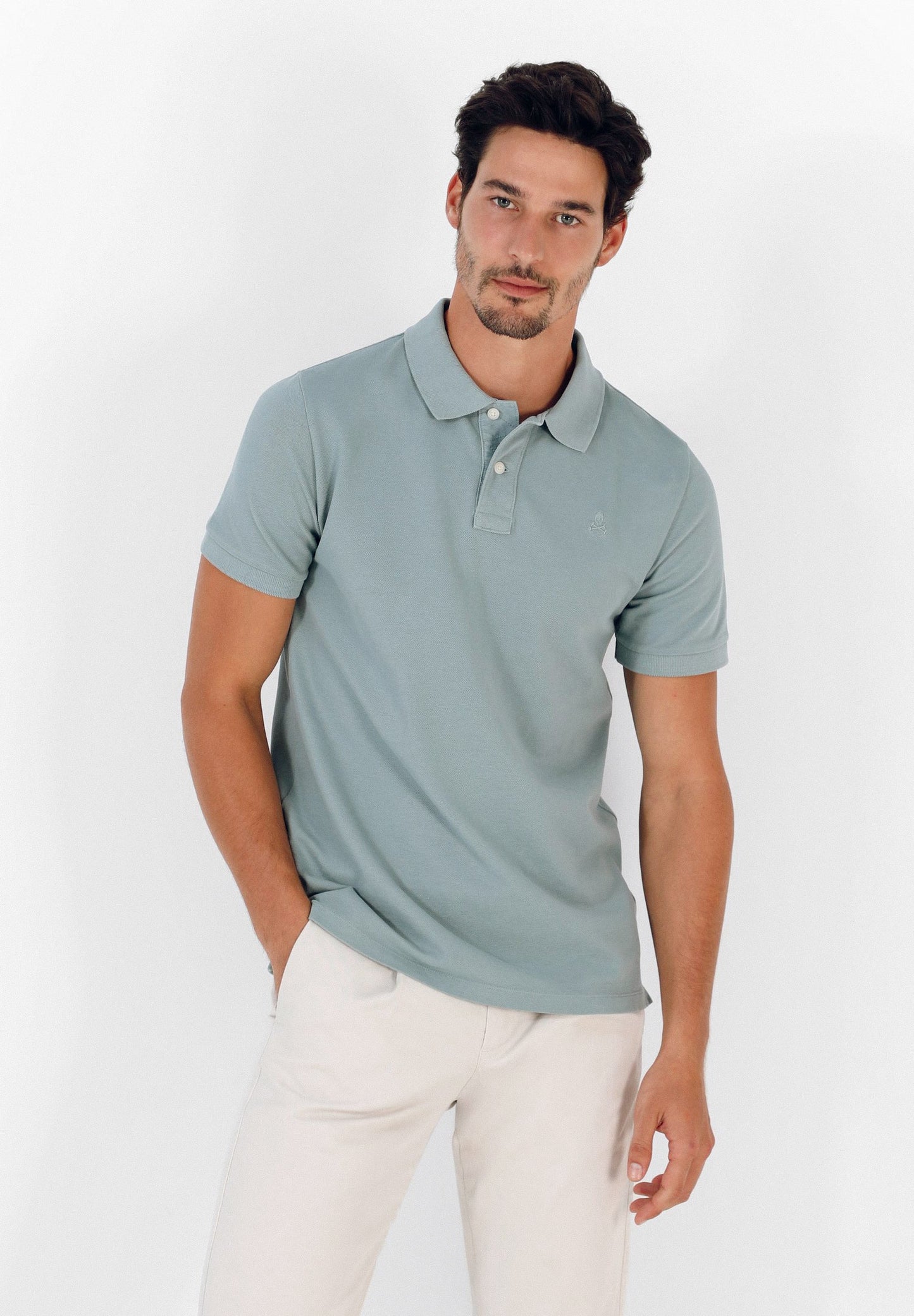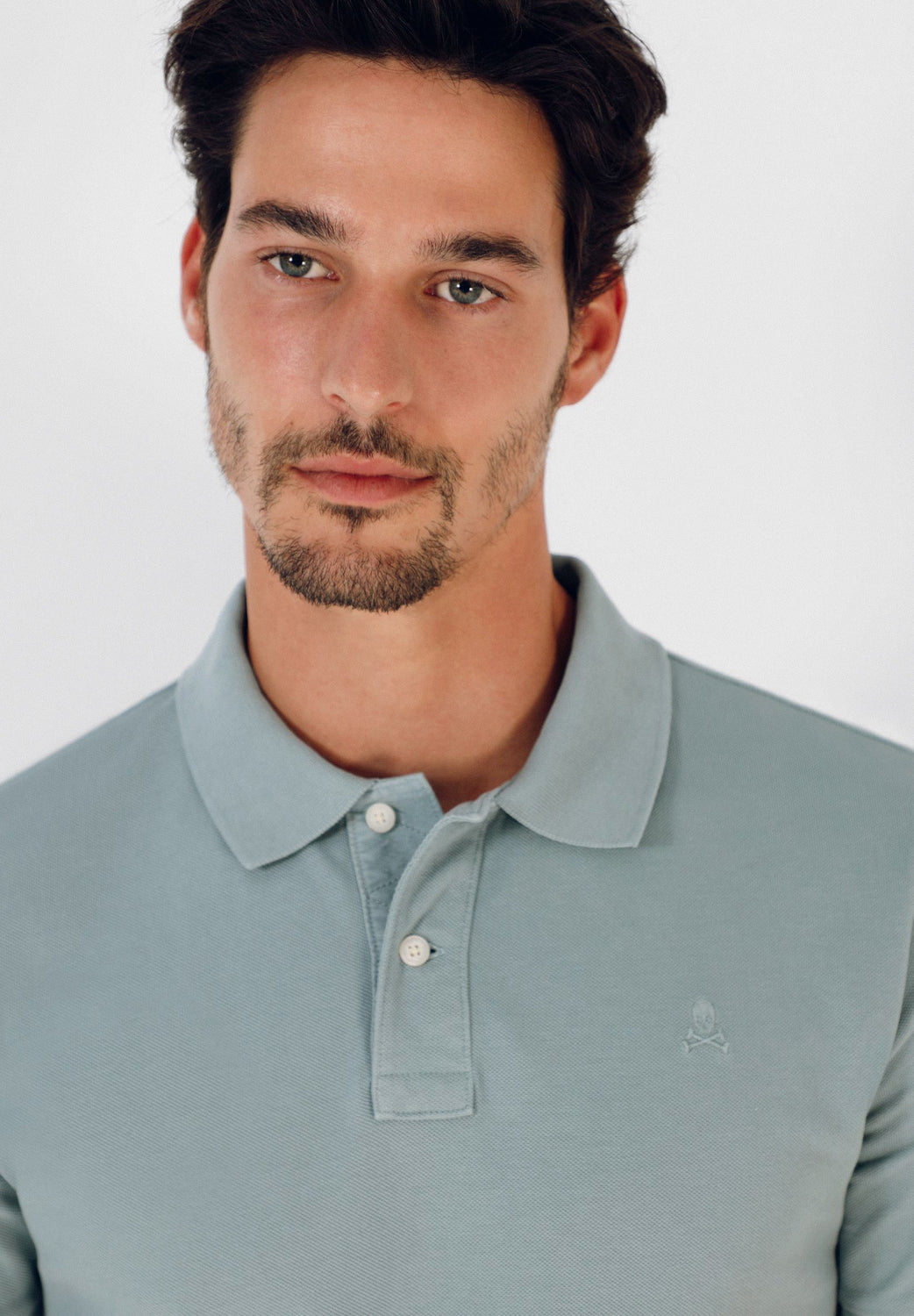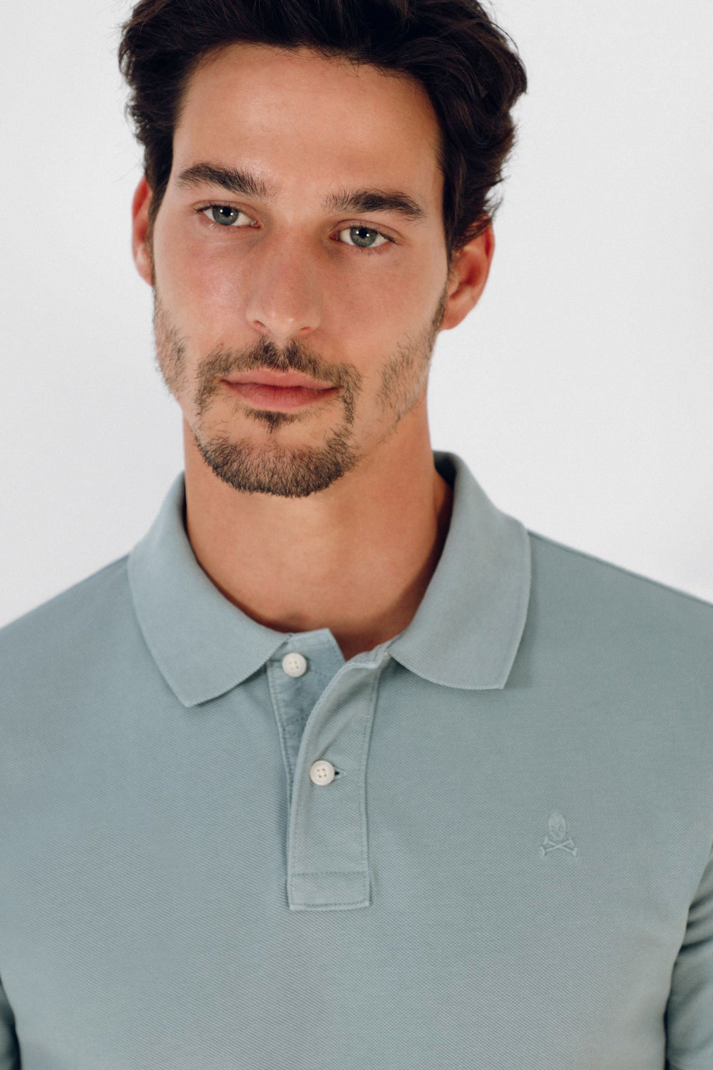 Polo garment dyed confeccionado en tejido 100% algodón. Corte Regular Fit, cuello clásico y cierre con botones. Manga corta y detalle de calavera a tono.