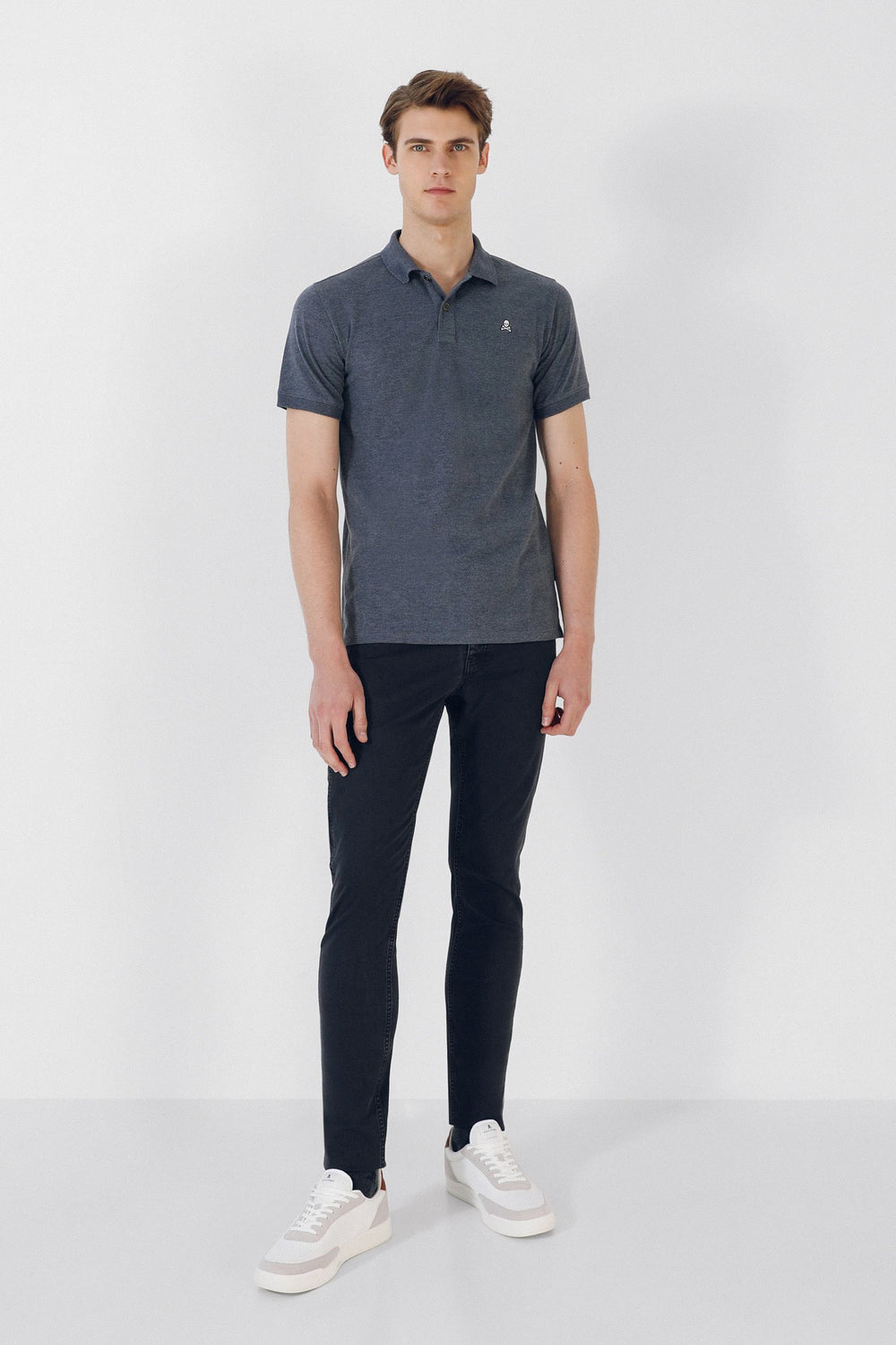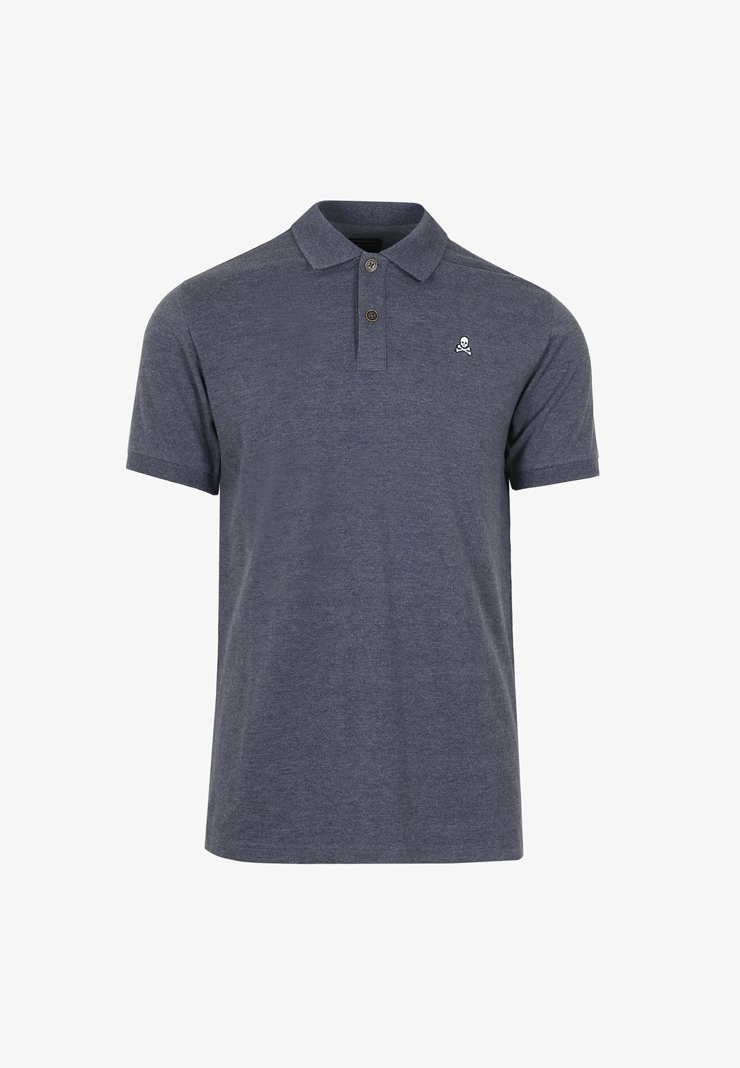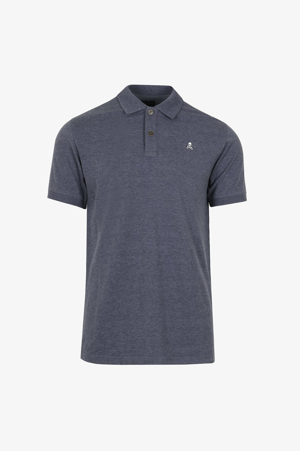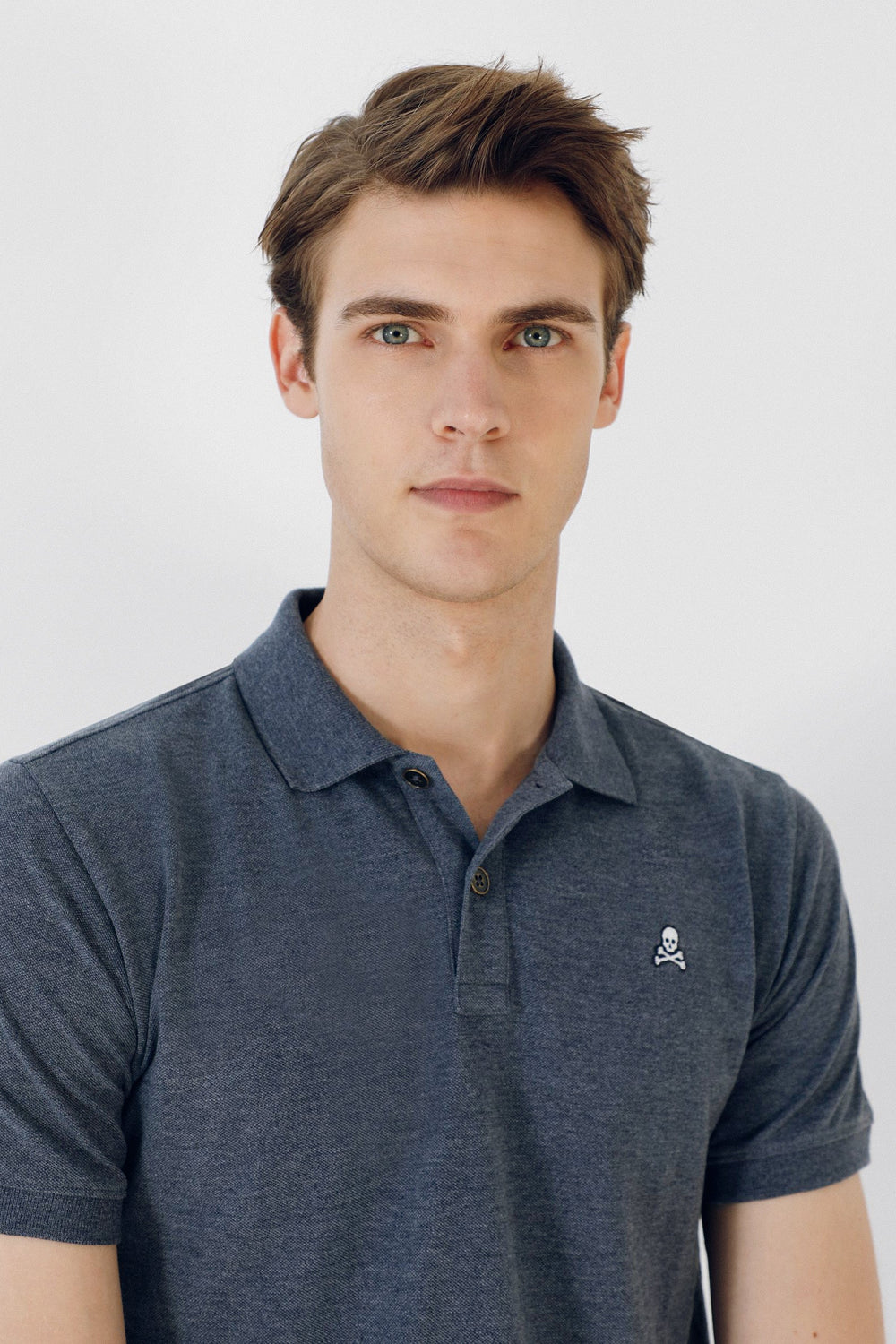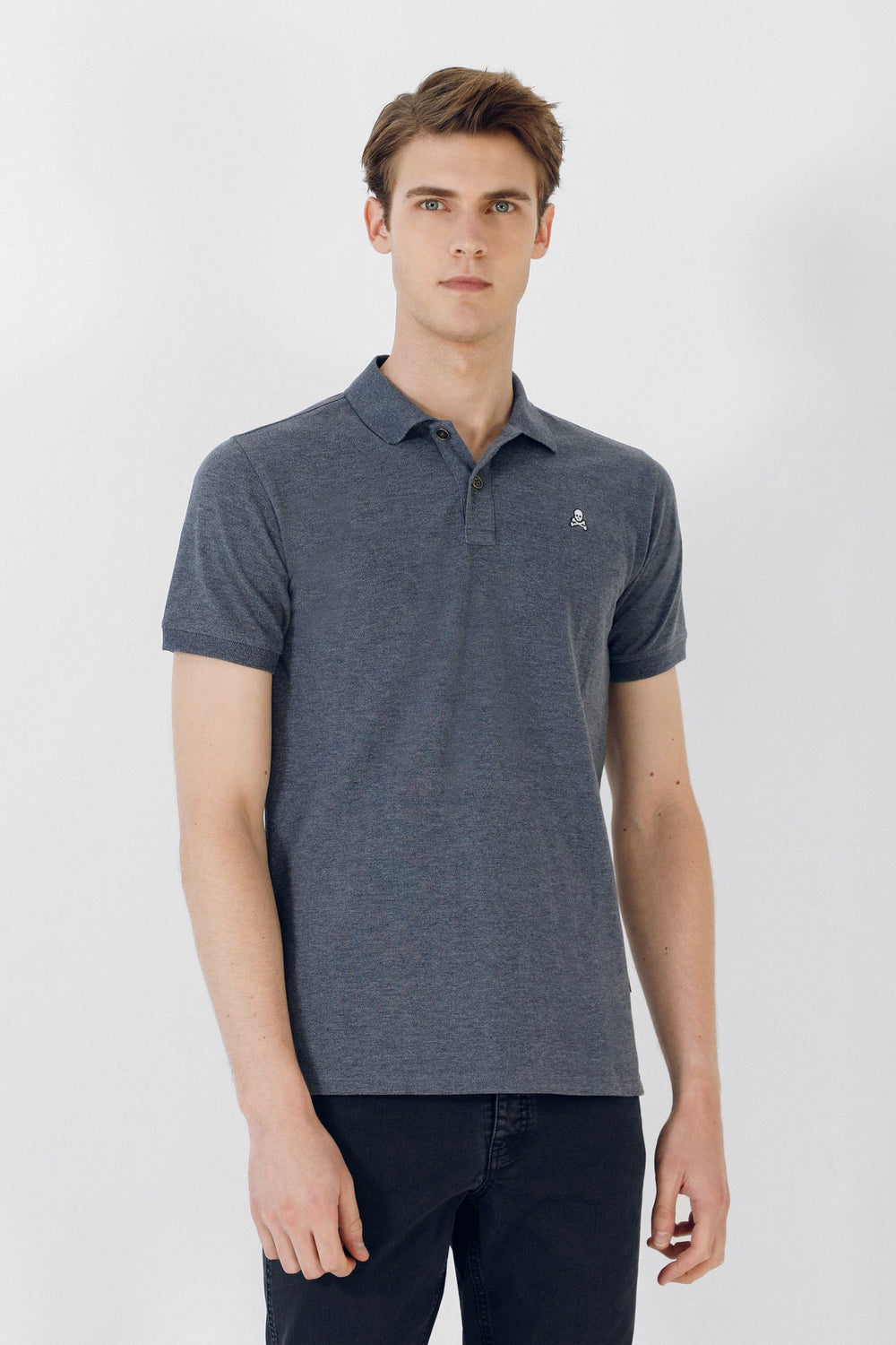 Polo confeccionado en tejido de algodón y poliéster reciclado. Corte Regular Fit, cuello clásico y cierre con botones. Manga corta y detalle de parche de calavera bordada.