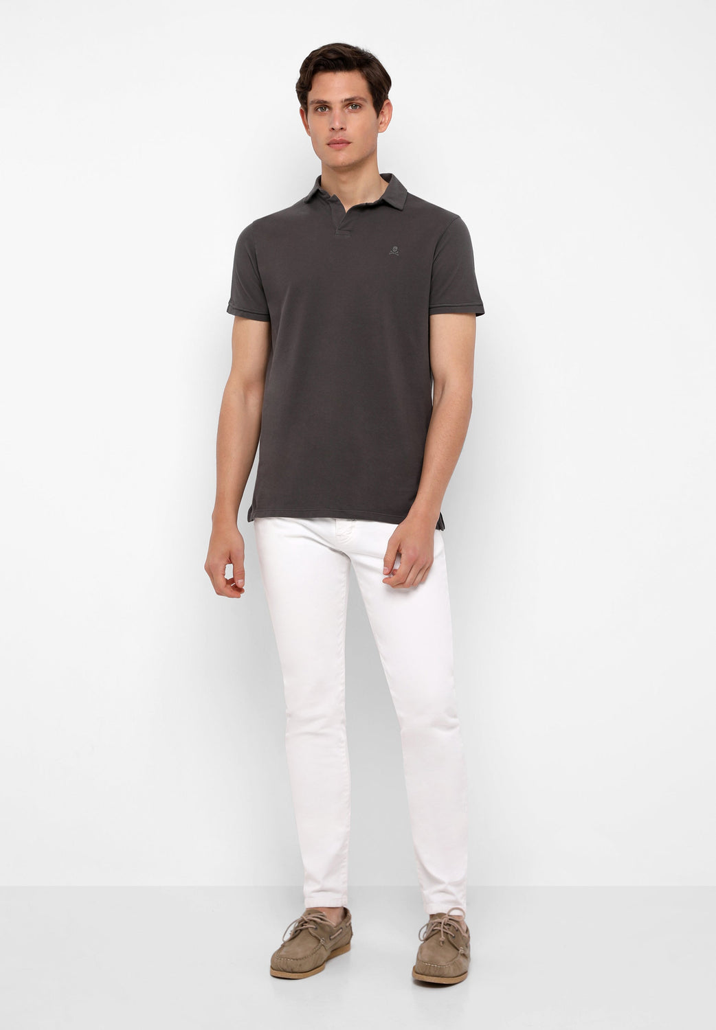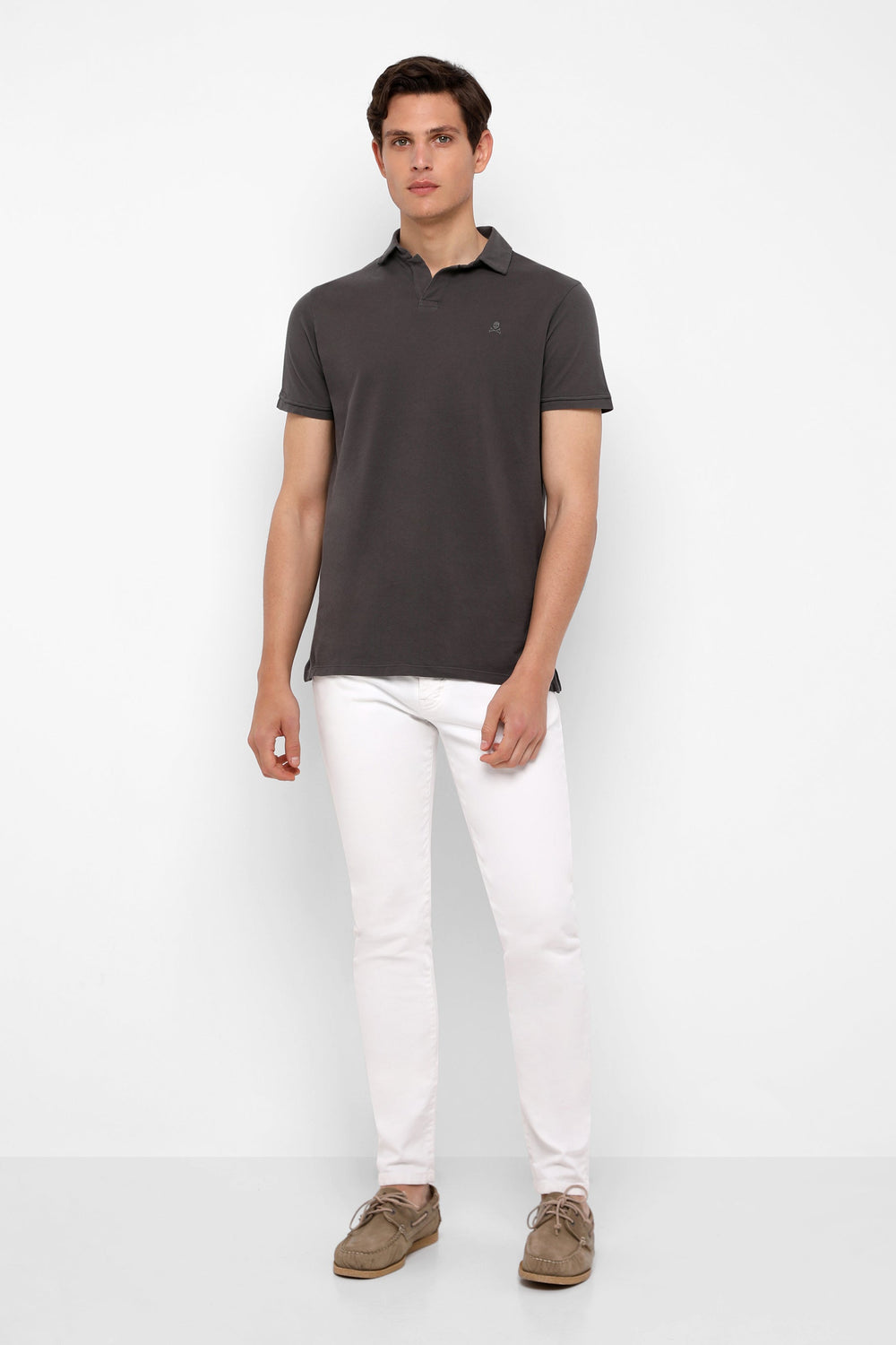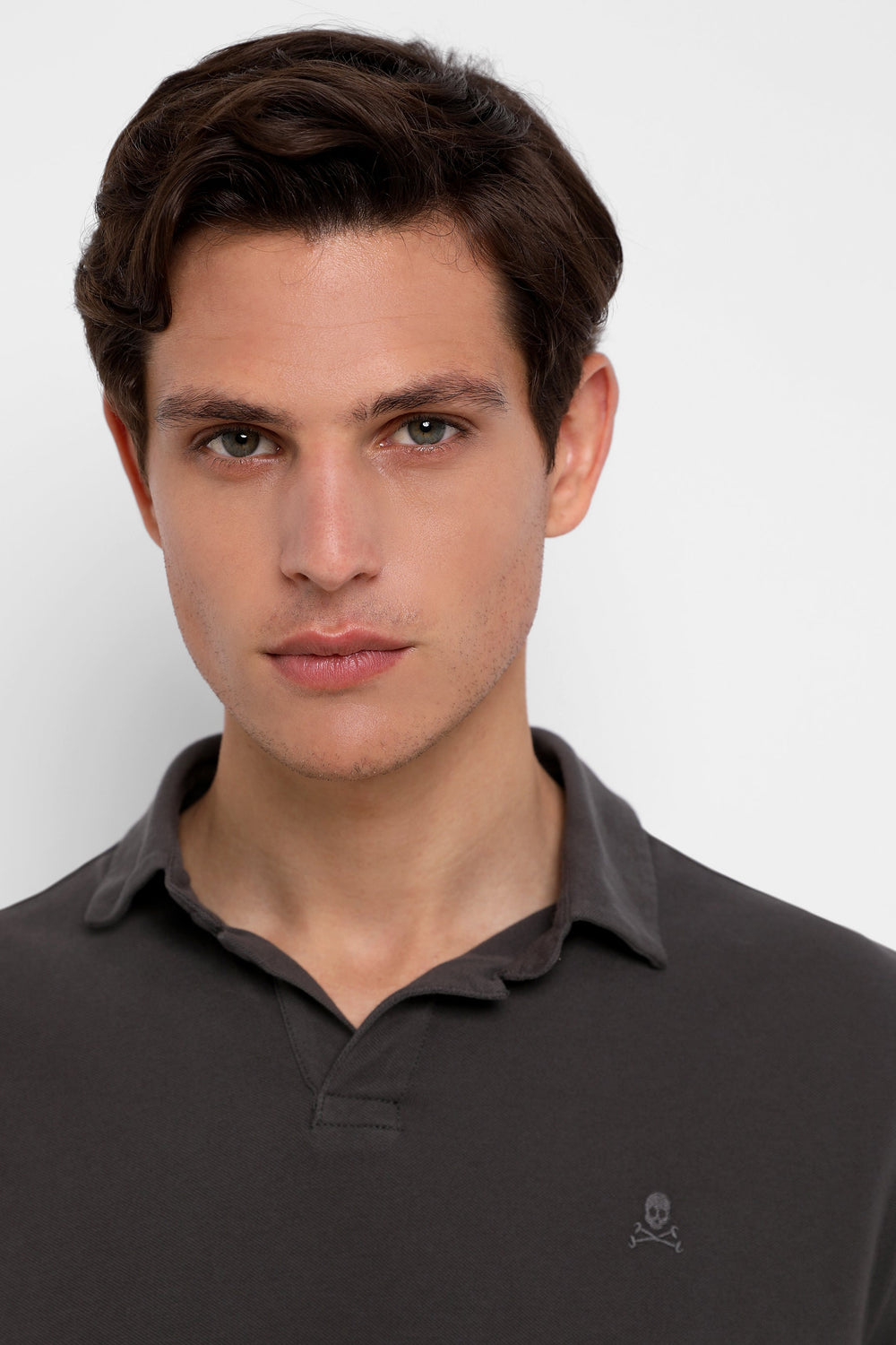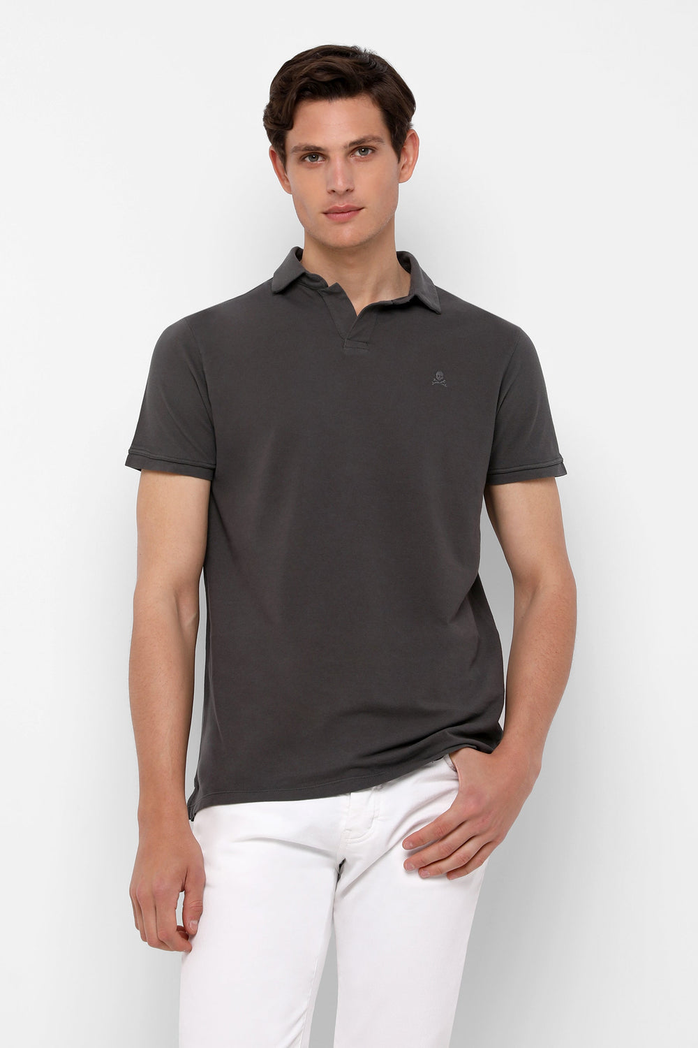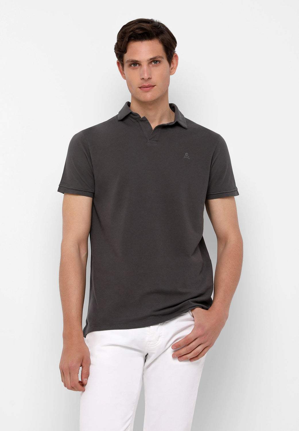 Polo confeccionado en punto fino 100% algodón orgánico. Corte Regular Fit, cuello sin botones y manga corta. Detalle de calavera bordada.