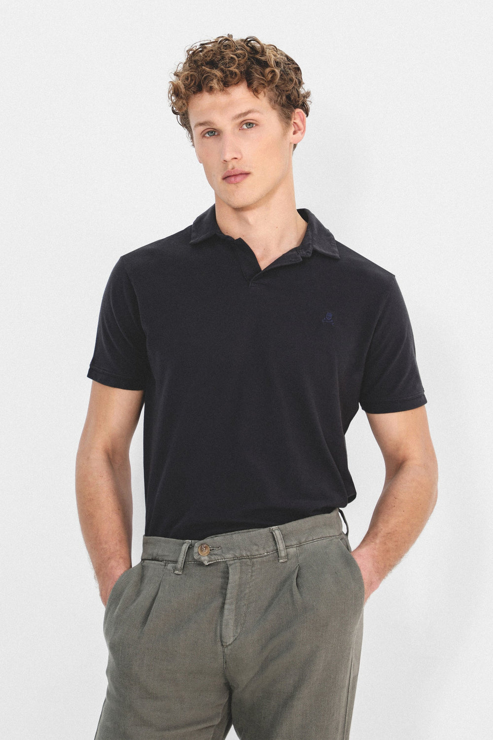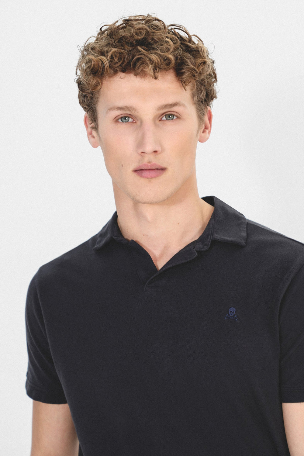 Polo confeccionado en punto fino 100% algodón orgánico. Corte Regular Fit, cuello sin botones y manga corta. Detalle de calavera bordada.