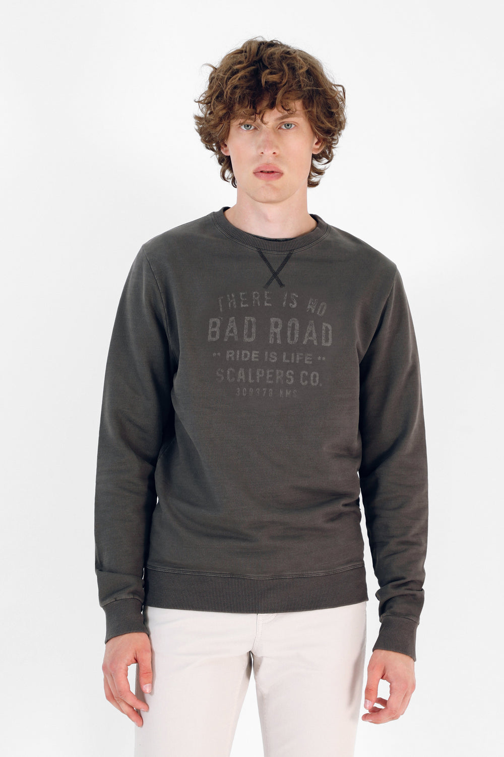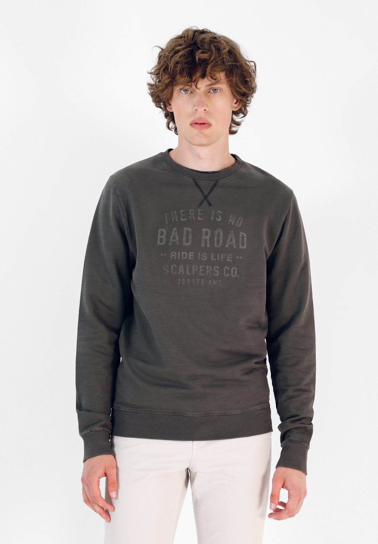 Sudadera confeccionada en tejido 100% algodón orgánico con tacto suave. Corte Regular Fit, cuello redondo con detalle de costuras y manga larga. Detalle de print delantero y ribs en bajo y puño.