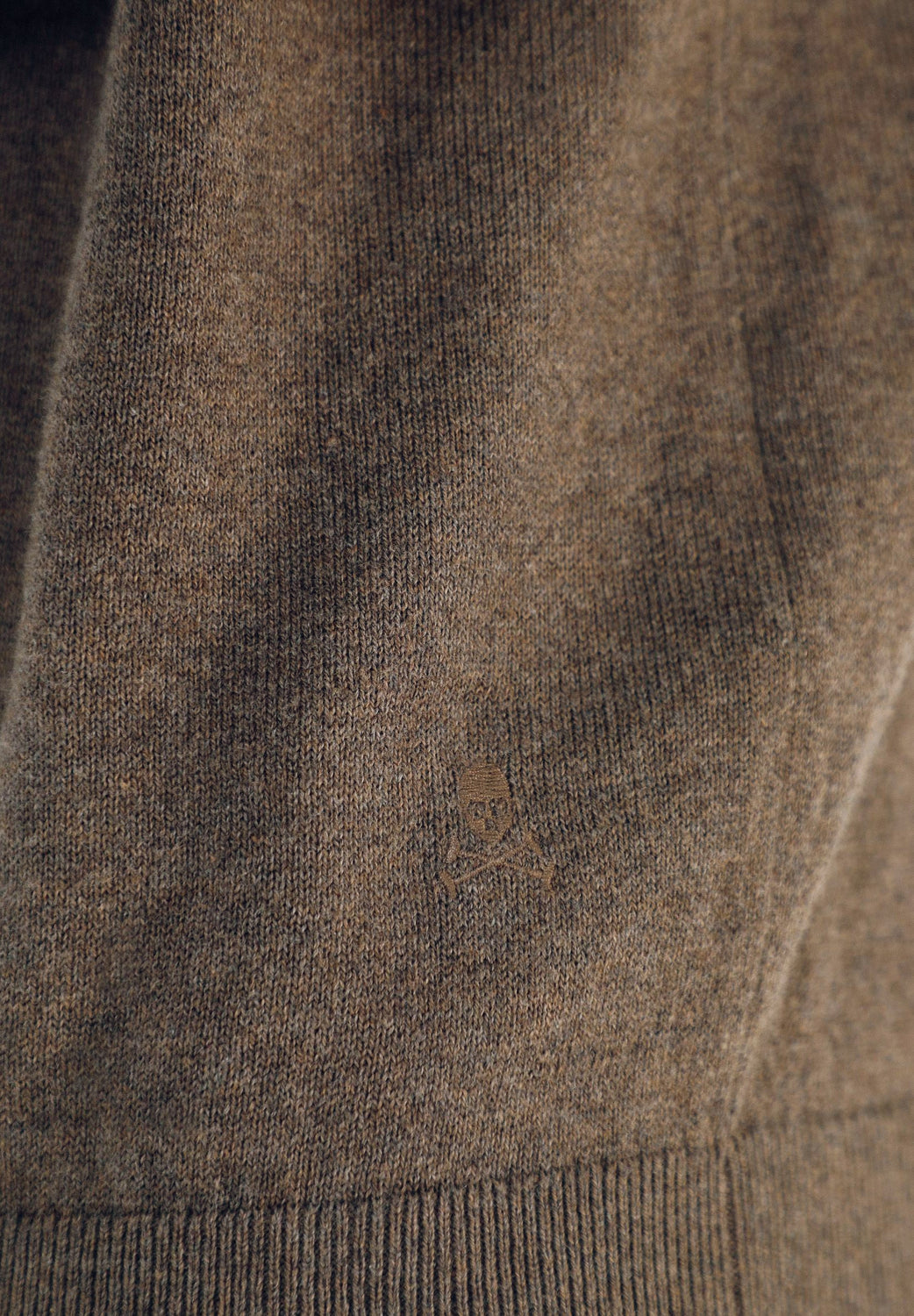 Jersey confeccionado en tejido de algodón y cashmere. Corte Regular Fit, cuello vuelto y manga larga. Detalle de calavera bordada en el bajo.