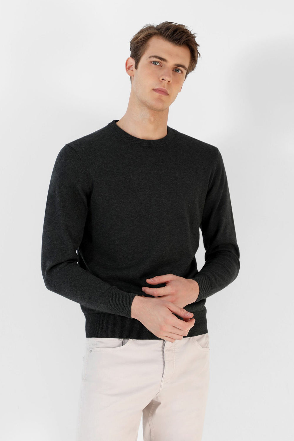 Jersey confeccionado en tejido 100% algodón BCI. Corte Regular Fit, cuello redondo y manga larga terminada en rib. Bajo terminado en rib.