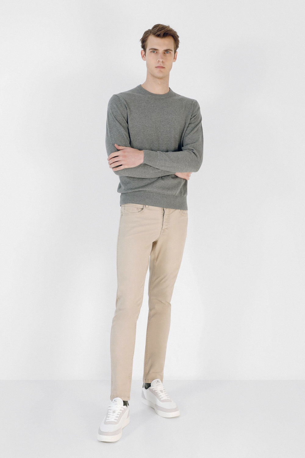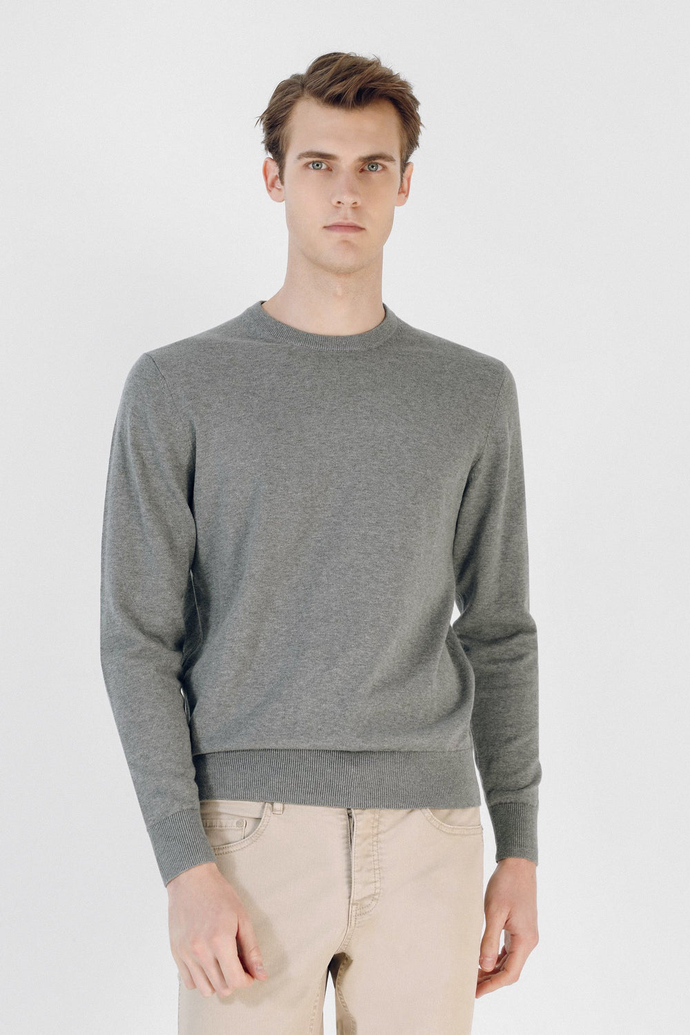 Jersey confeccionado en tejido 100% algodón BCI. Corte Regular Fit, cuello redondo y manga larga terminada en rib. Bajo terminado en rib.