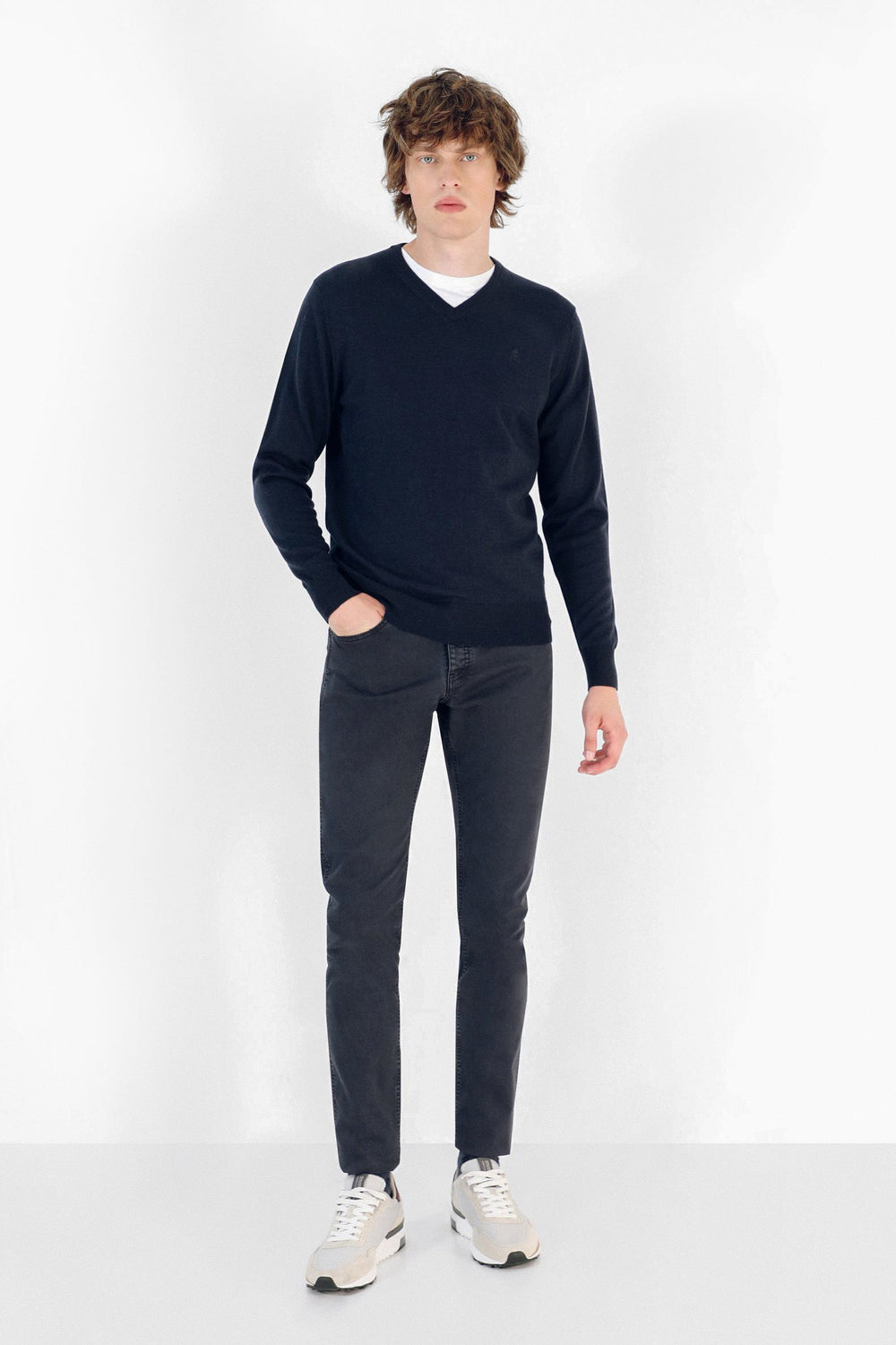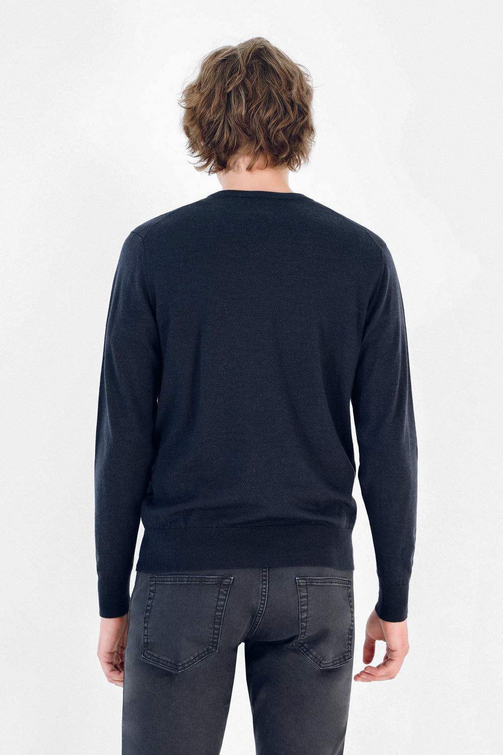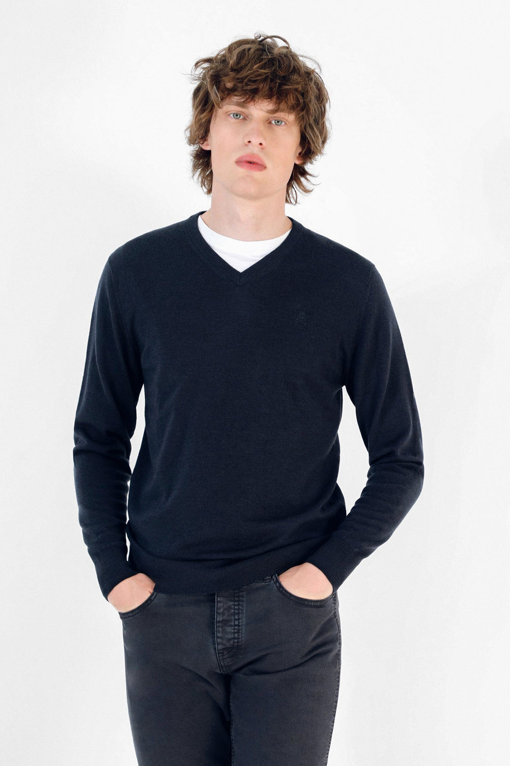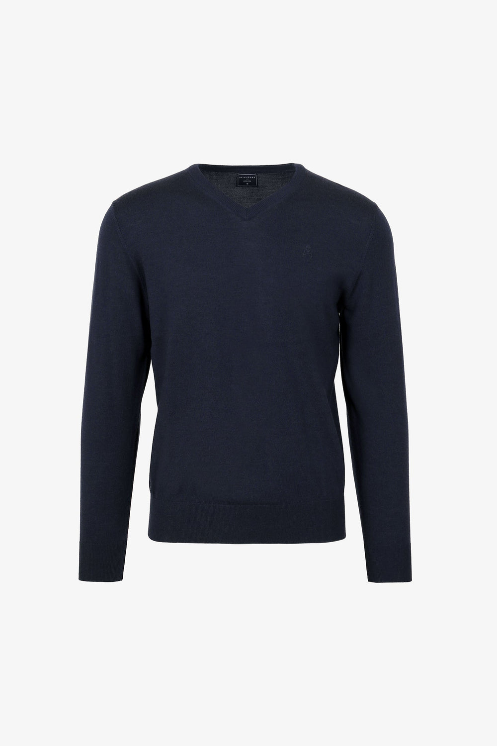 Jersey confeccionado en tejido 100% lana merino. Corte Regular Fit, cuello de pico y manga larga. Detalle de calavera a tono.
