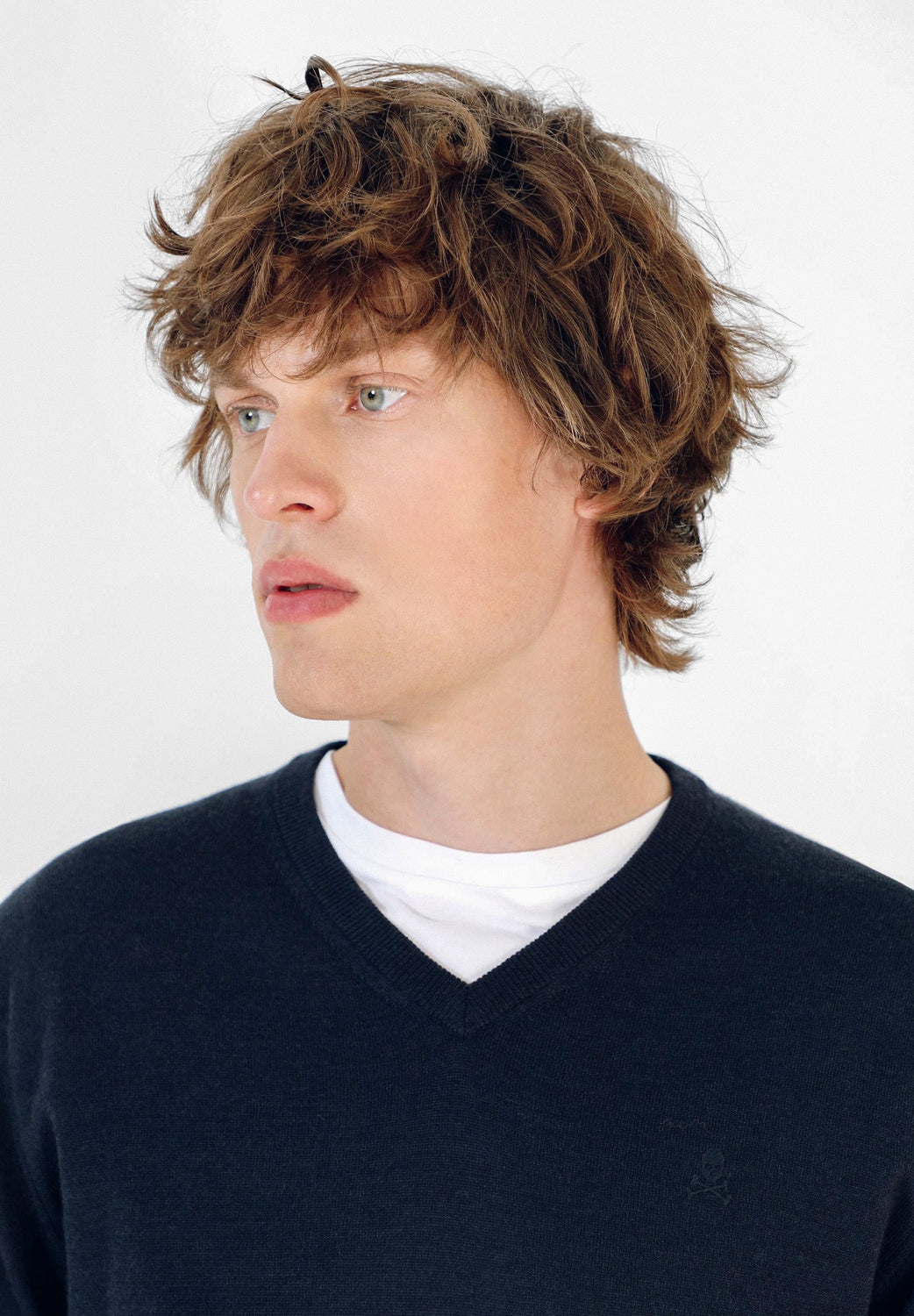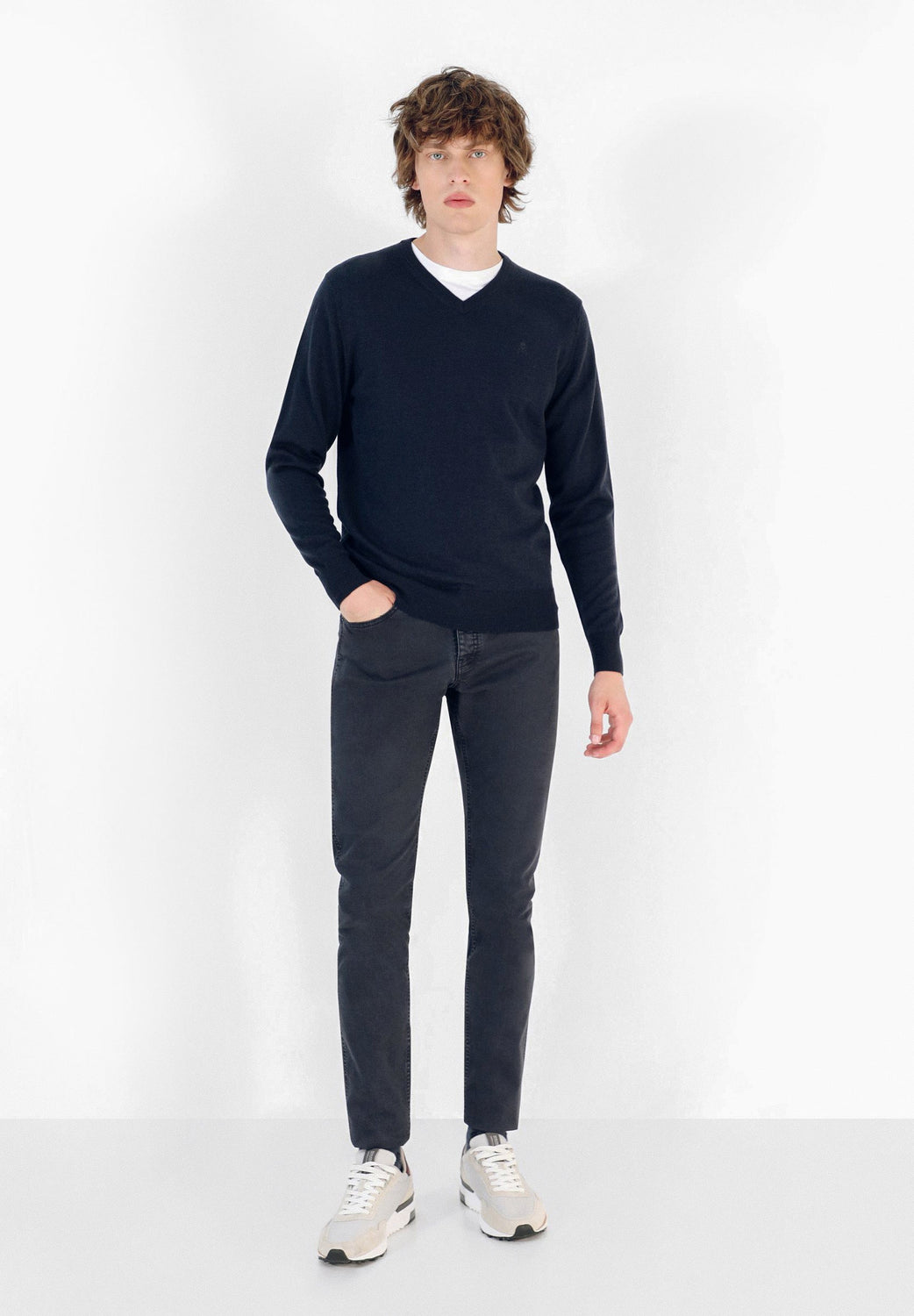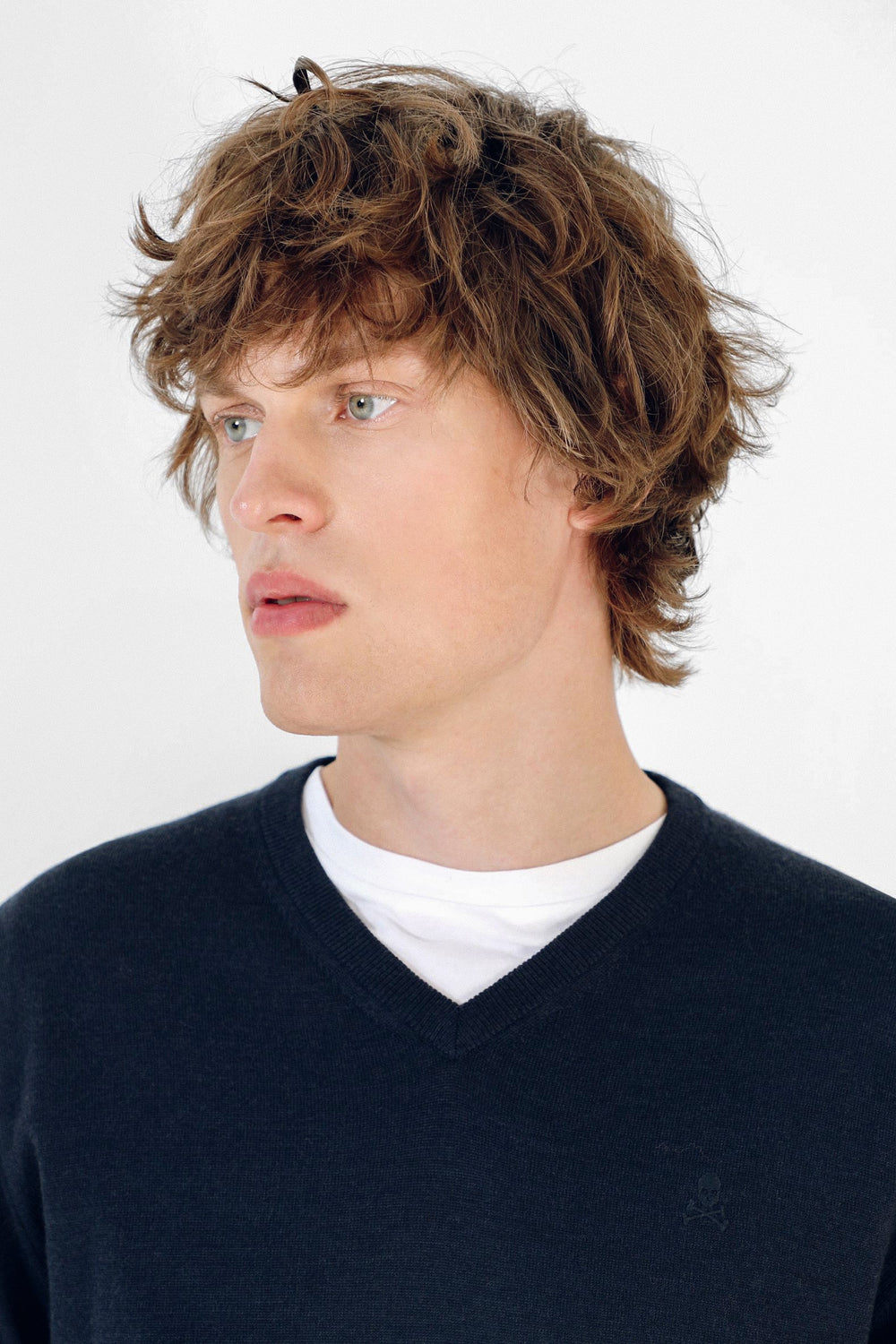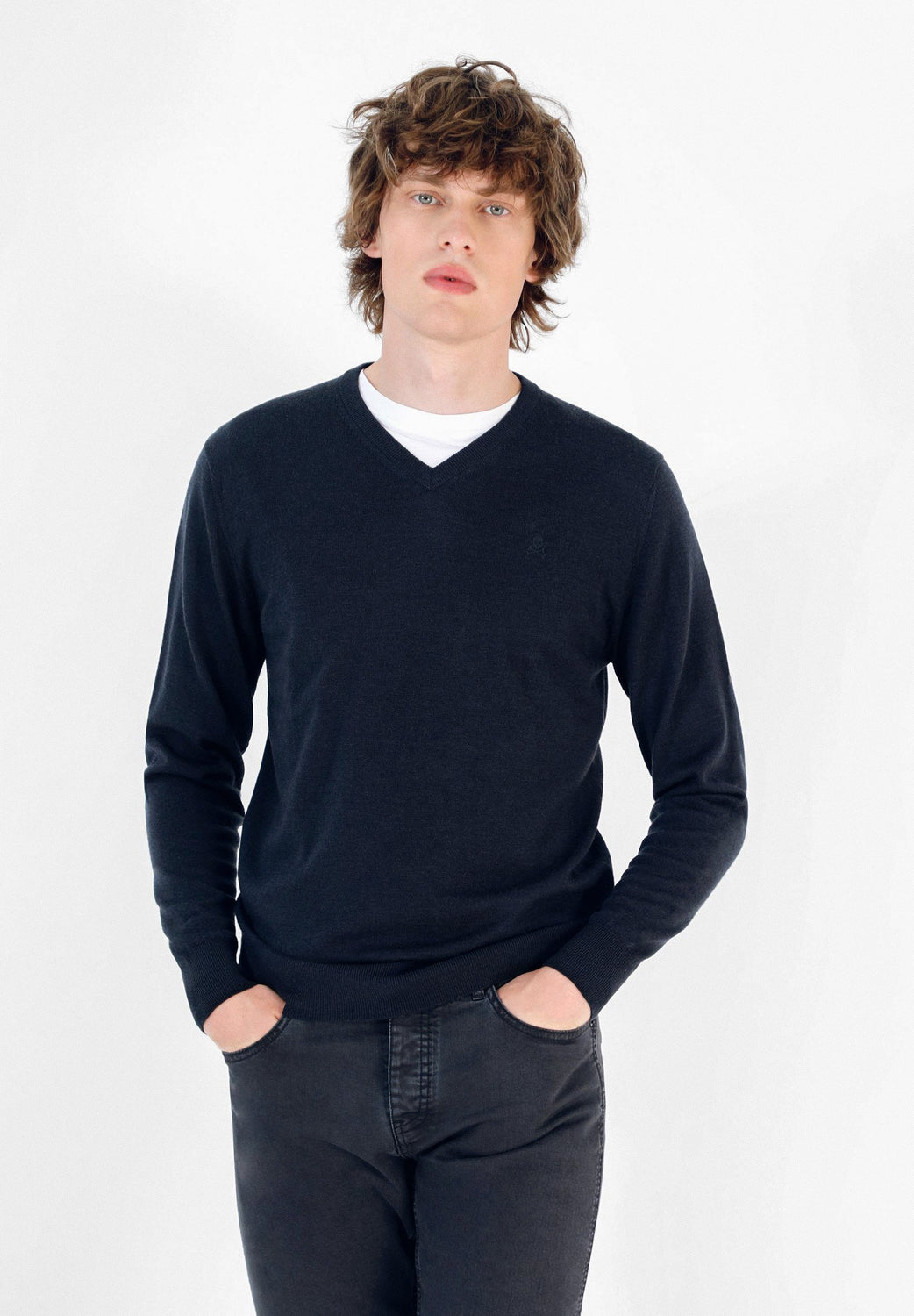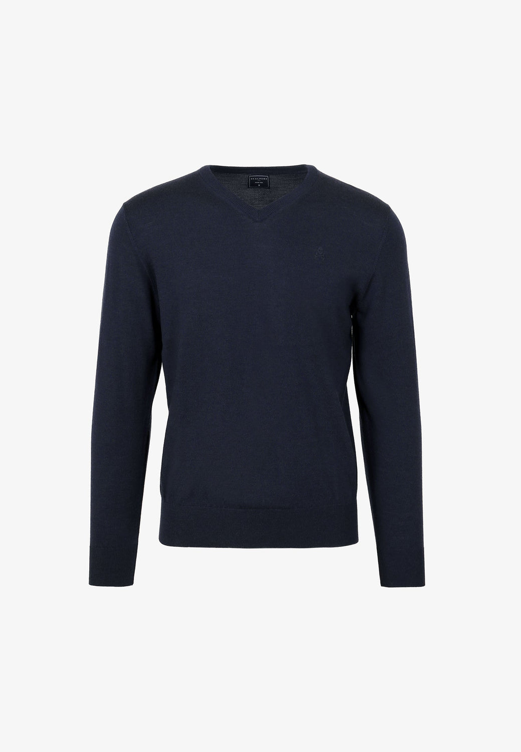 Jersey confeccionado en tejido 100% lana merino. Corte Regular Fit, cuello de pico y manga larga. Detalle de calavera a tono.
