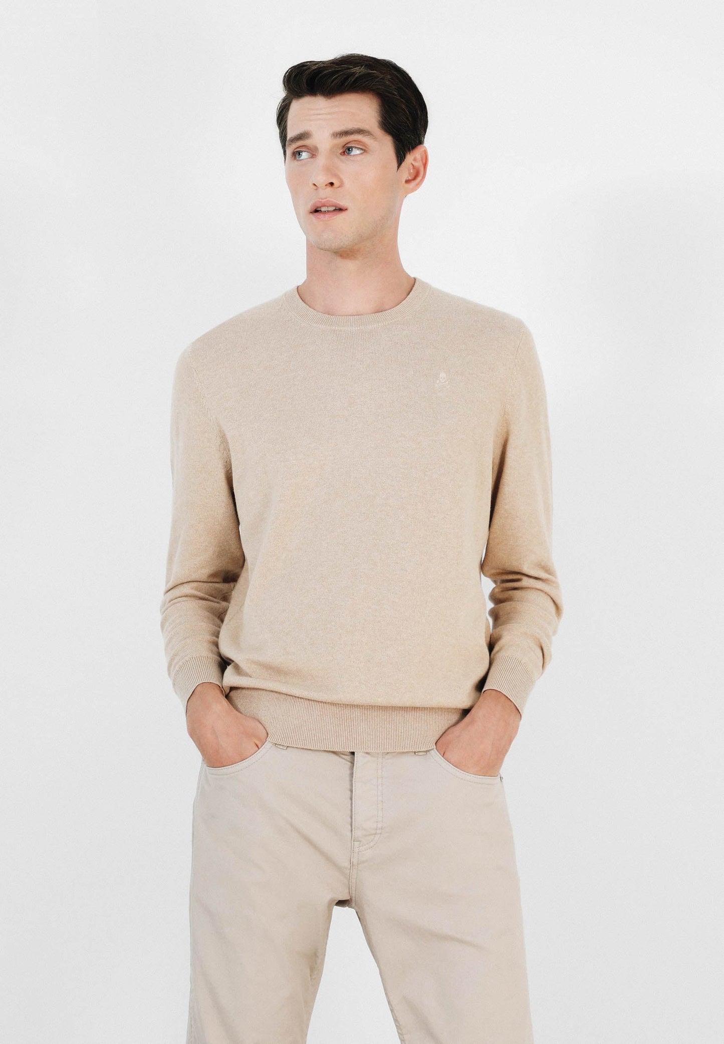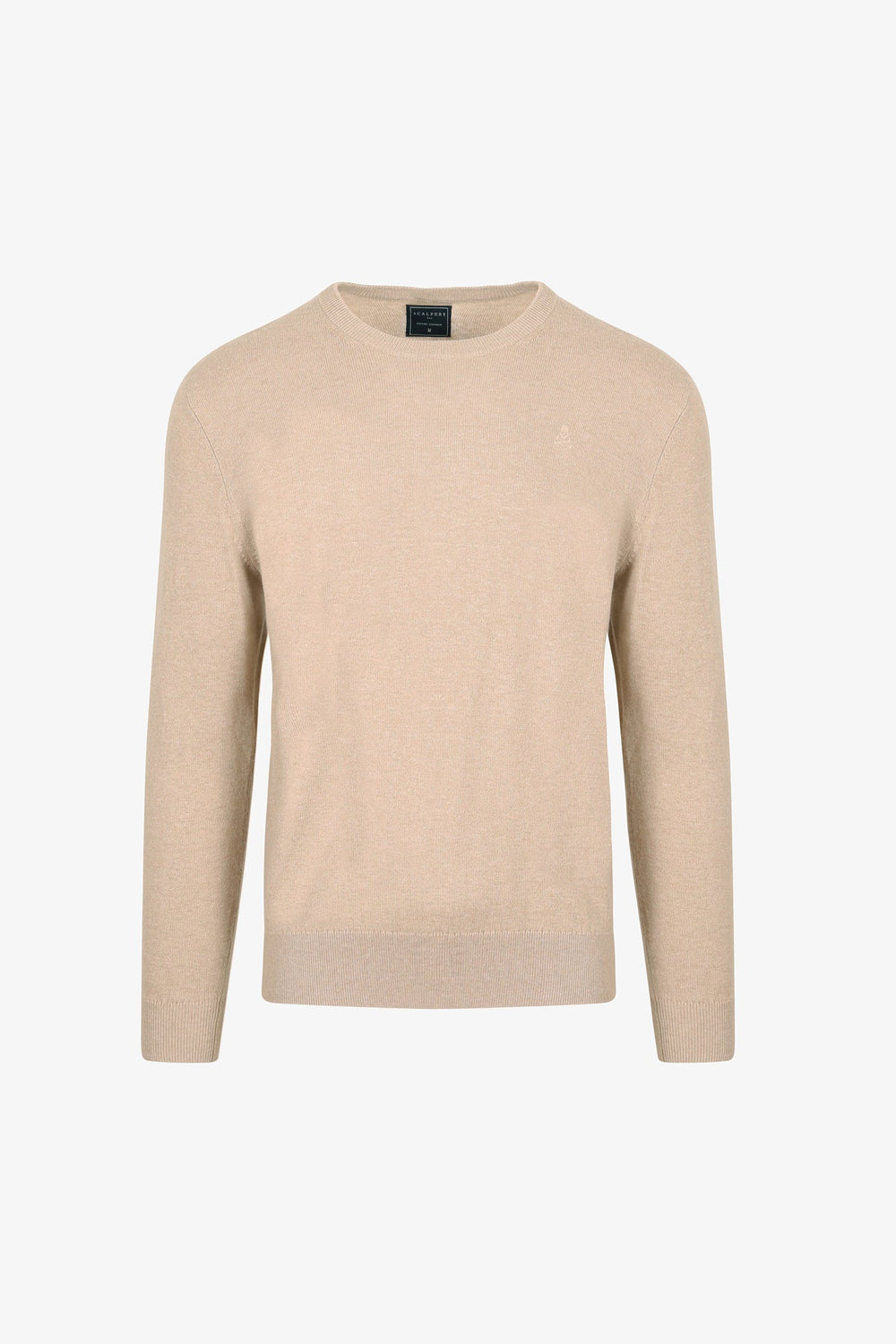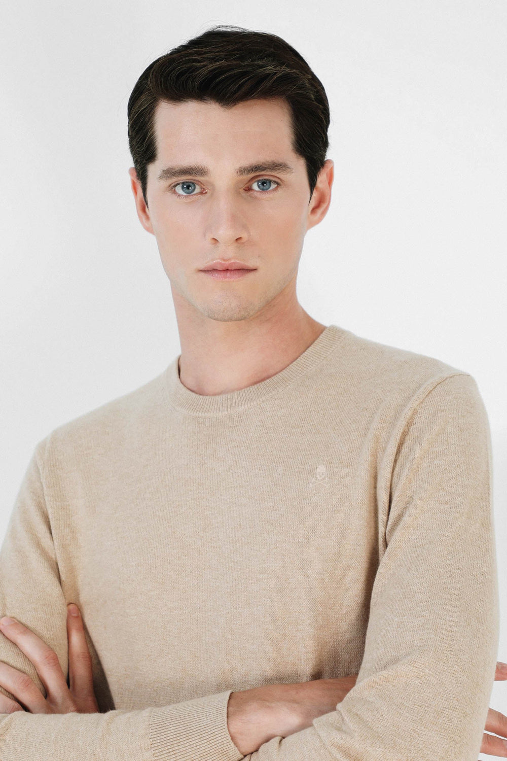 Jersey confeccionado en tejido de algodón BCI y cashmere. Corte Regular Fit, cuello redondo y manga larga. Detalle de calavera bordada a tono.