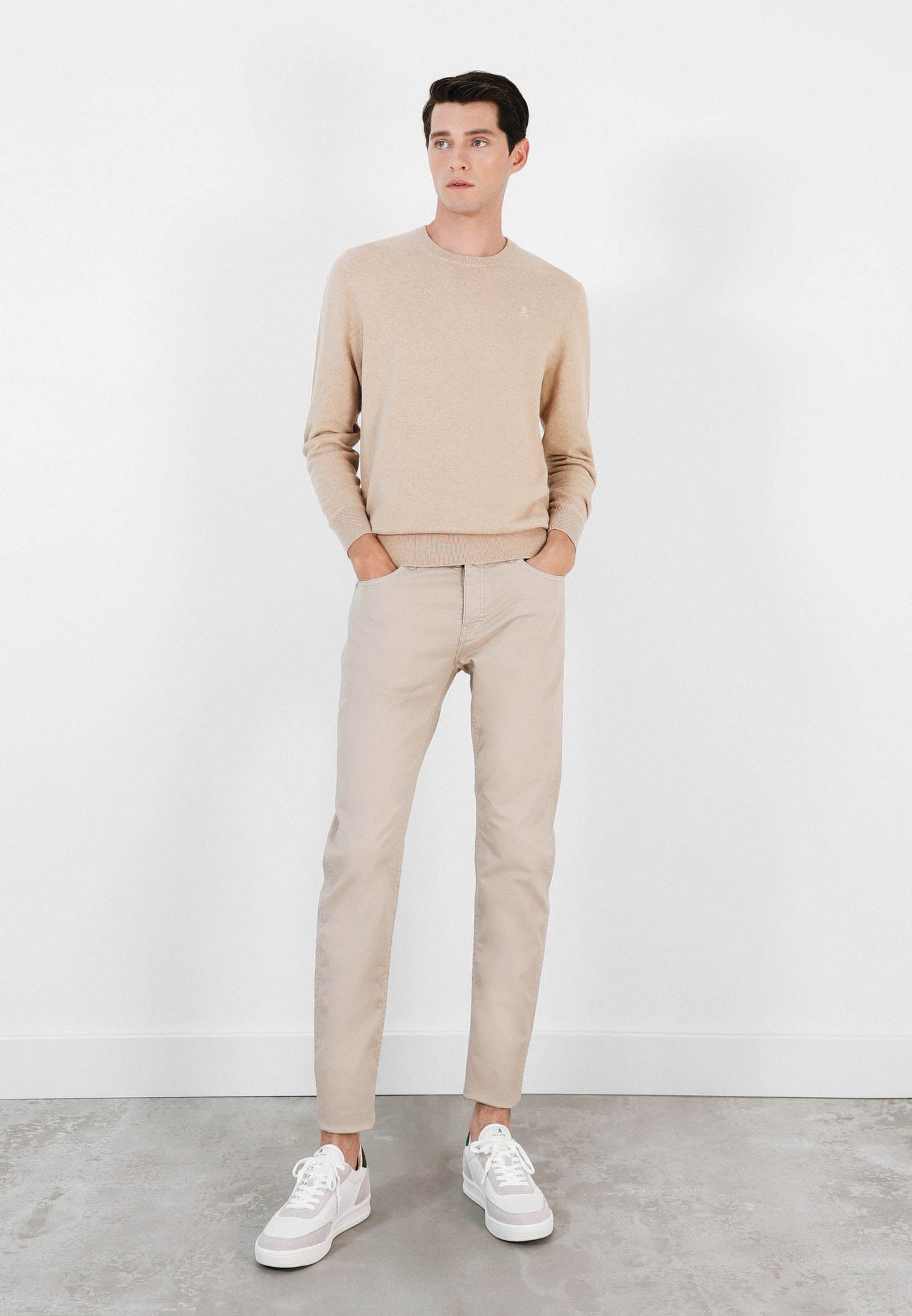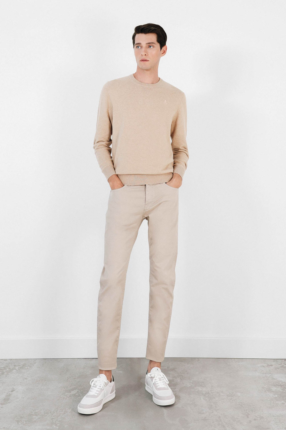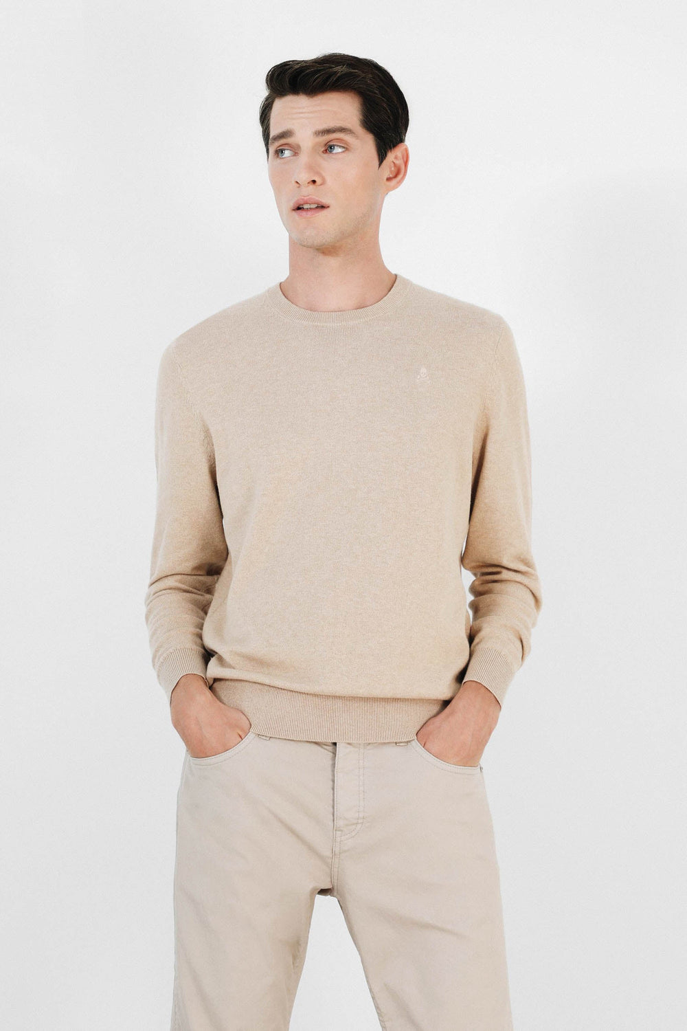 Jersey confeccionado en tejido de algodón BCI y cashmere. Corte Regular Fit, cuello redondo y manga larga. Detalle de calavera bordada a tono.