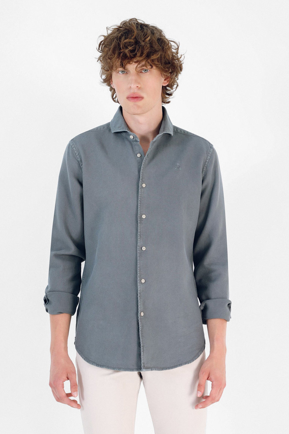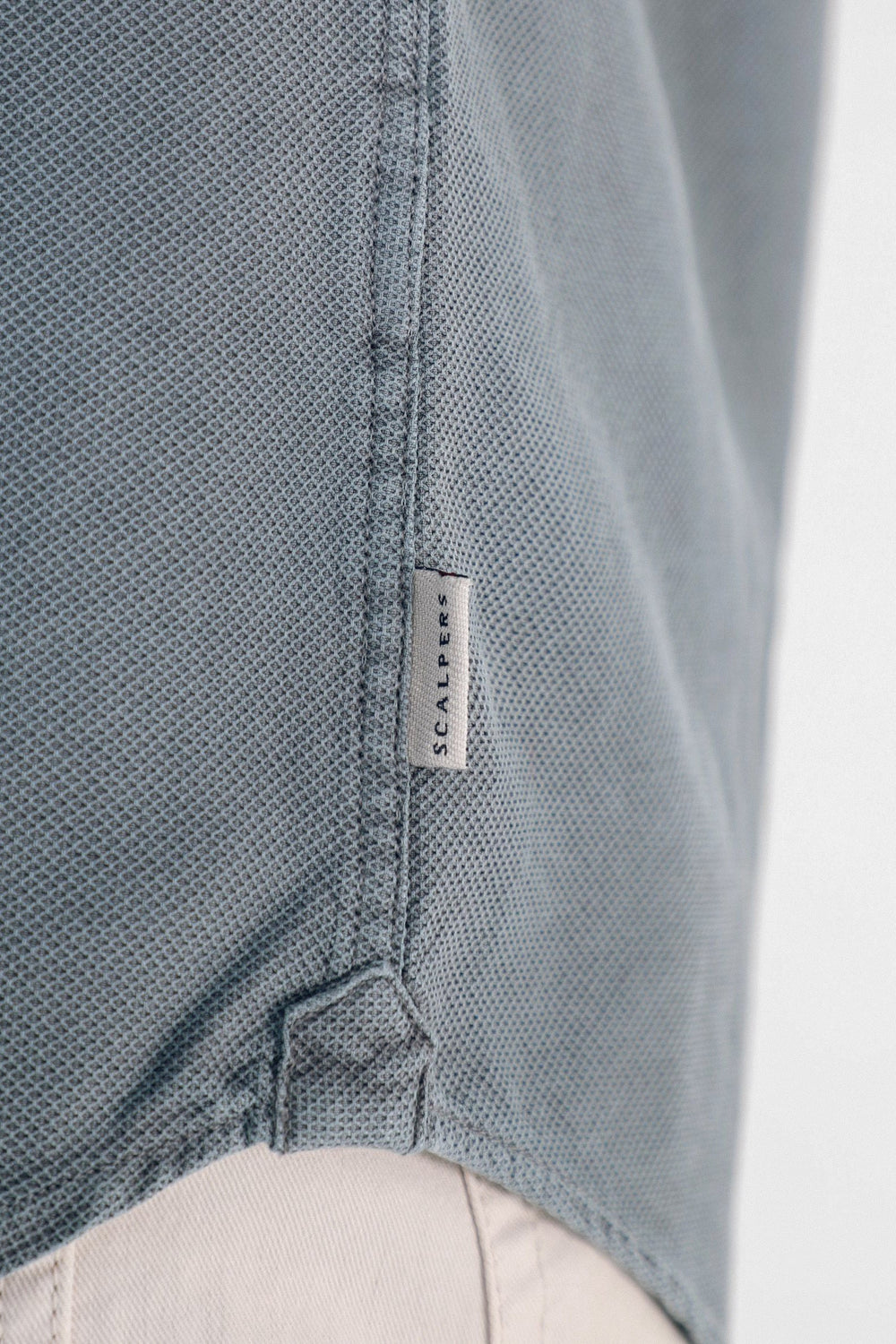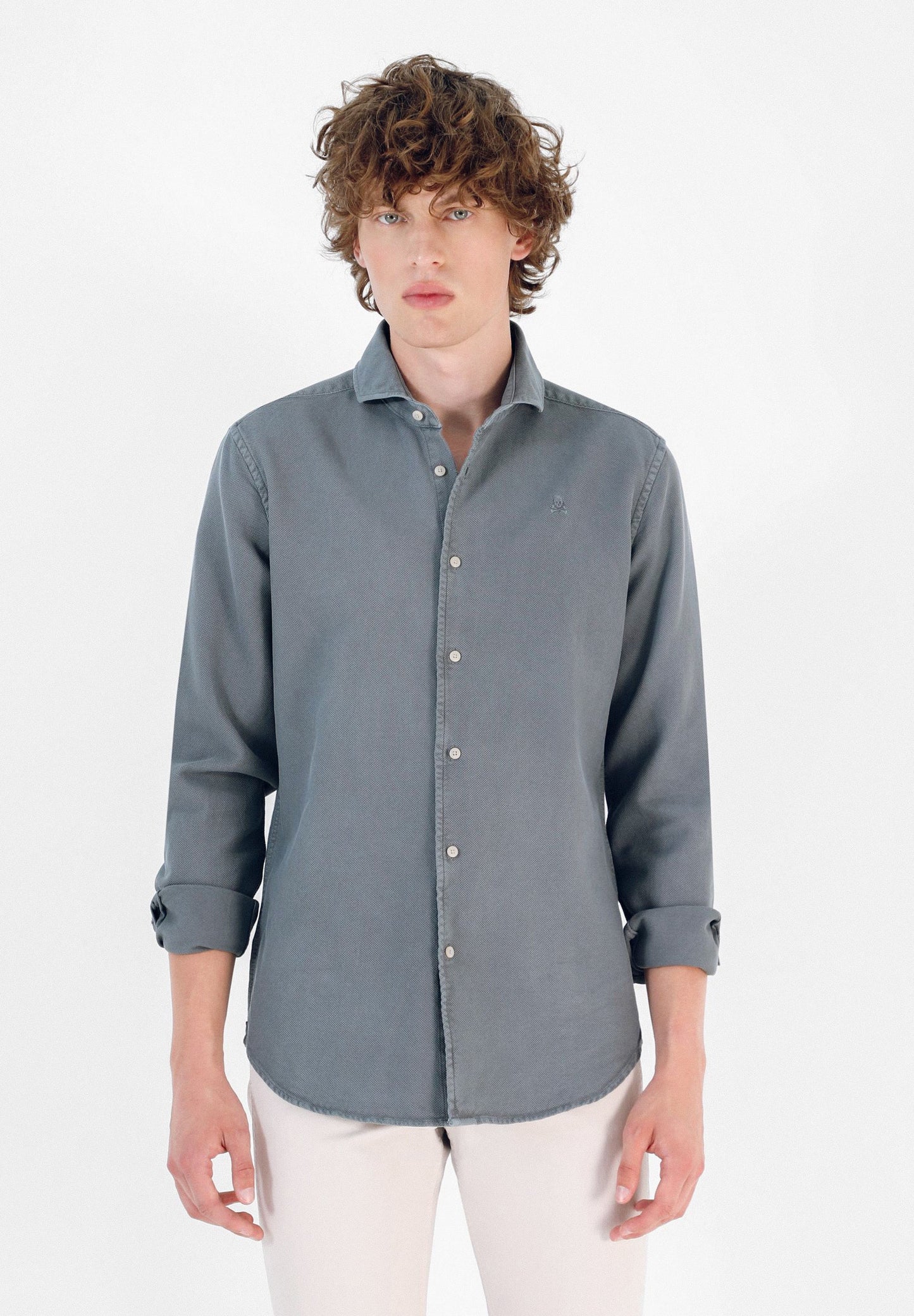 Camisa confeccionada en tejido 100% algodón orgánico tipo polo. Corte Regular Fit, cuello cutaway y cierre con botones. Detalle de calavera a tono.