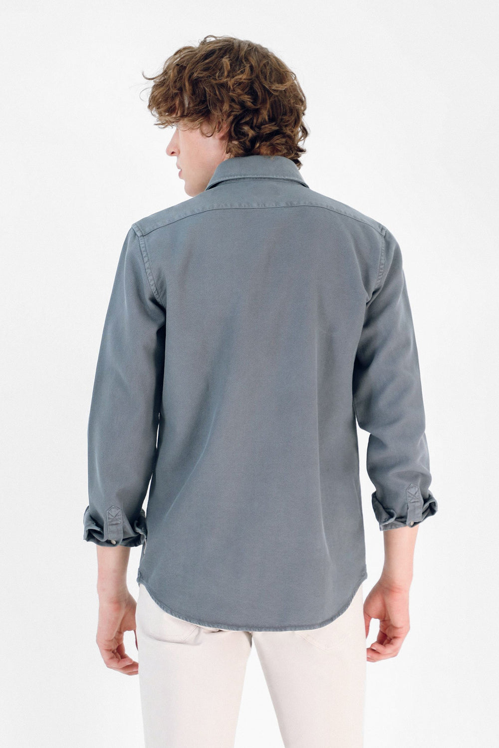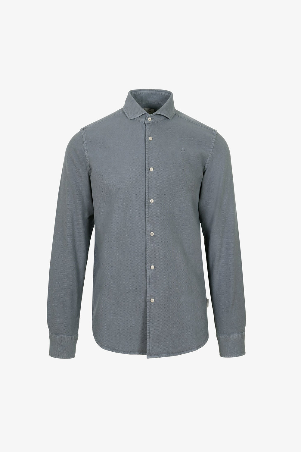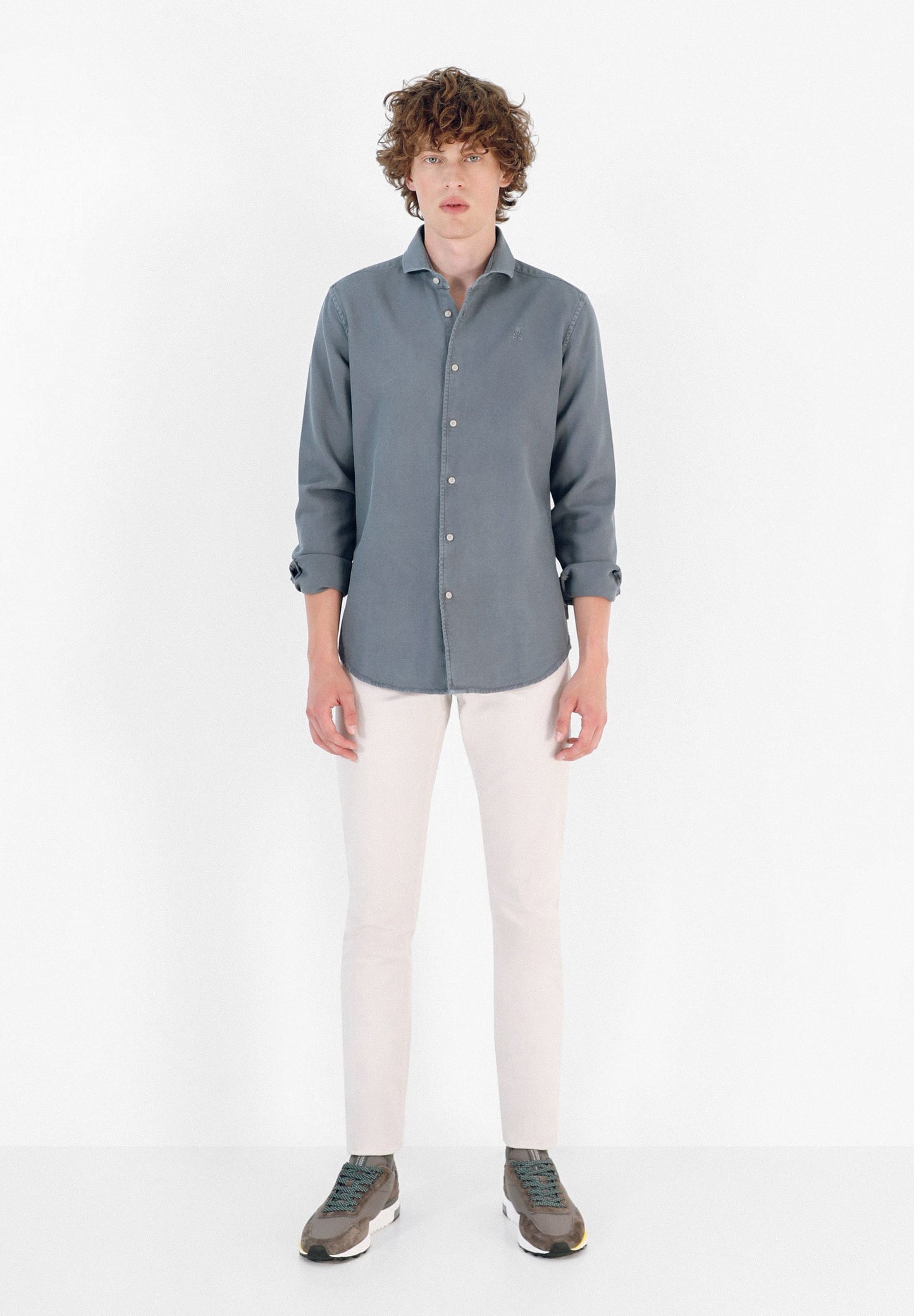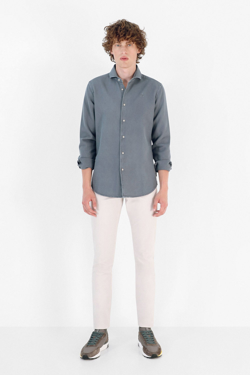 Camisa confeccionada en tejido 100% algodón orgánico tipo polo. Corte Regular Fit, cuello cutaway y cierre con botones. Detalle de calavera a tono.