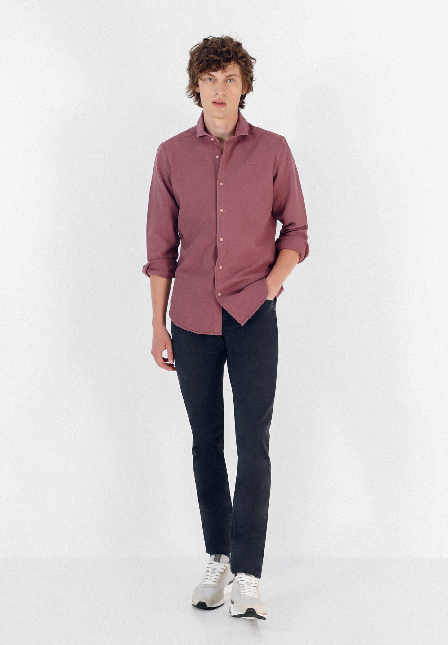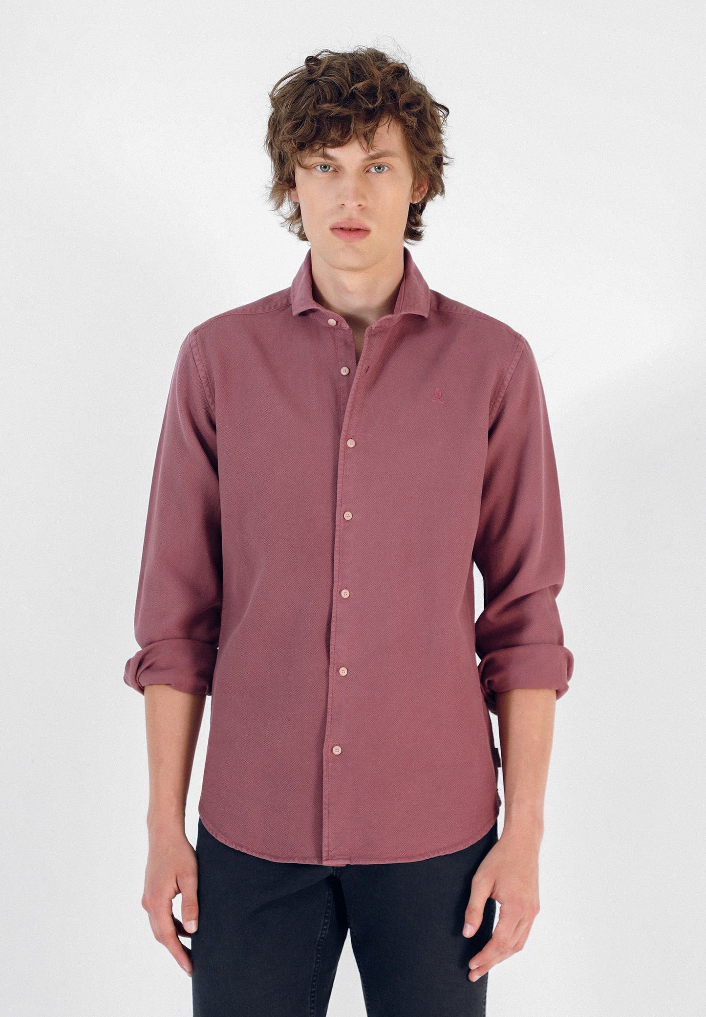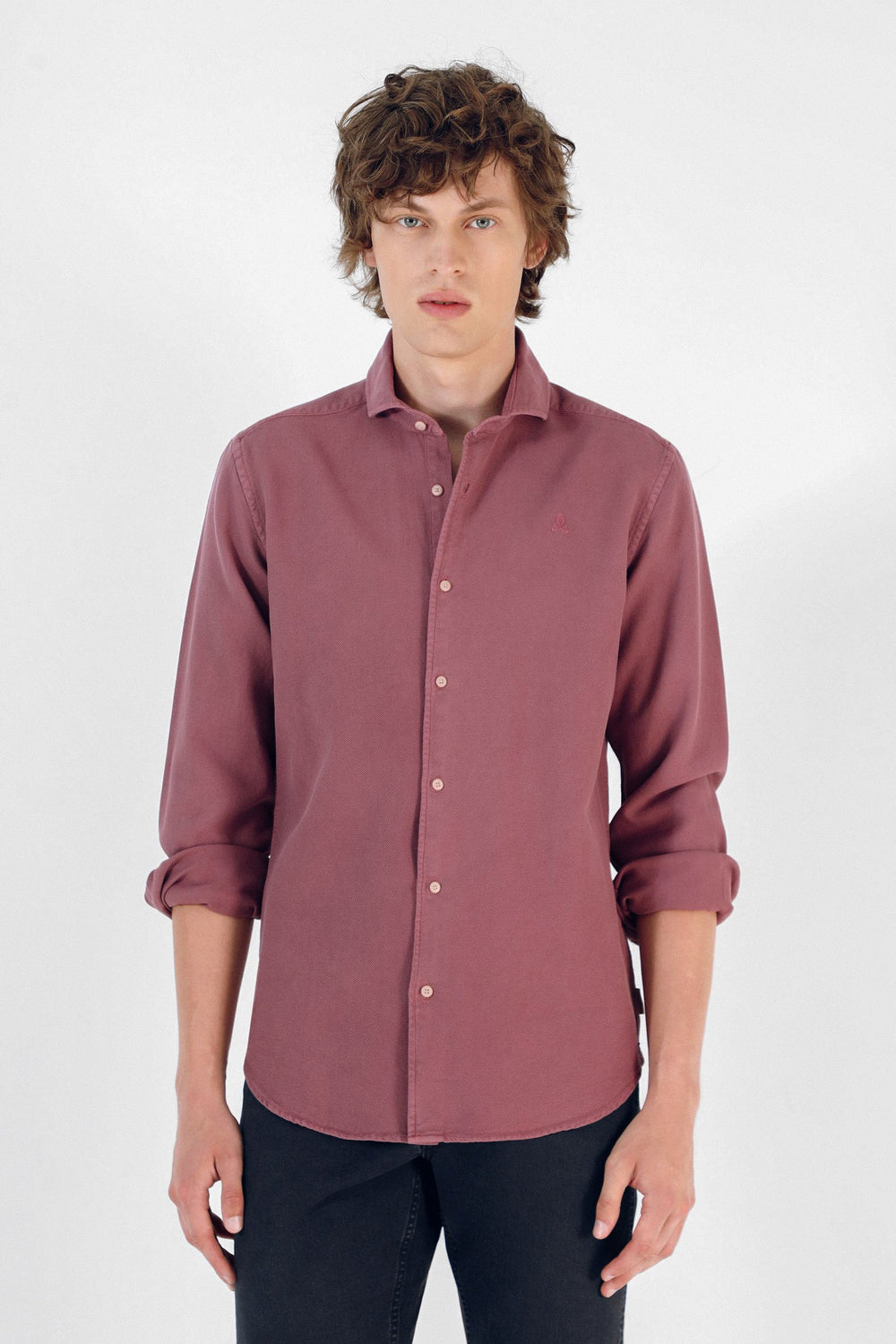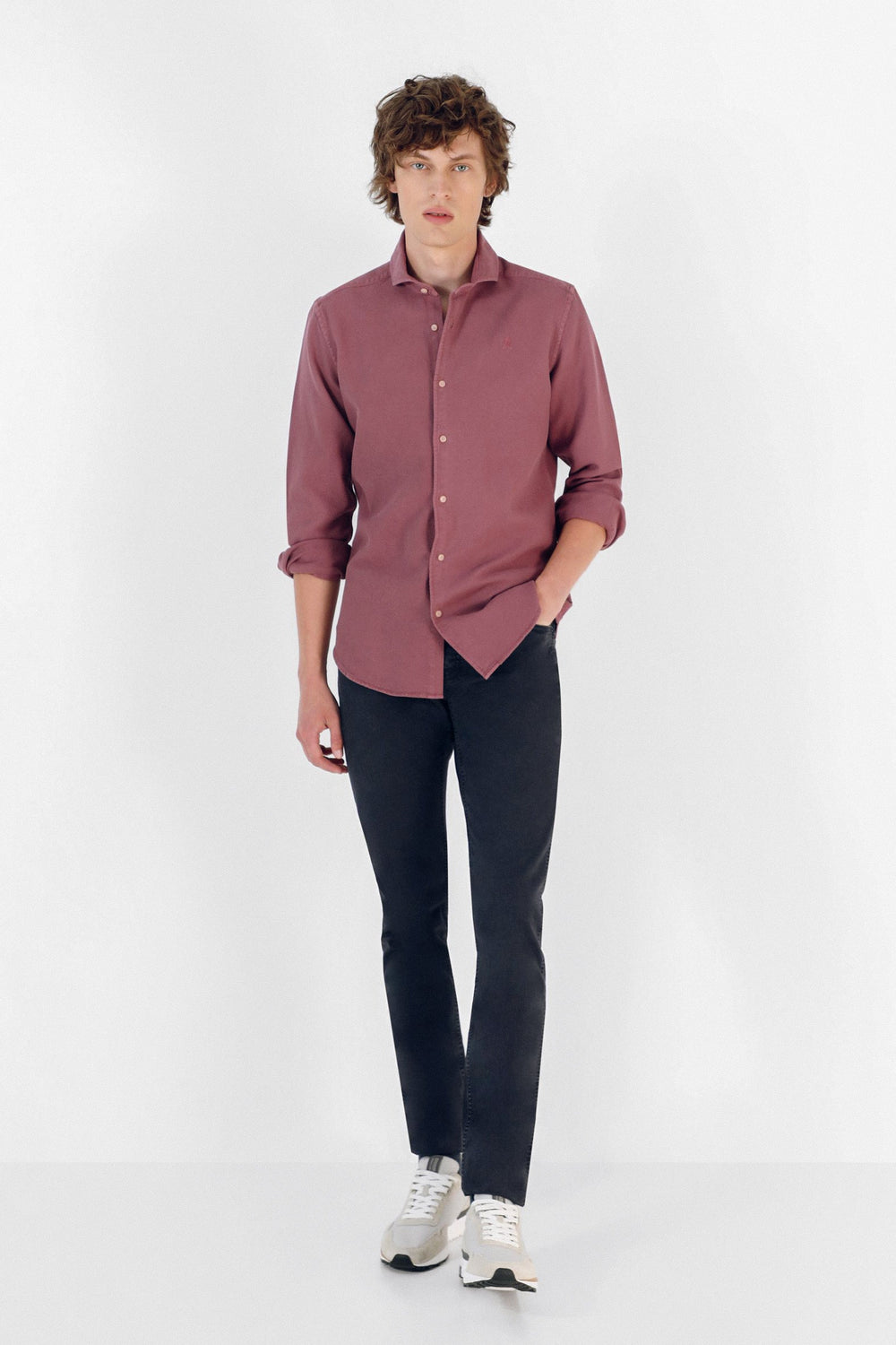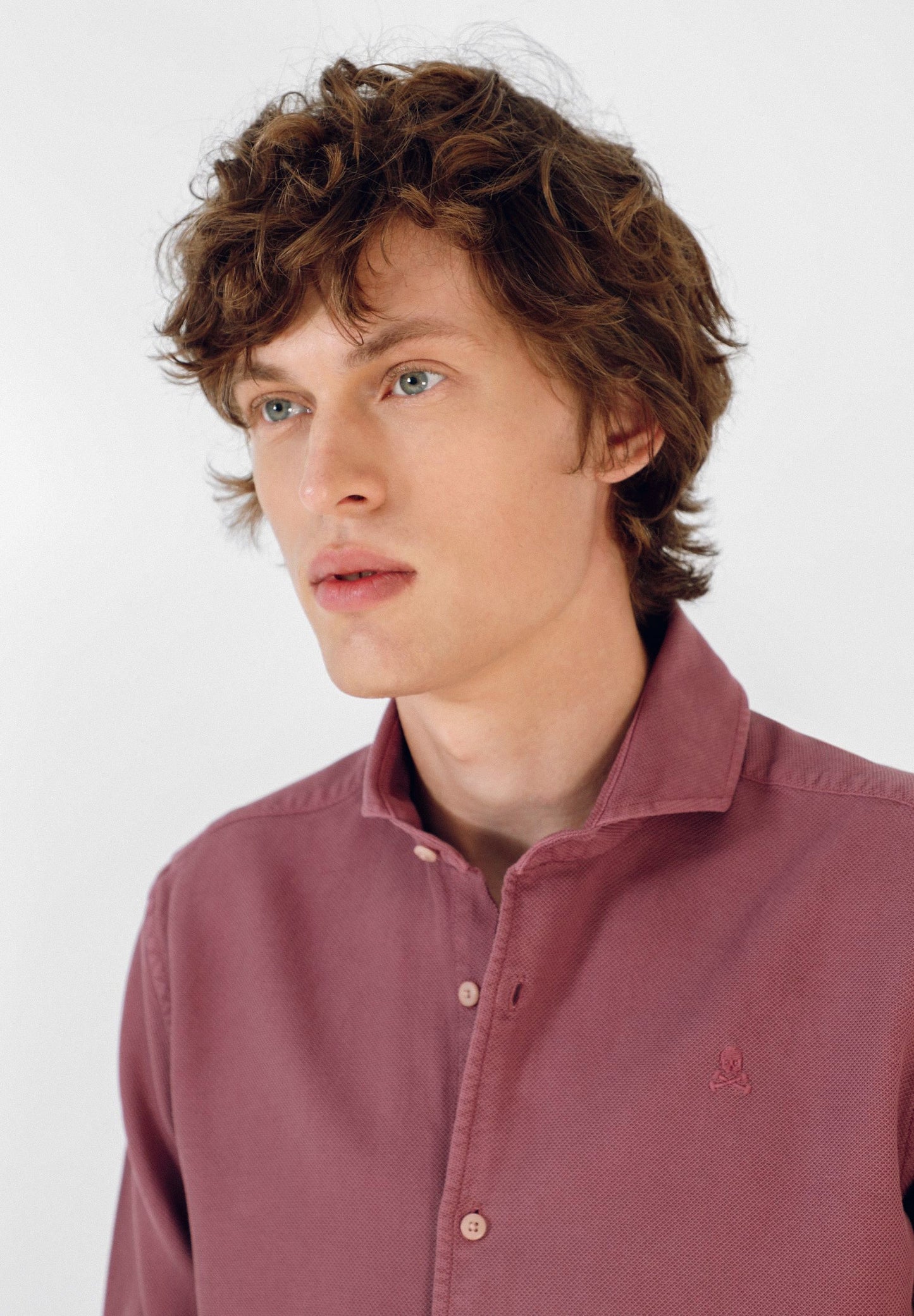 Camisa confeccionada en tejido 100% algodón orgánico tipo polo. Corte Regular Fit, cuello cutaway y cierre con botones. Detalle de calavera a tono.