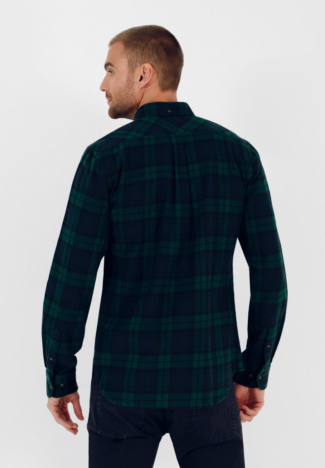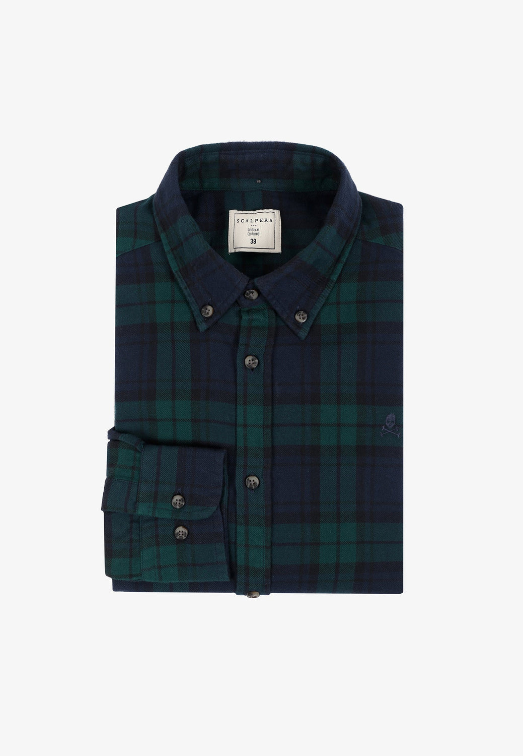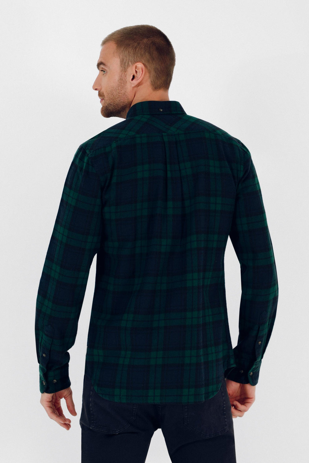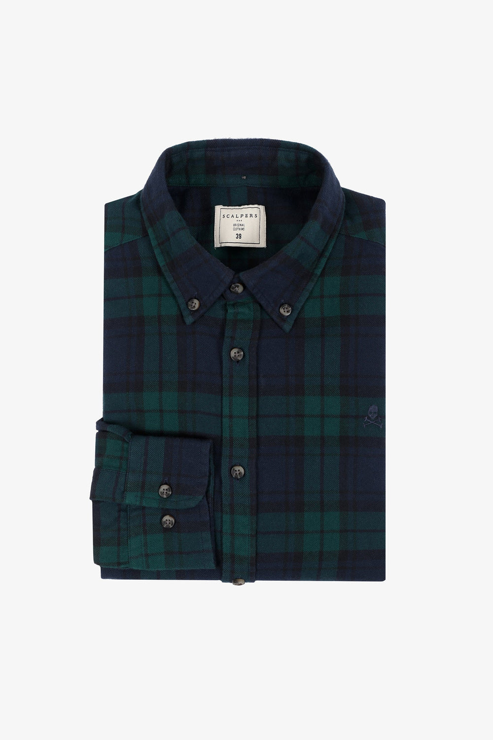 Camisa de cuadros confeccionada en tejido 100% algodón orgánico. Corte Regular Fit, cuello con botones y cierre con botones. Manga larga terminada en puño con botones y calavera bordada.