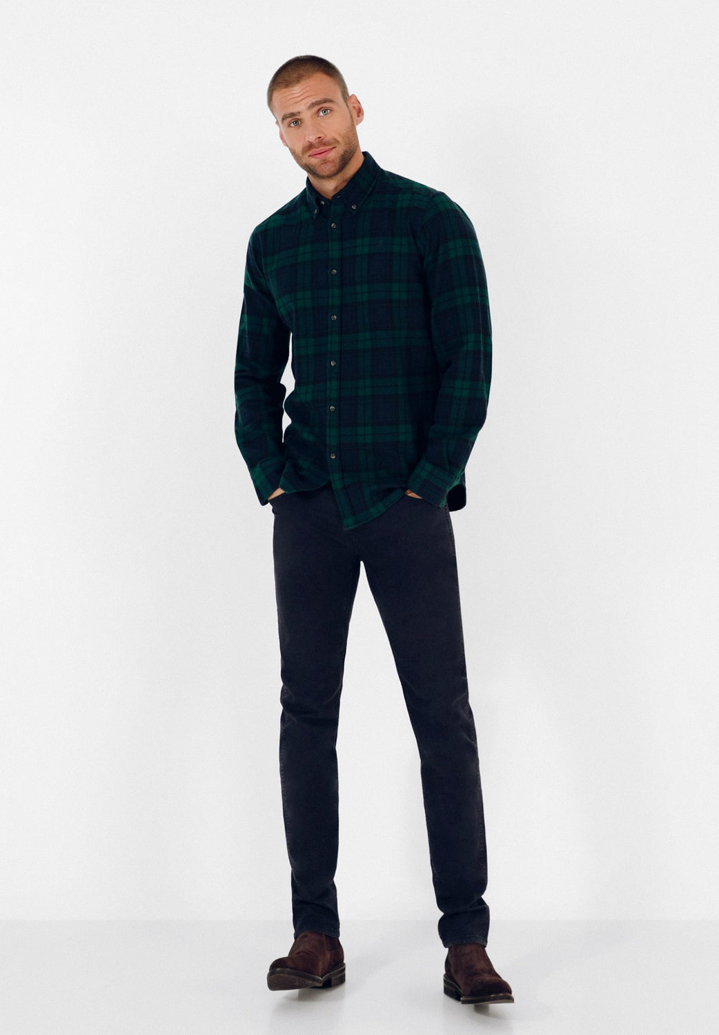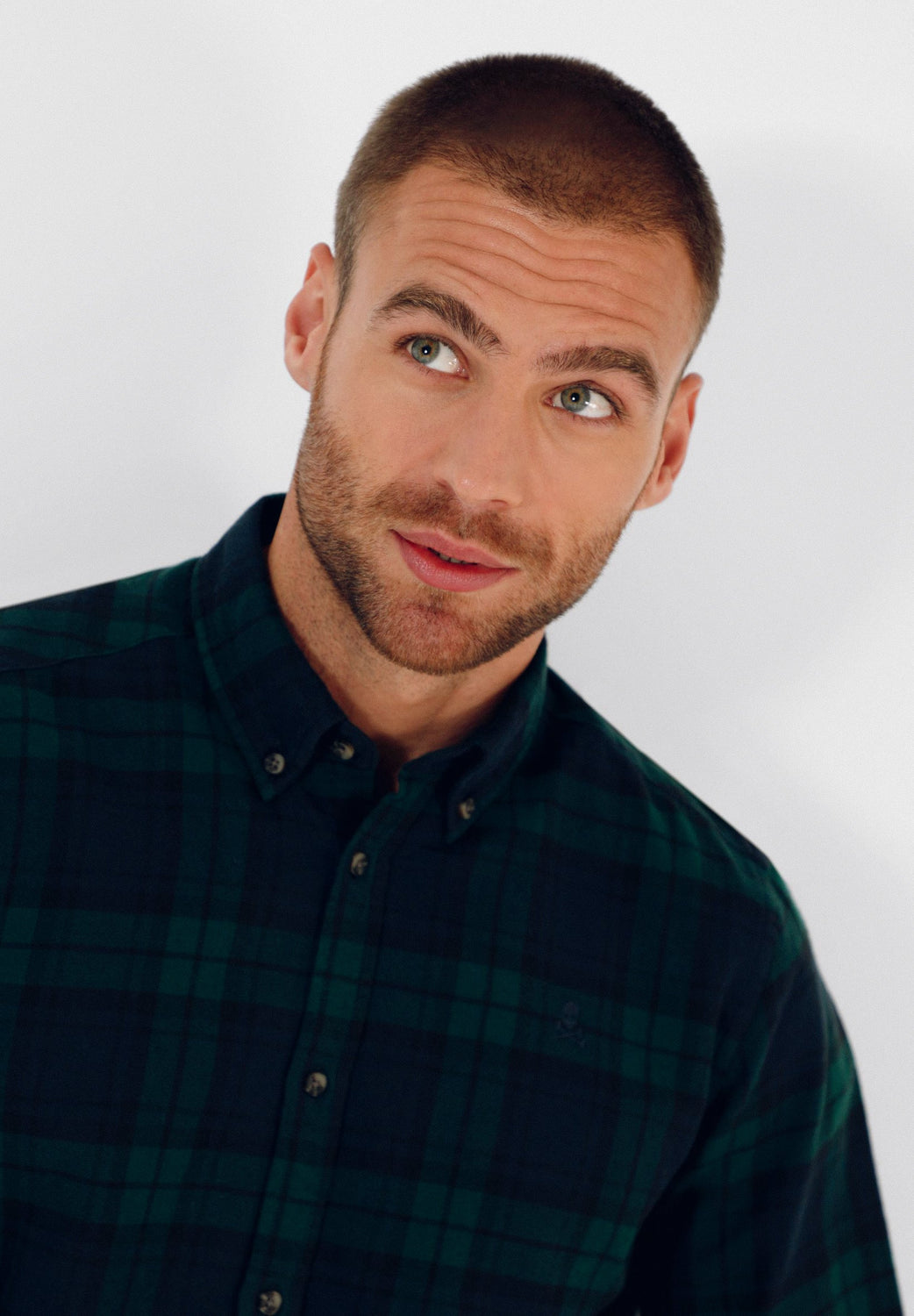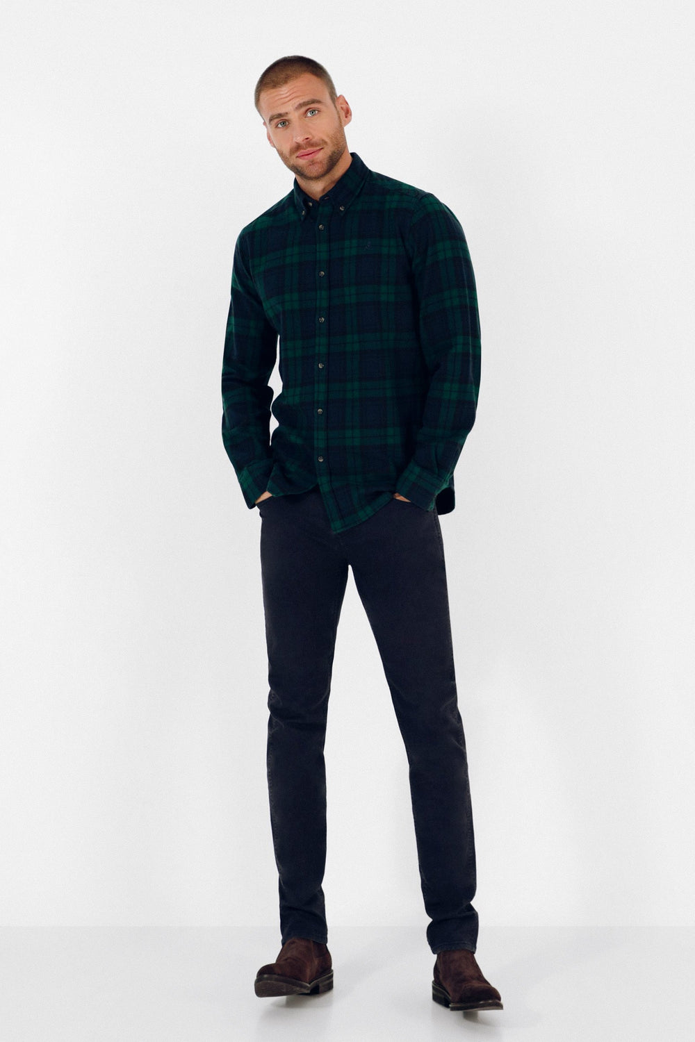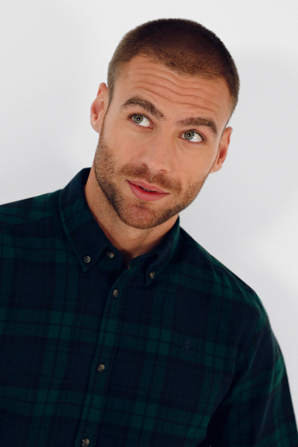 Camisa de cuadros confeccionada en tejido 100% algodón orgánico. Corte Regular Fit, cuello con botones y cierre con botones. Manga larga terminada en puño con botones y calavera bordada.