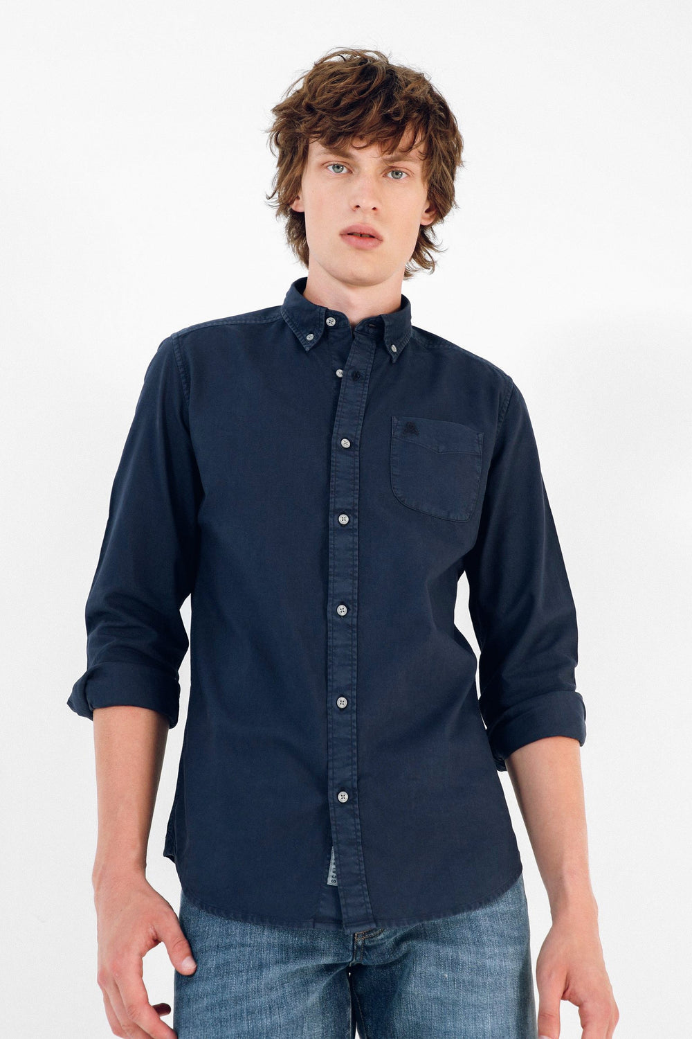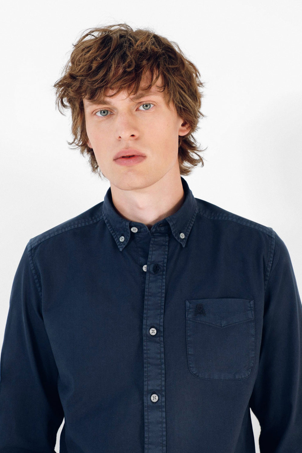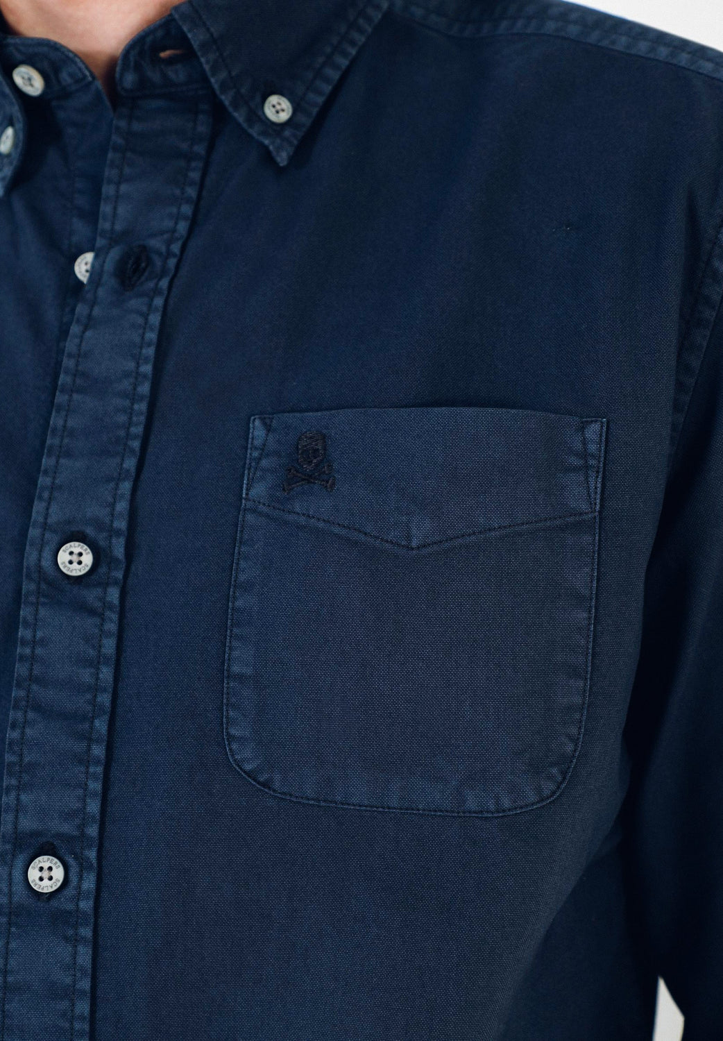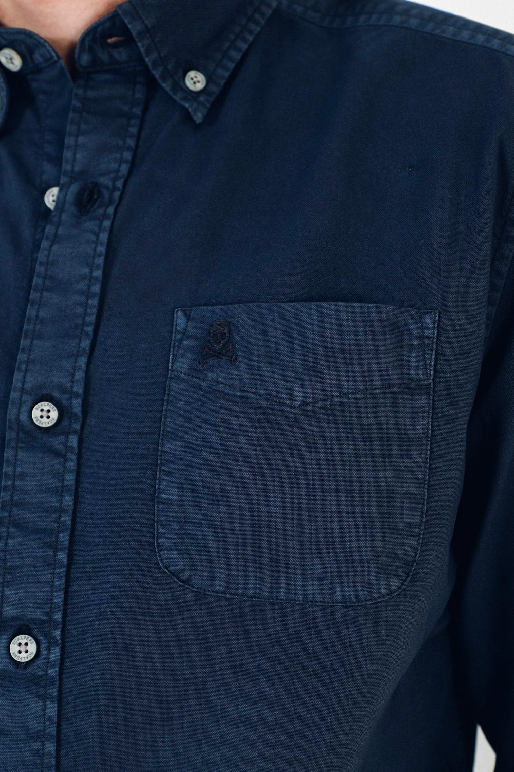 Camisa confeccionada en tejido 100% algodón orgánico. Corte Regular Fit, cuello con botones y cierre con botones. Manga larga terminada en puño con botones y bolsillo en el pecho con detalle de calavera.