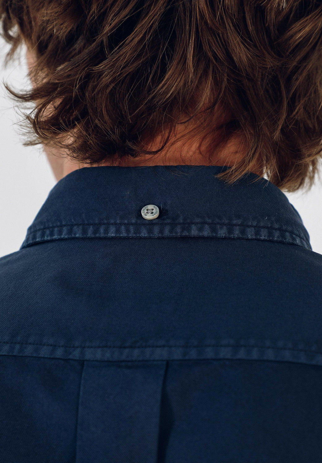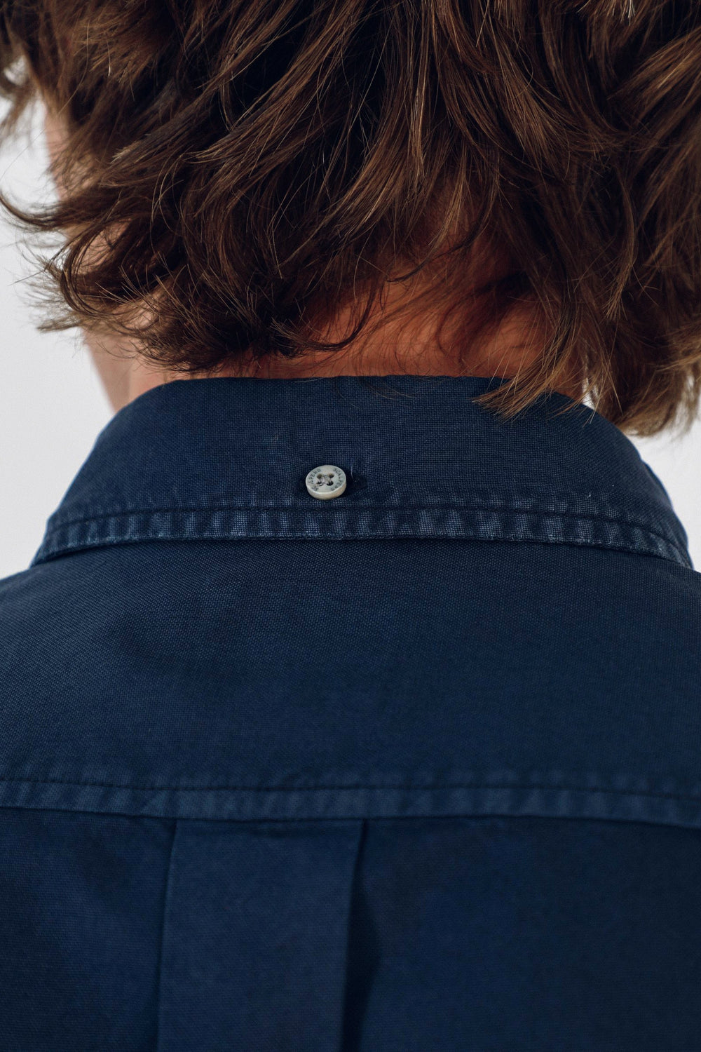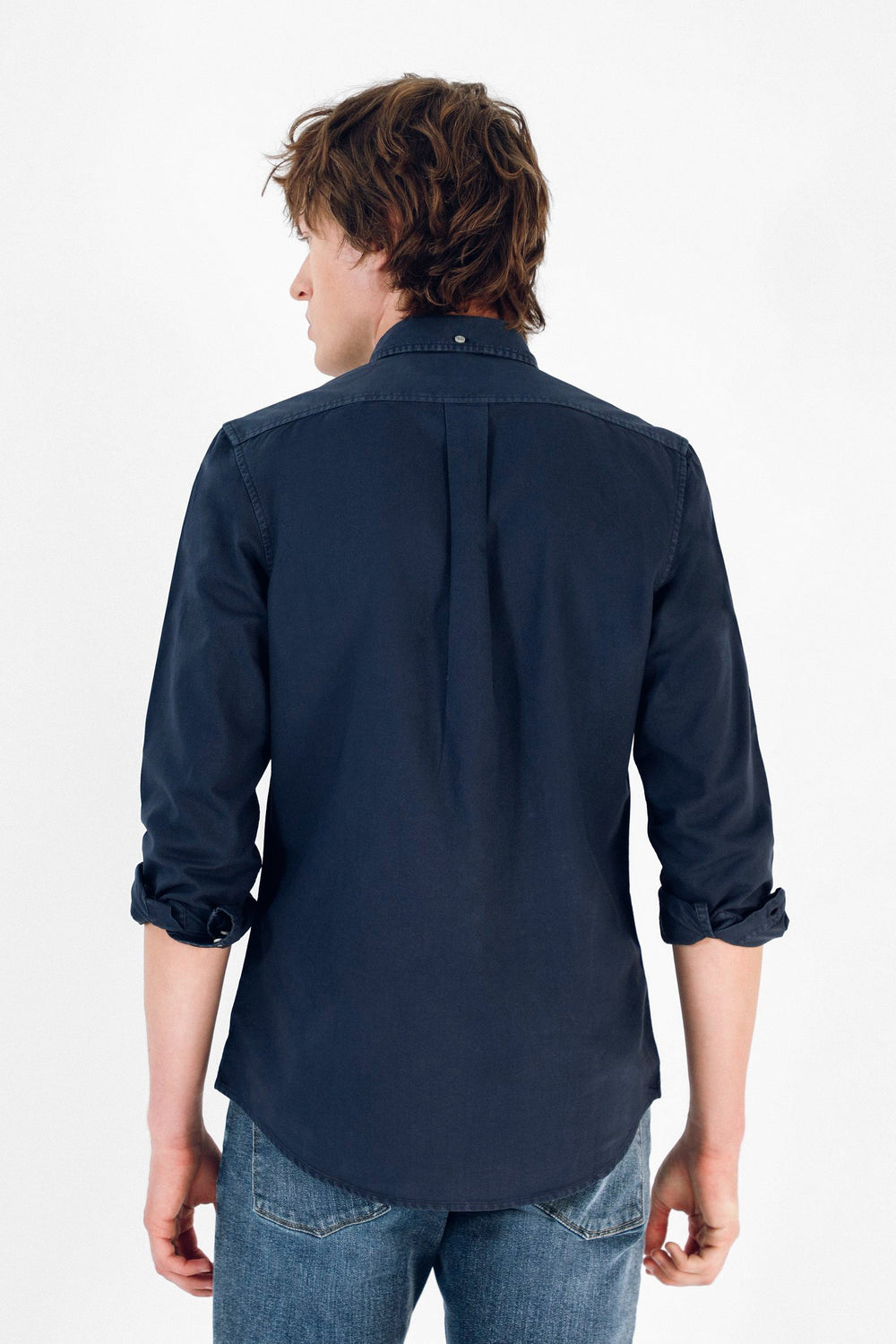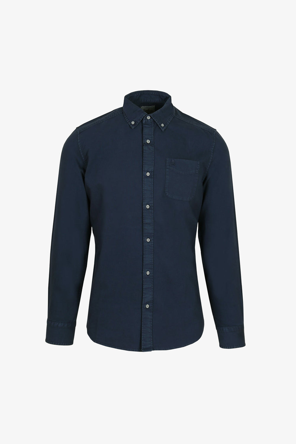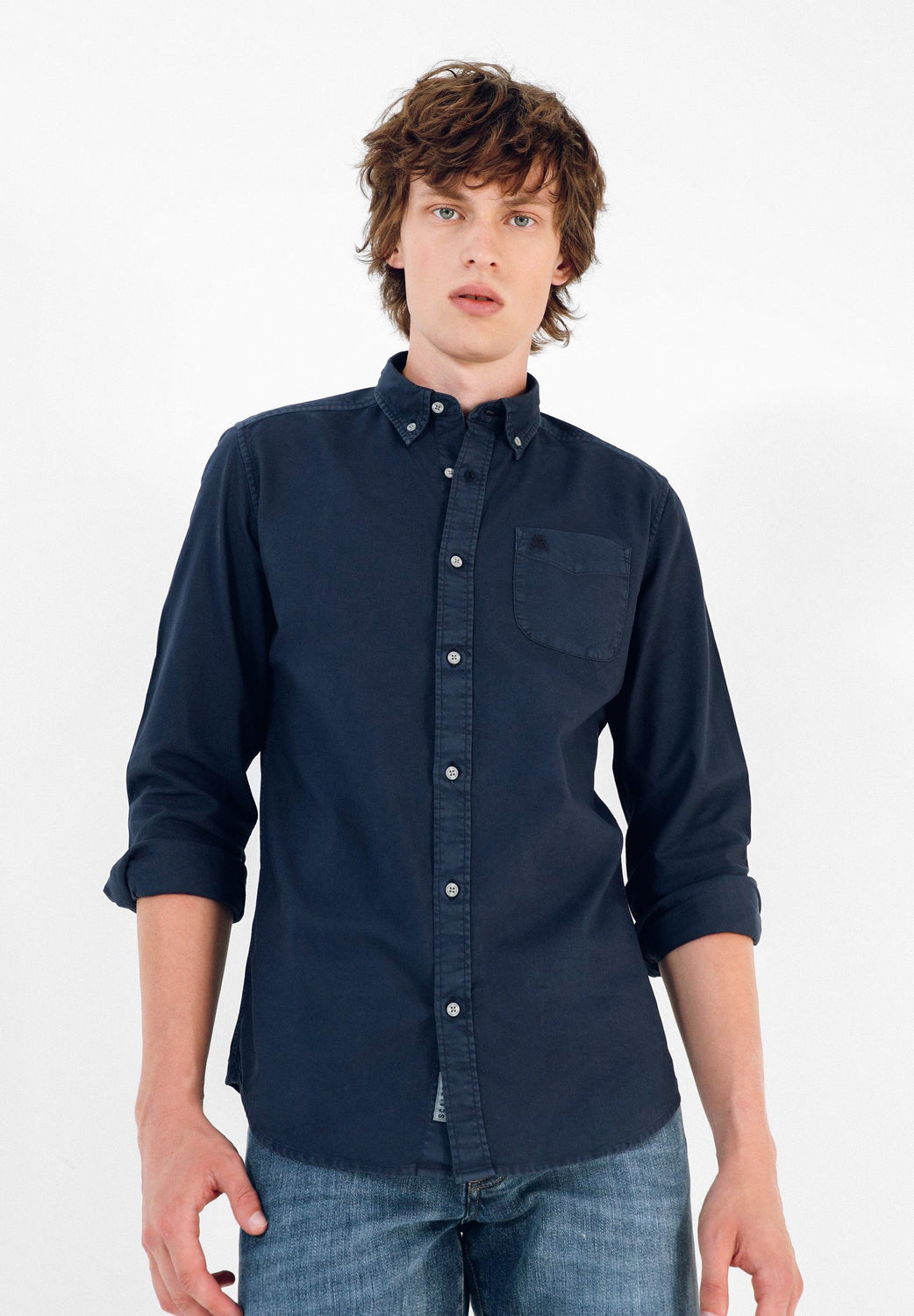 Camisa confeccionada en tejido 100% algodón orgánico. Corte Regular Fit, cuello con botones y cierre con botones. Manga larga terminada en puño con botones y bolsillo en el pecho con detalle de calavera.