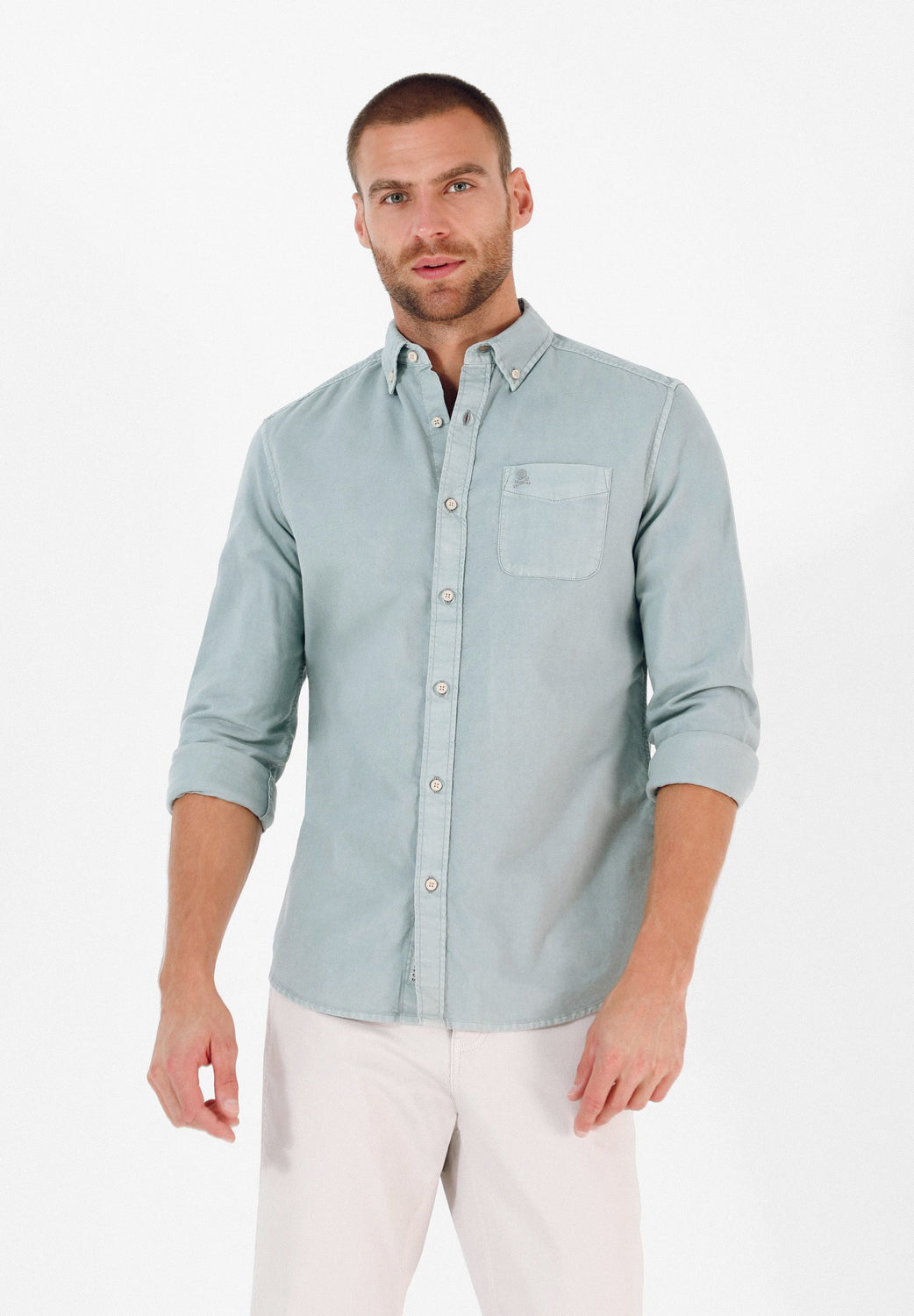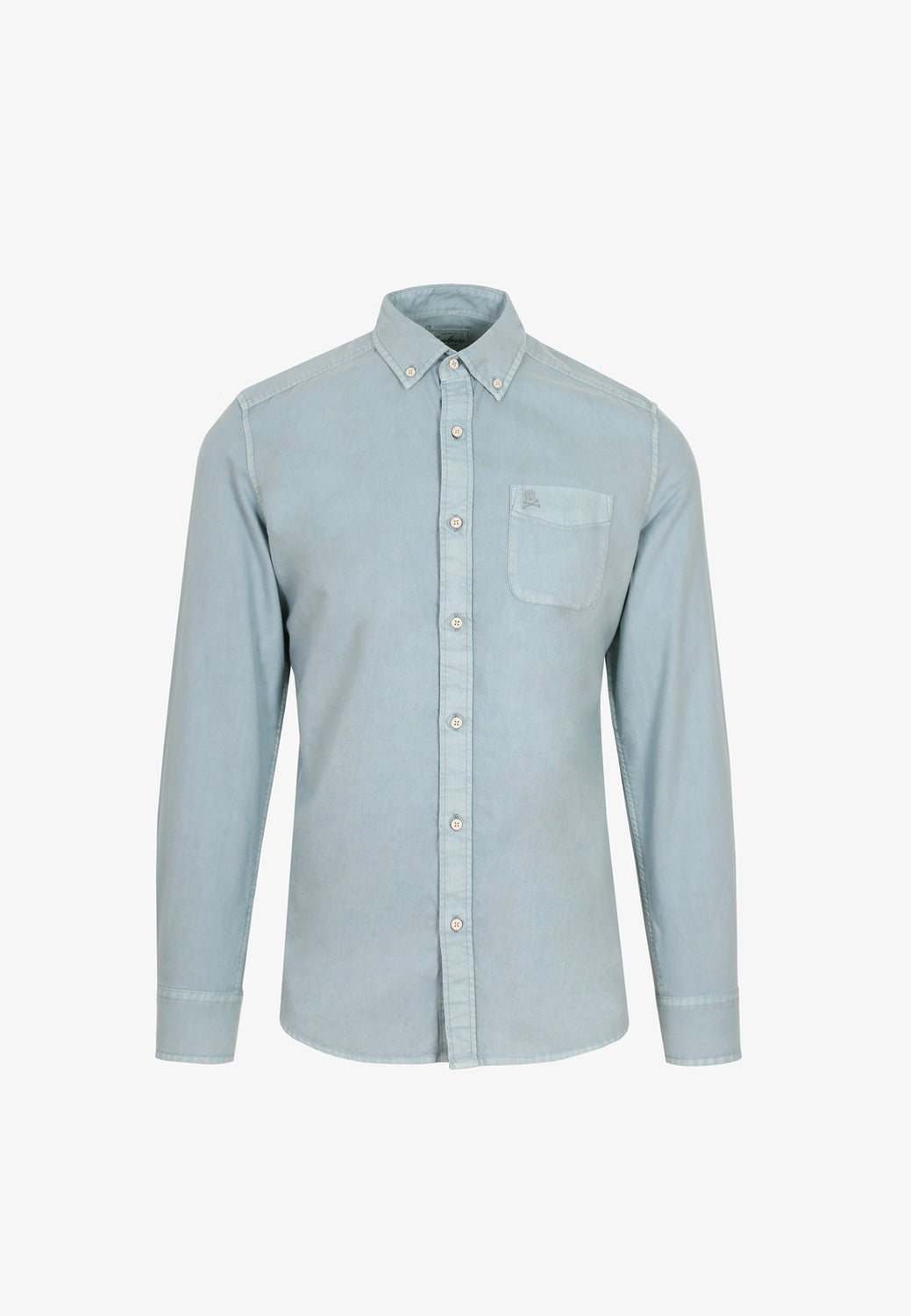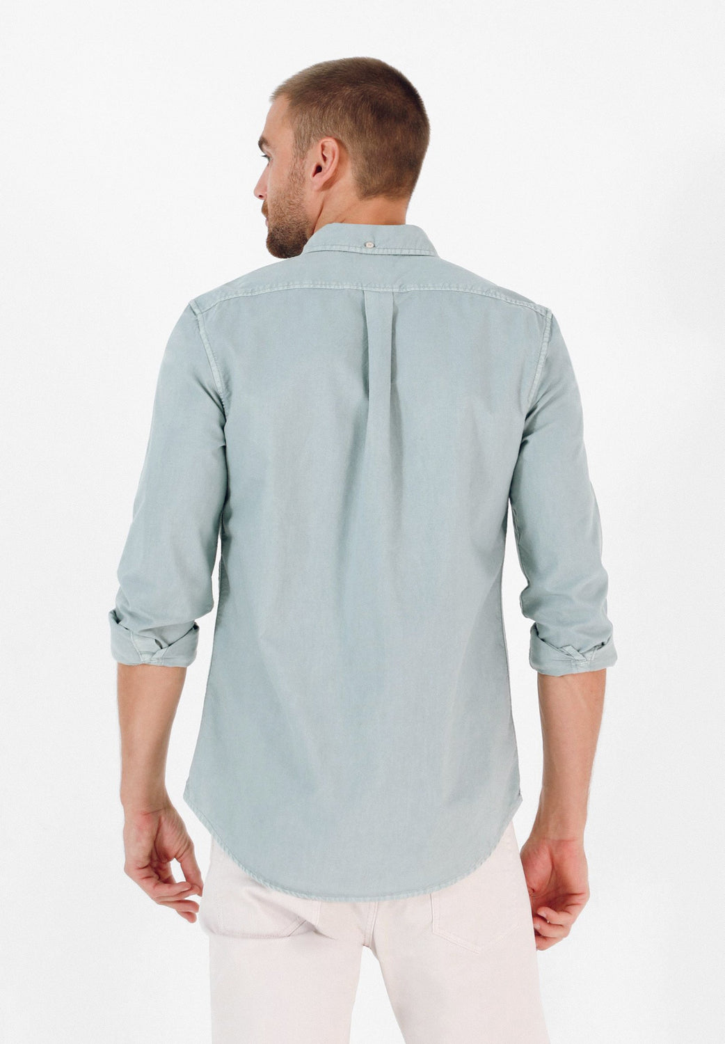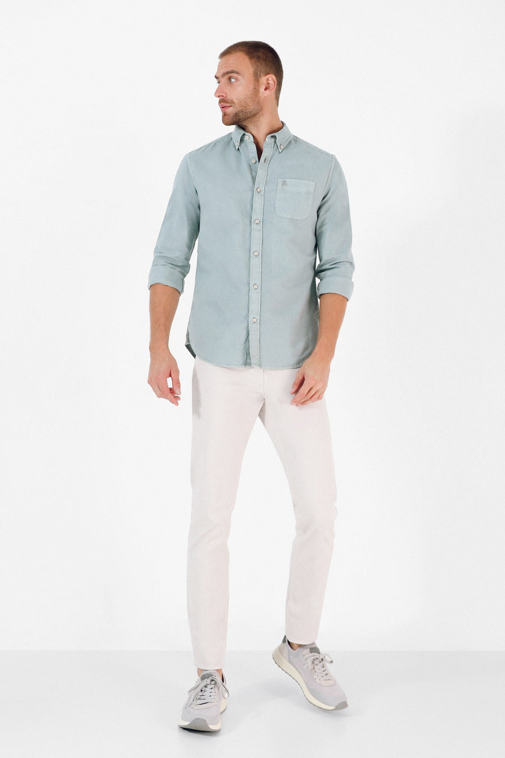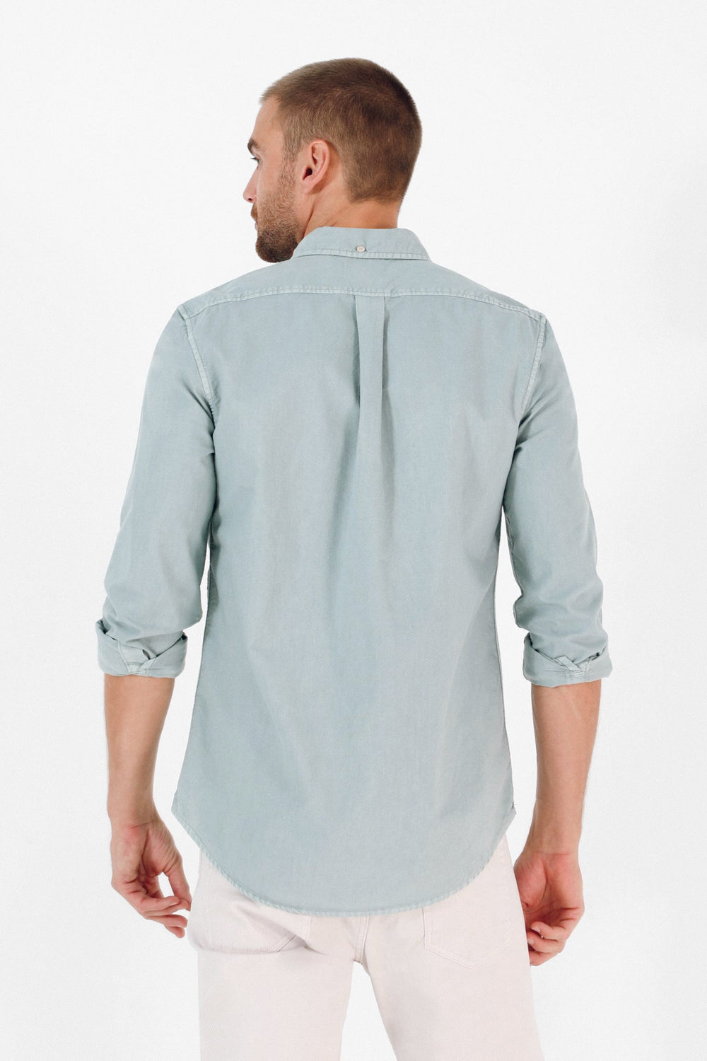 Camisa confeccionada en tejido 100% algodón orgánico. Corte Regular Fit, cuello con botones y cierre con botones. Manga larga terminada en puño con botones y bolsillo en el pecho con detalle de calavera.