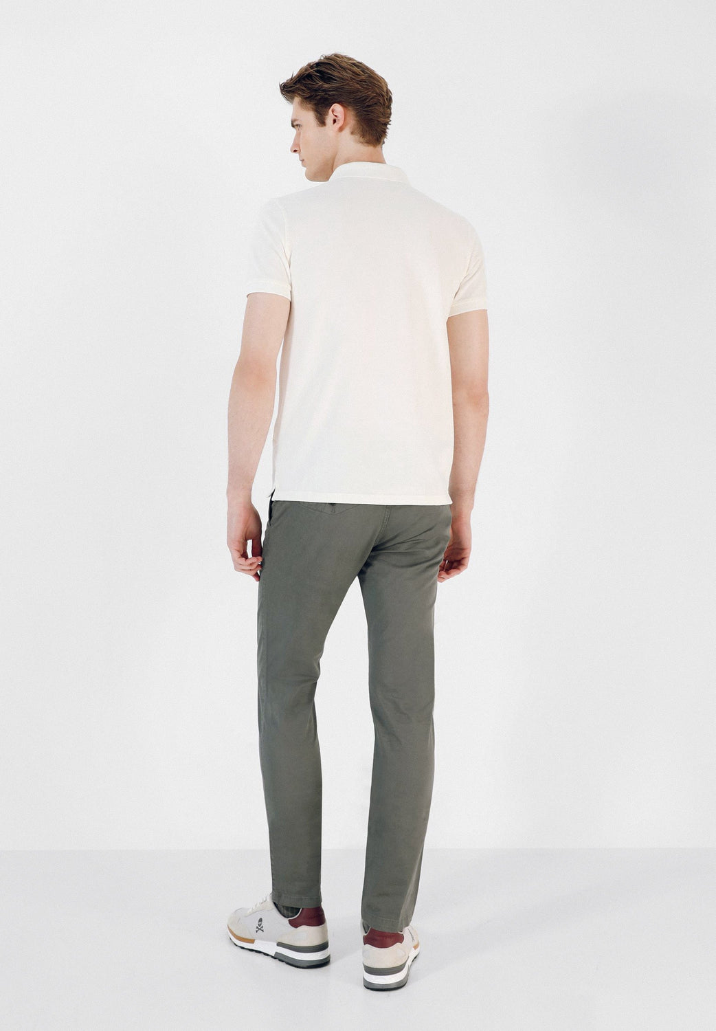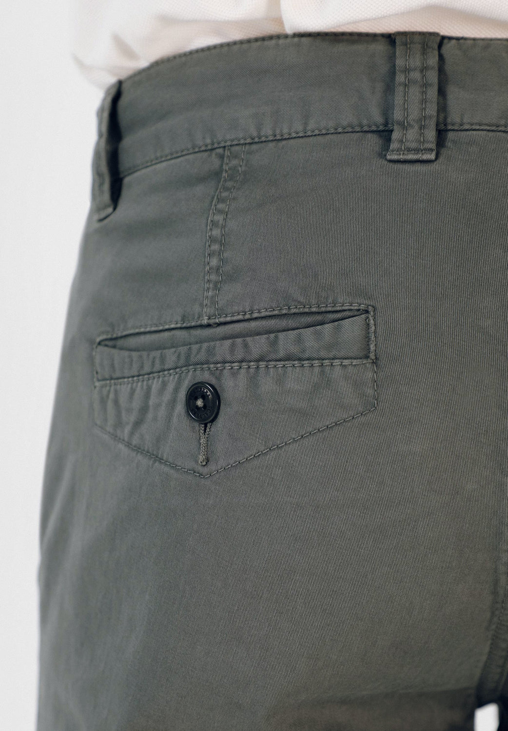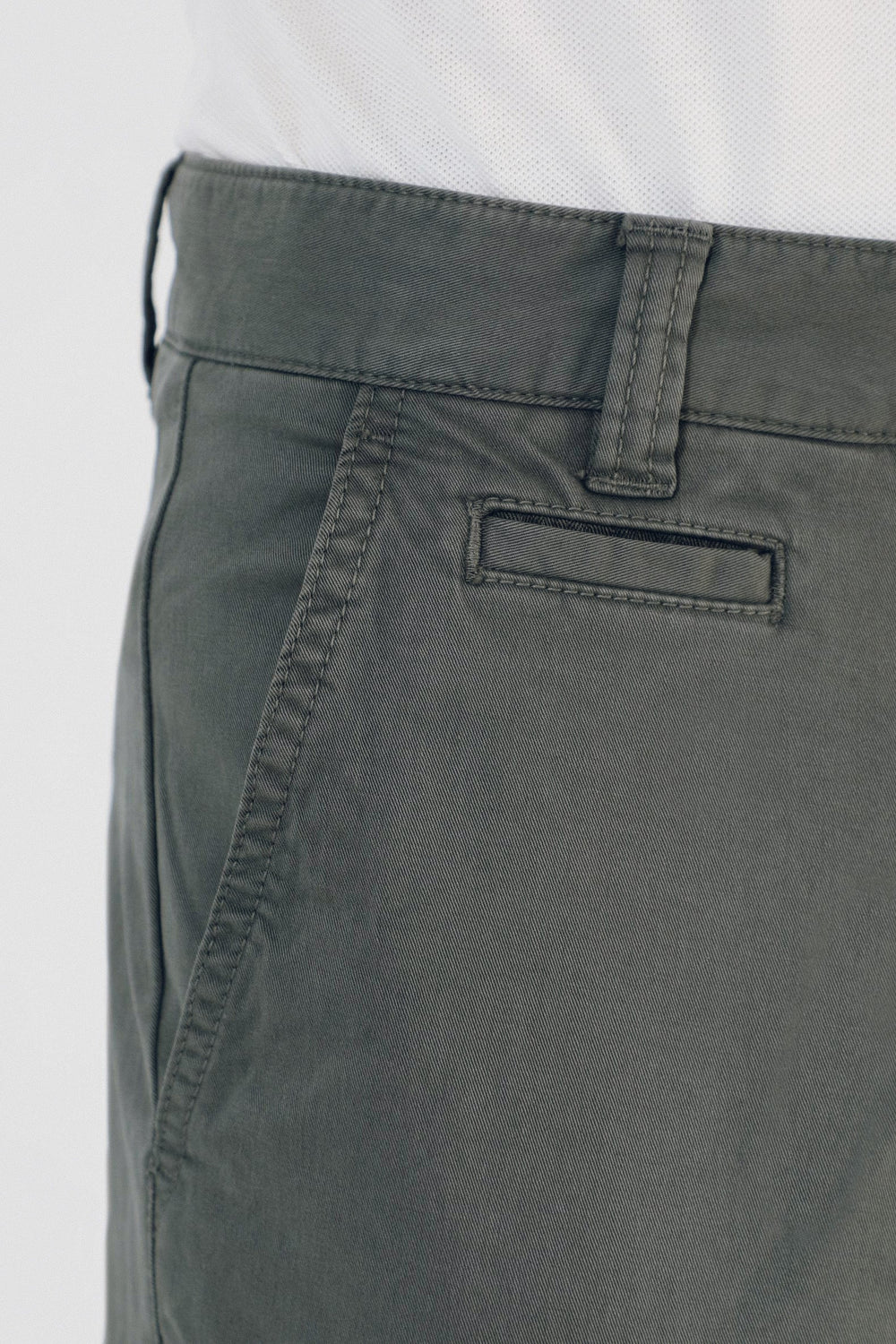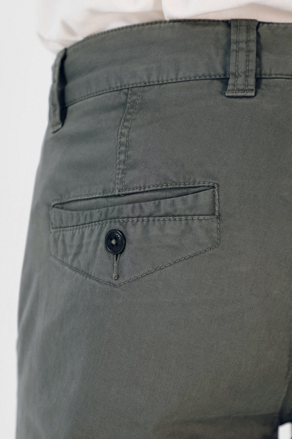 Pantalón chino confeccionado en tejido de algodón garment dyed. Corte Regular Fit, cierre mediante botones ocultos por tapeta y botón. Bolsillos delanteros y traseros con botón y trabillas para el cinturón.