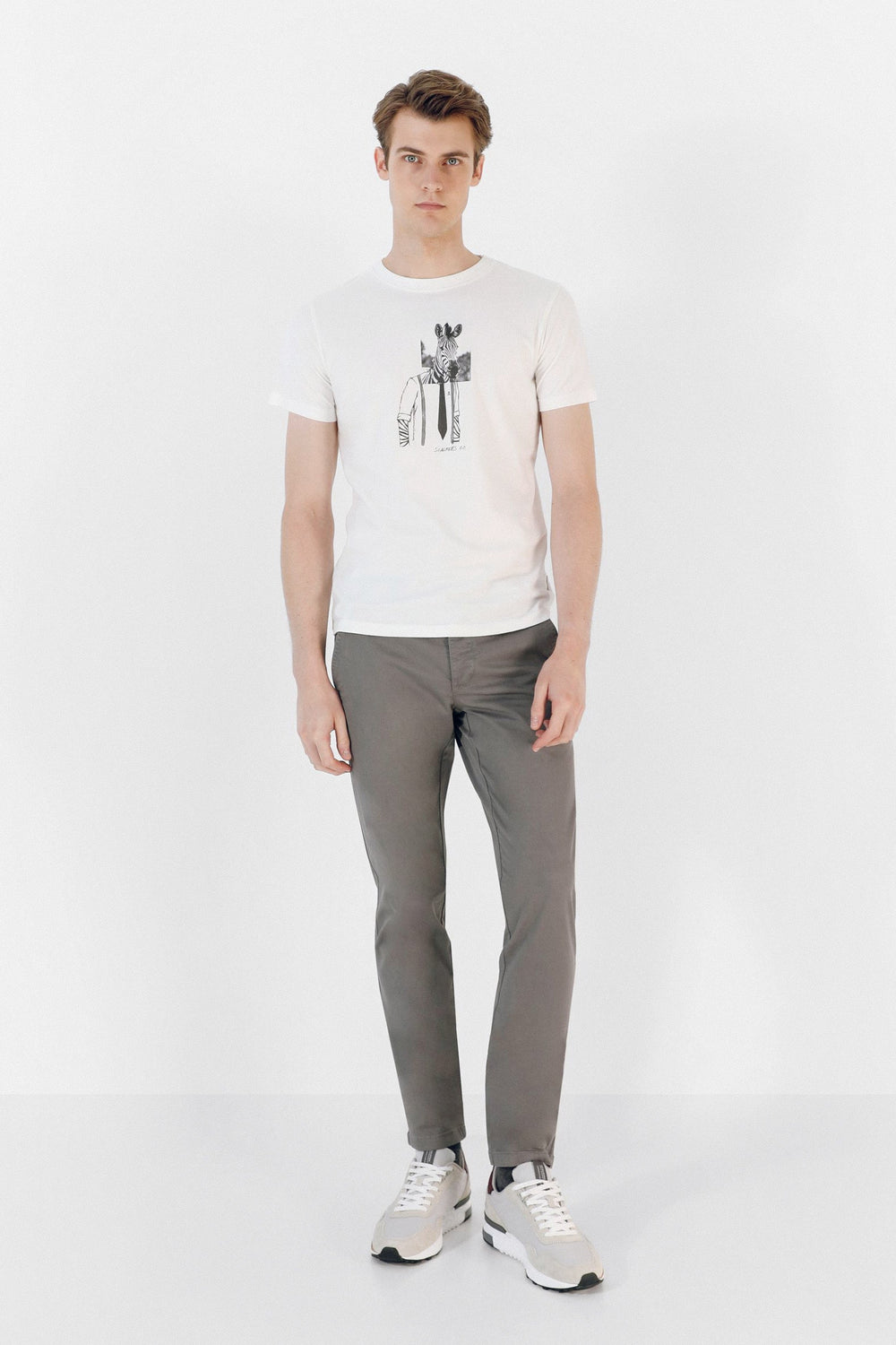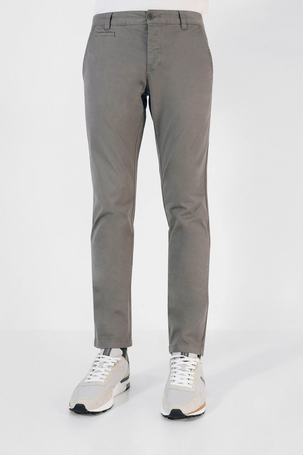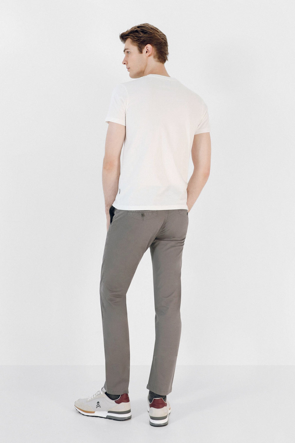 Pantalón chino confeccionado en tejido de algodón garment dyed. Corte Regular Fit, cierre mediante botones ocultos por tapeta y botón. Bolsillos delanteros y traseros con botón y trabillas para el cinturón.