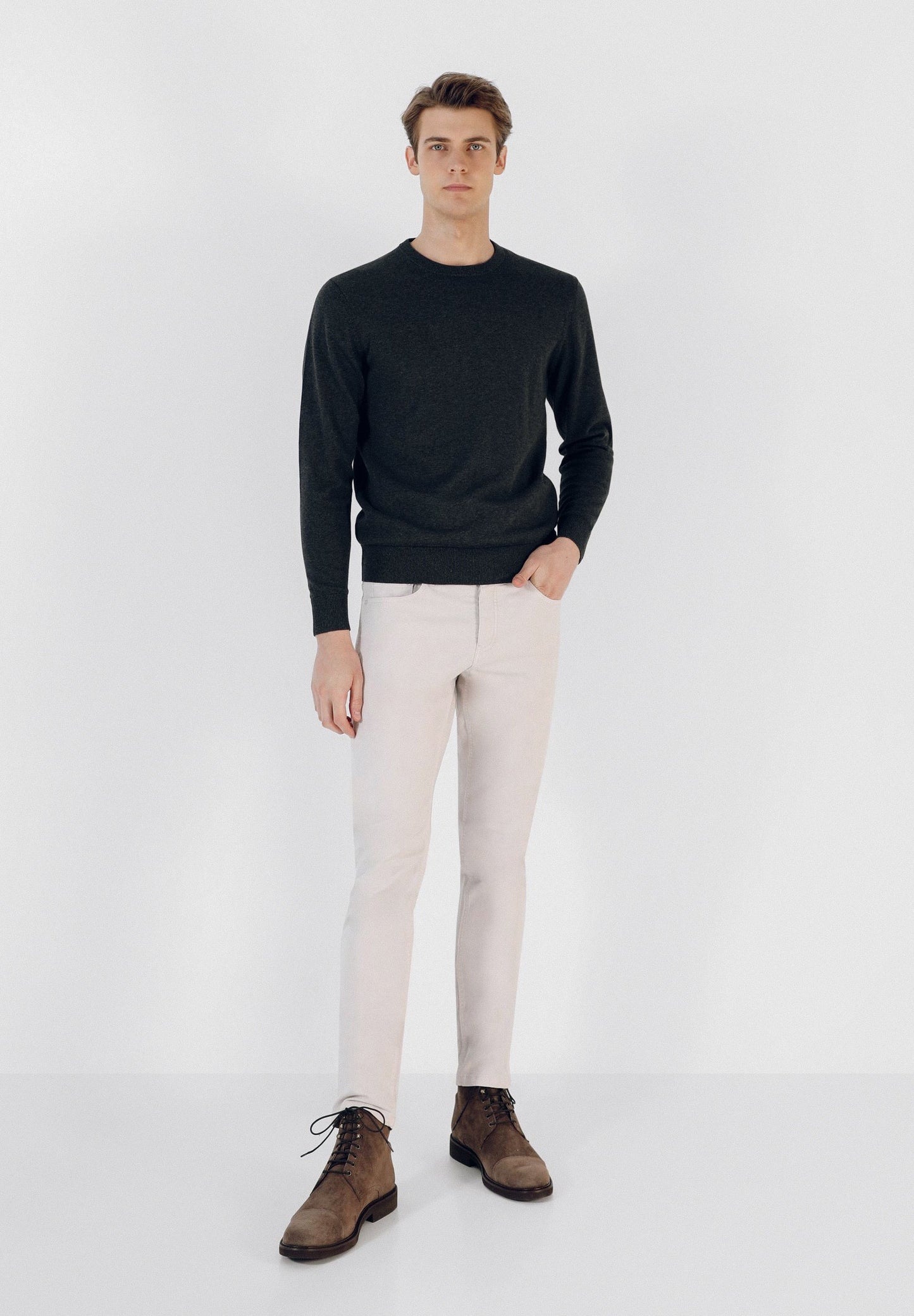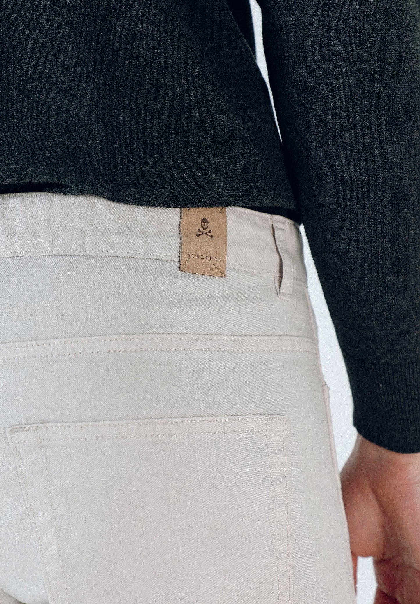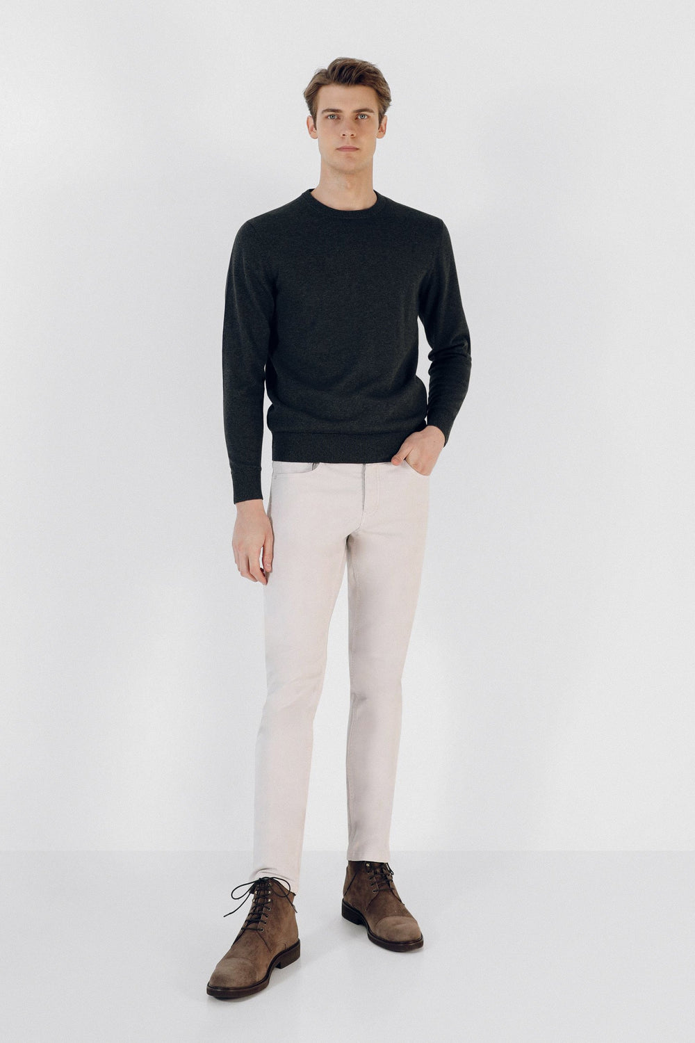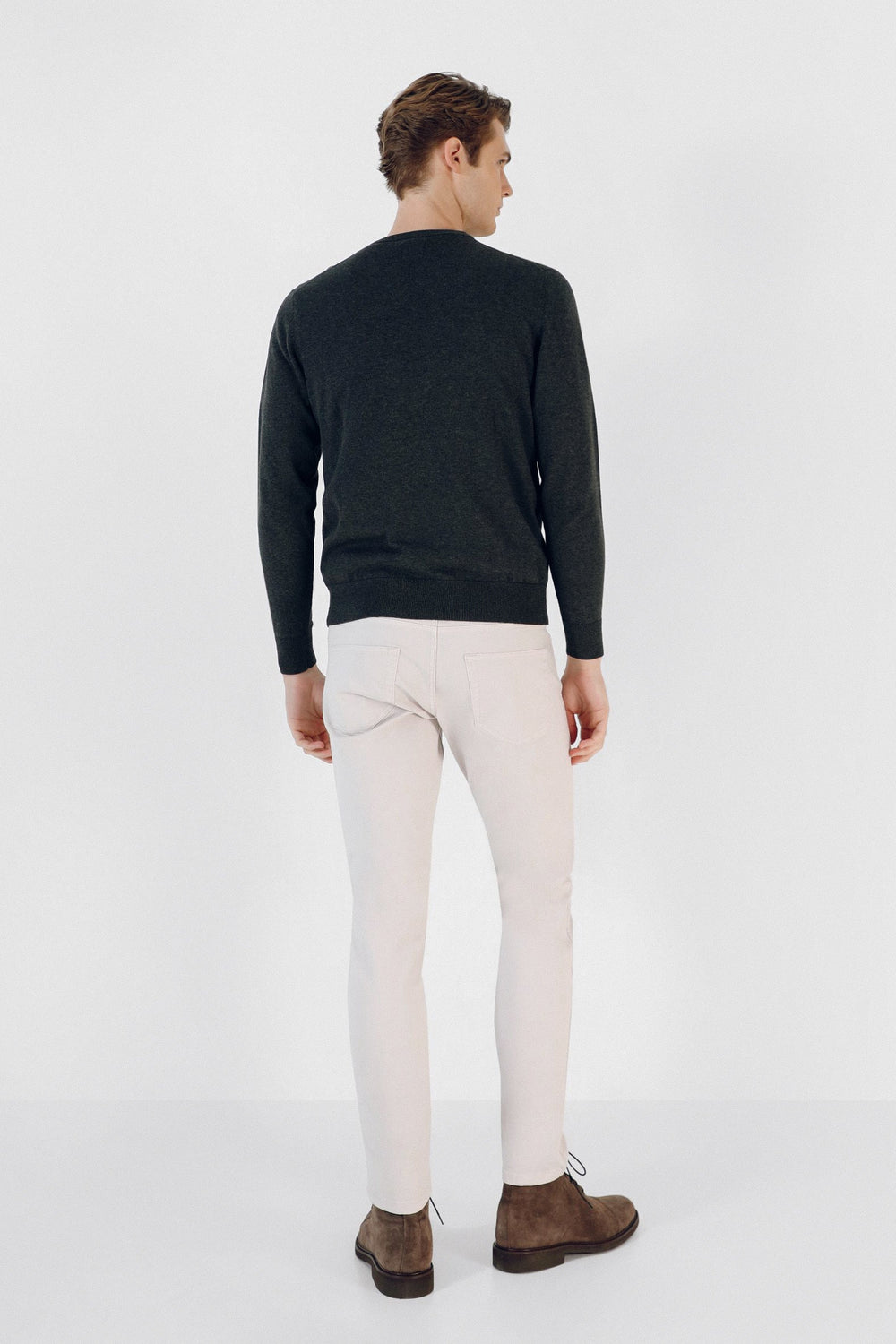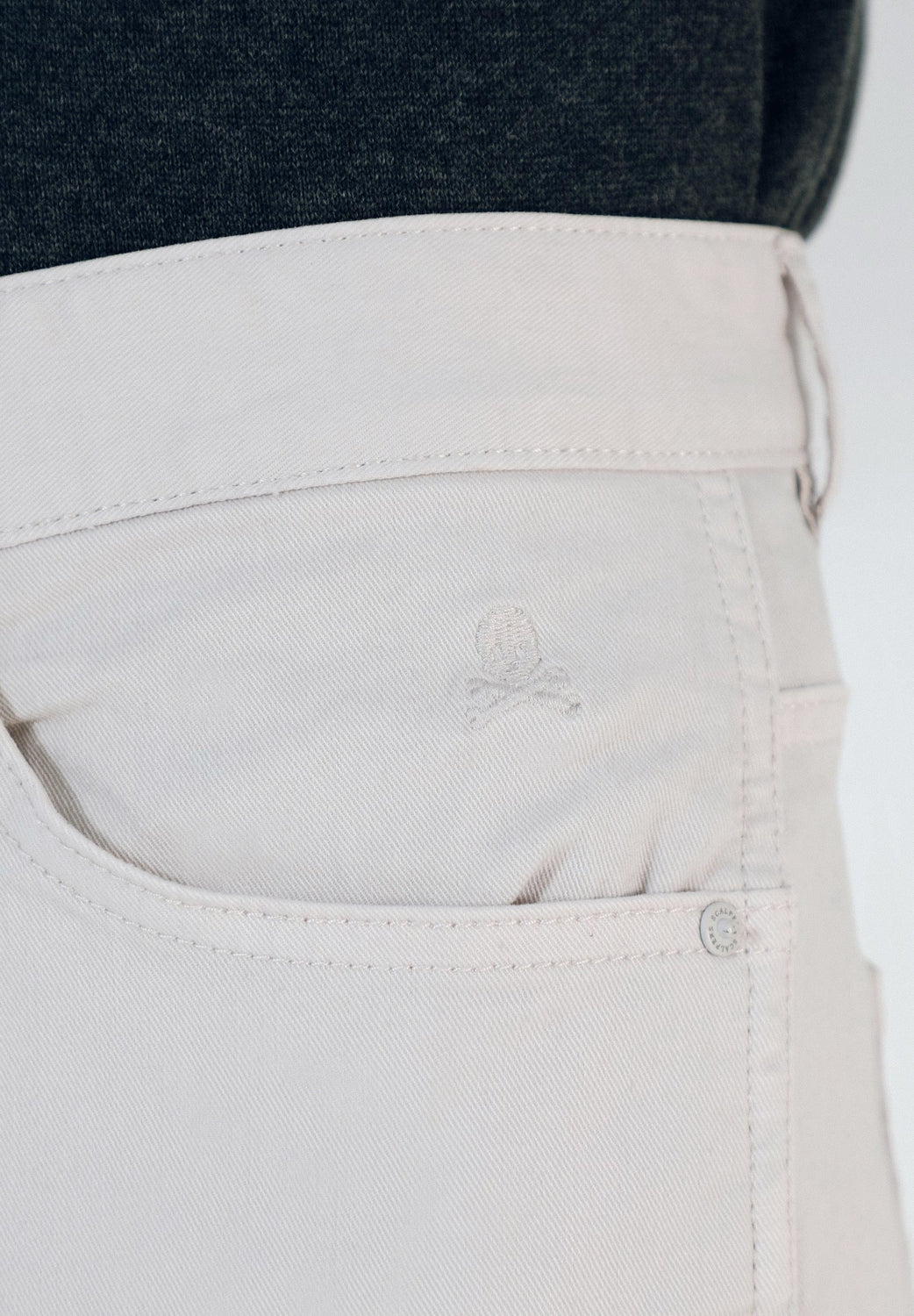 Pantalón confeccionado en tejido de algodón garment dyed. Corte Slim Fit, cierre con botón y cremallera. Cinco bolsillos y trabillas Logo bordado en el bolsillo.