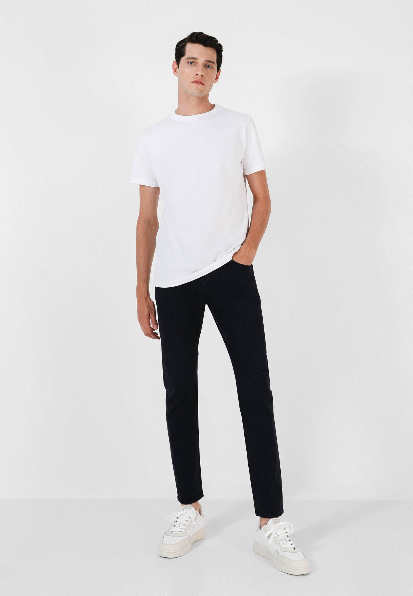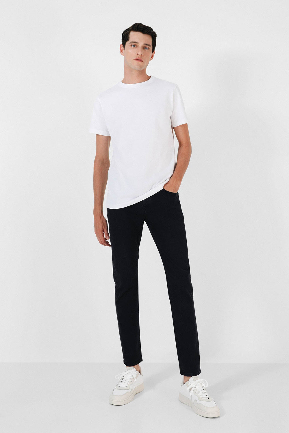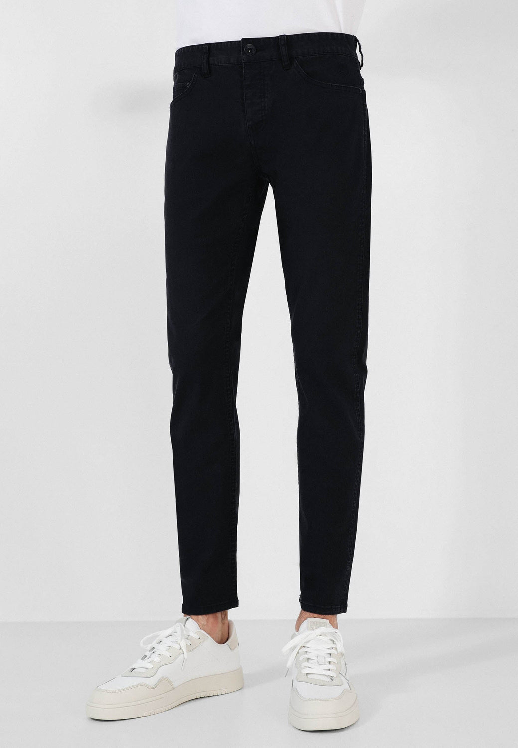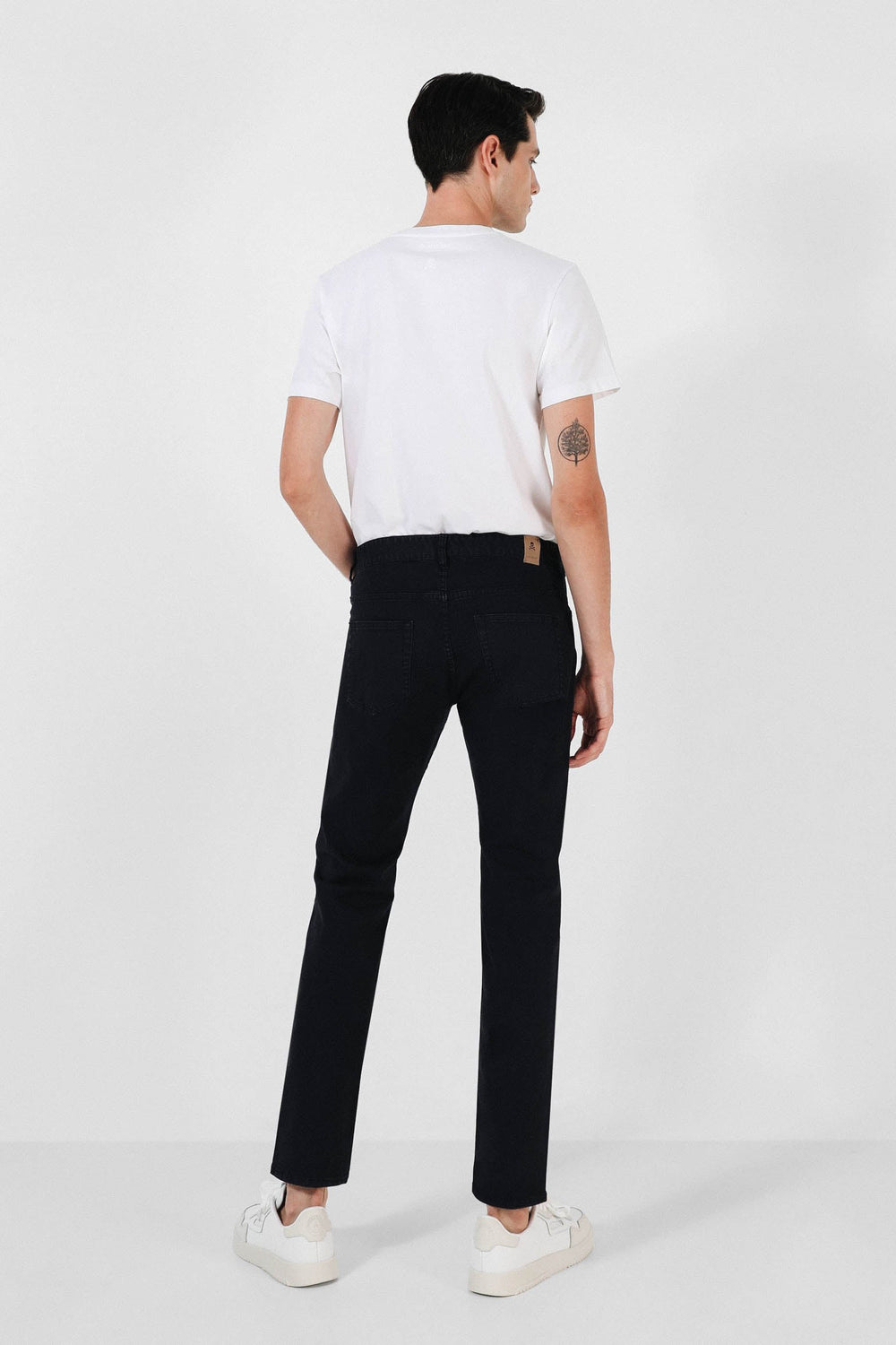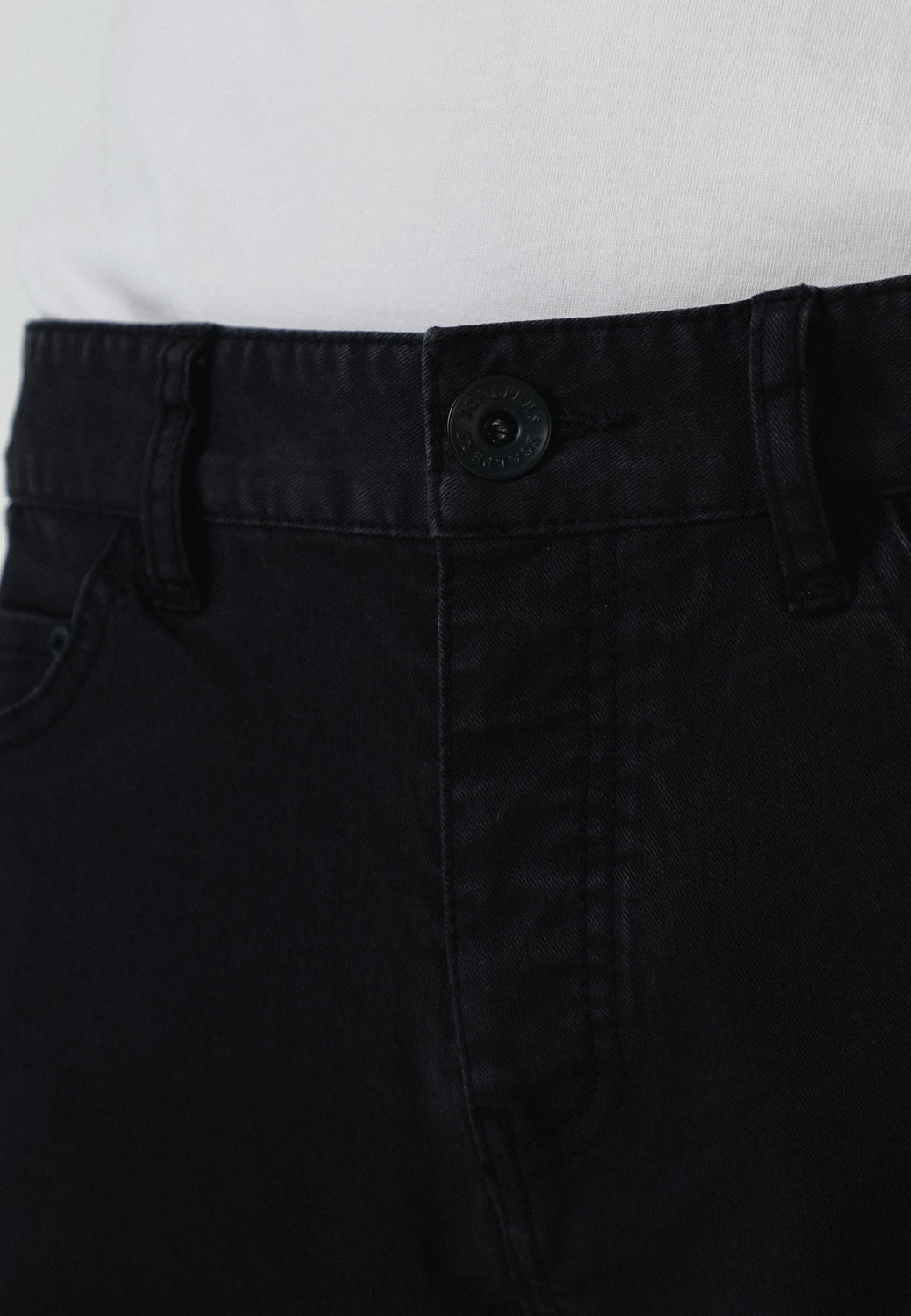 Pantalón confeccionado en tejido de algodón garment dyed. Corte Slim Fit, cierre con botón y cremallera. Cinco bolsillos y trabillas Logo bordado en el bolsillo.