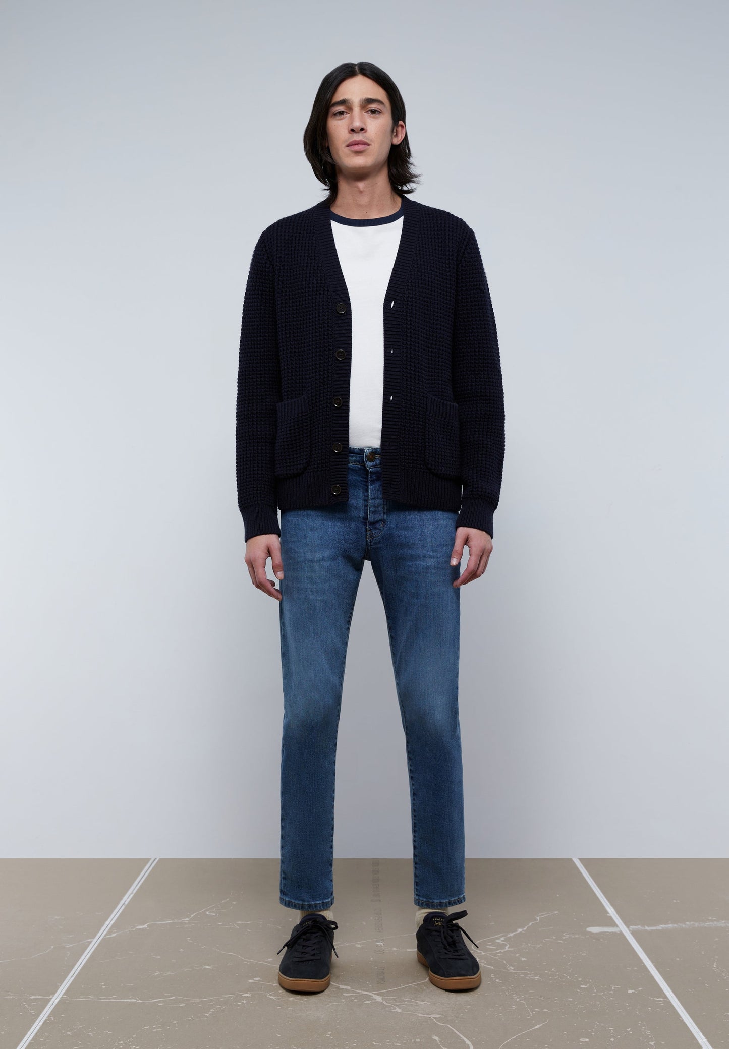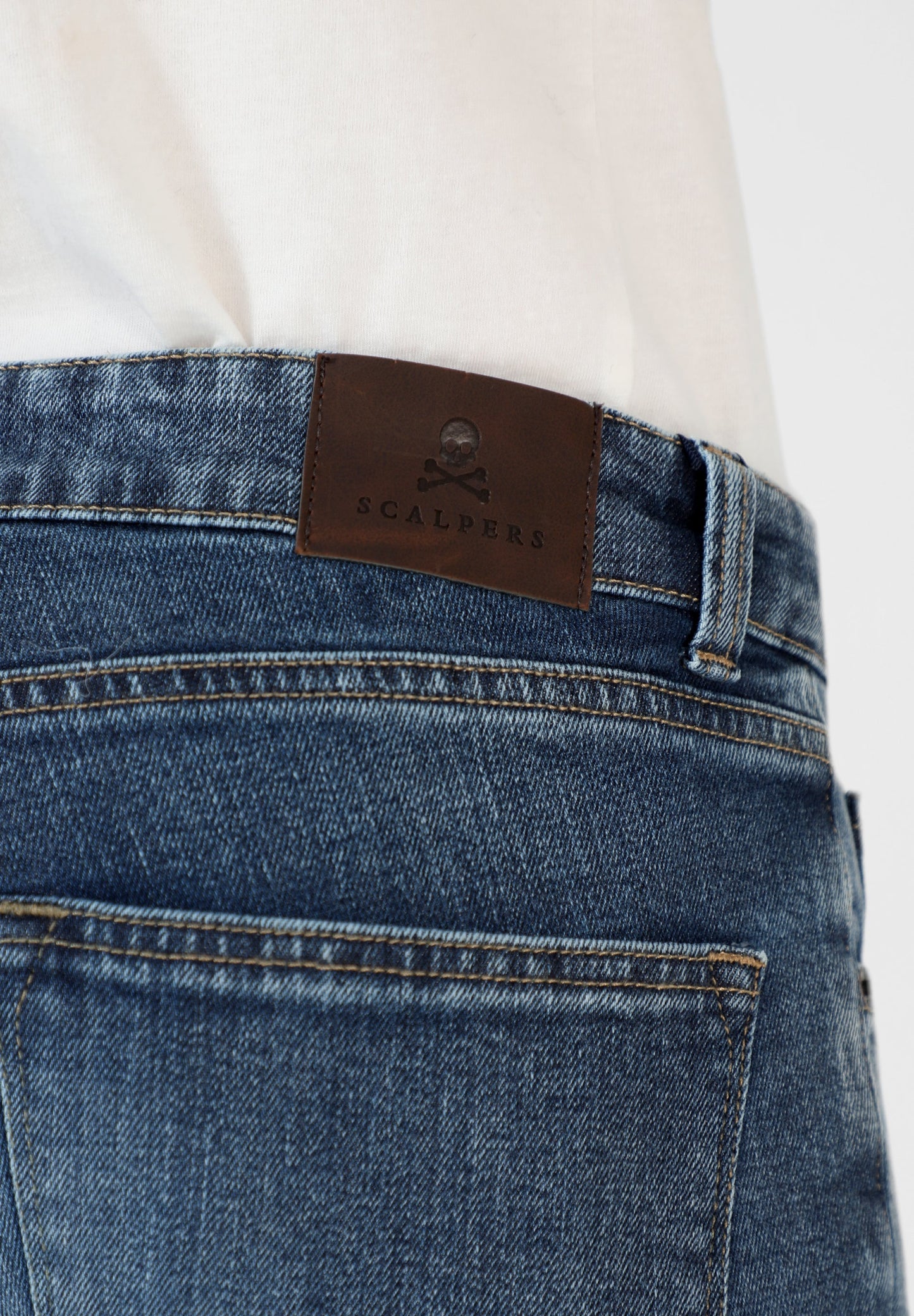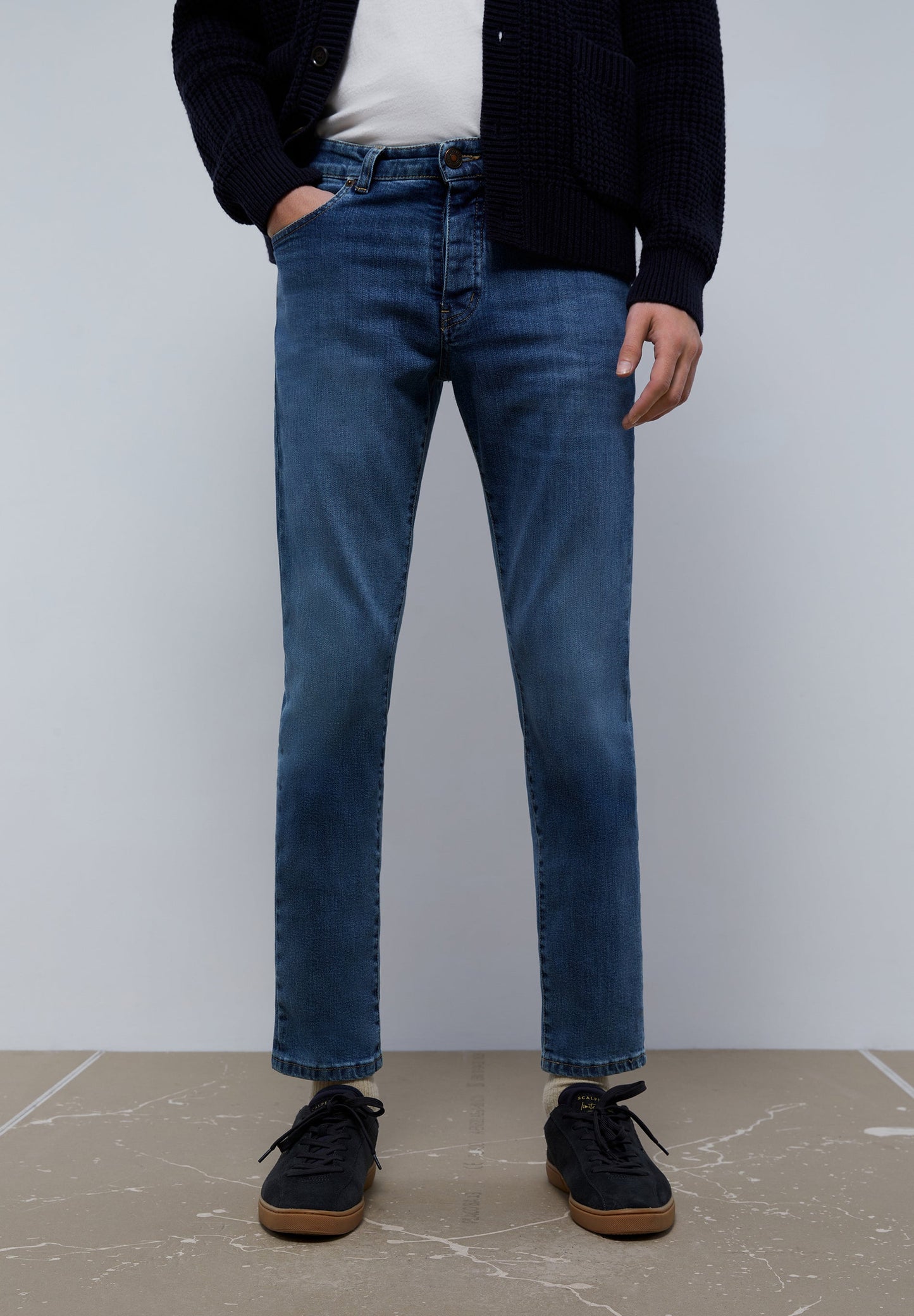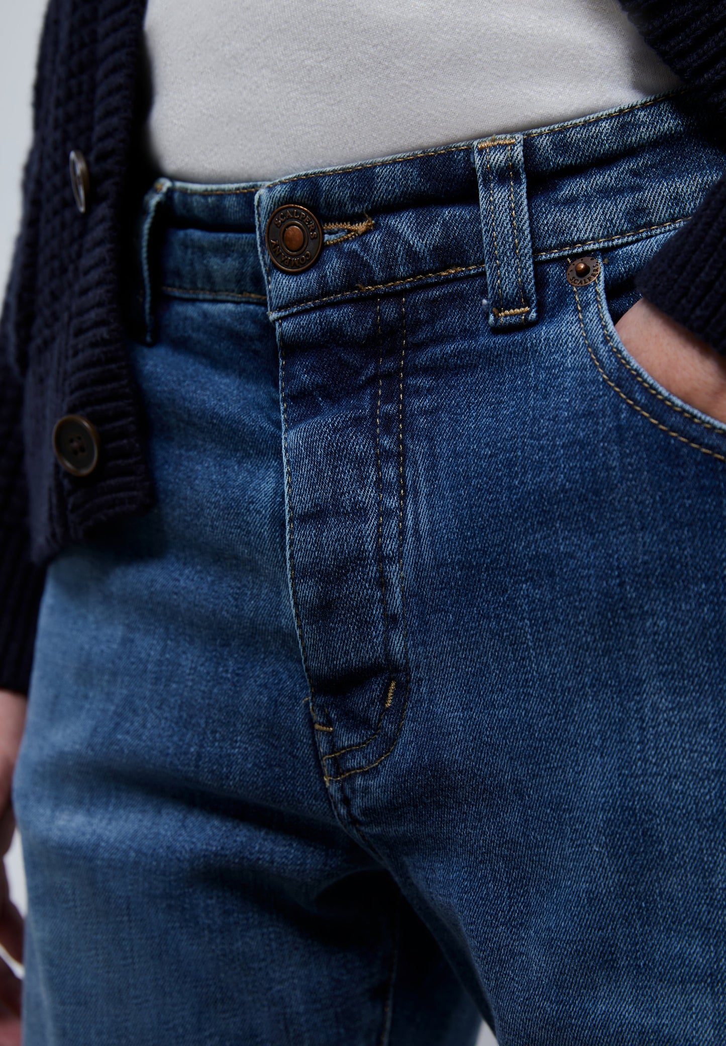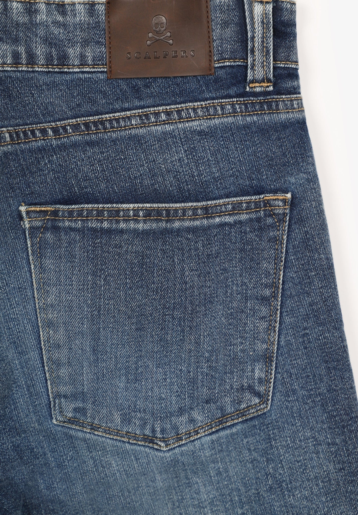 Pantalón vaquero efecto lavado. Corte Slim Fit, cierre con botones ocultos por tapeta y cinco bolsillos. Tiene trabillas. Detalle de bordado en el bolsillo trasero.