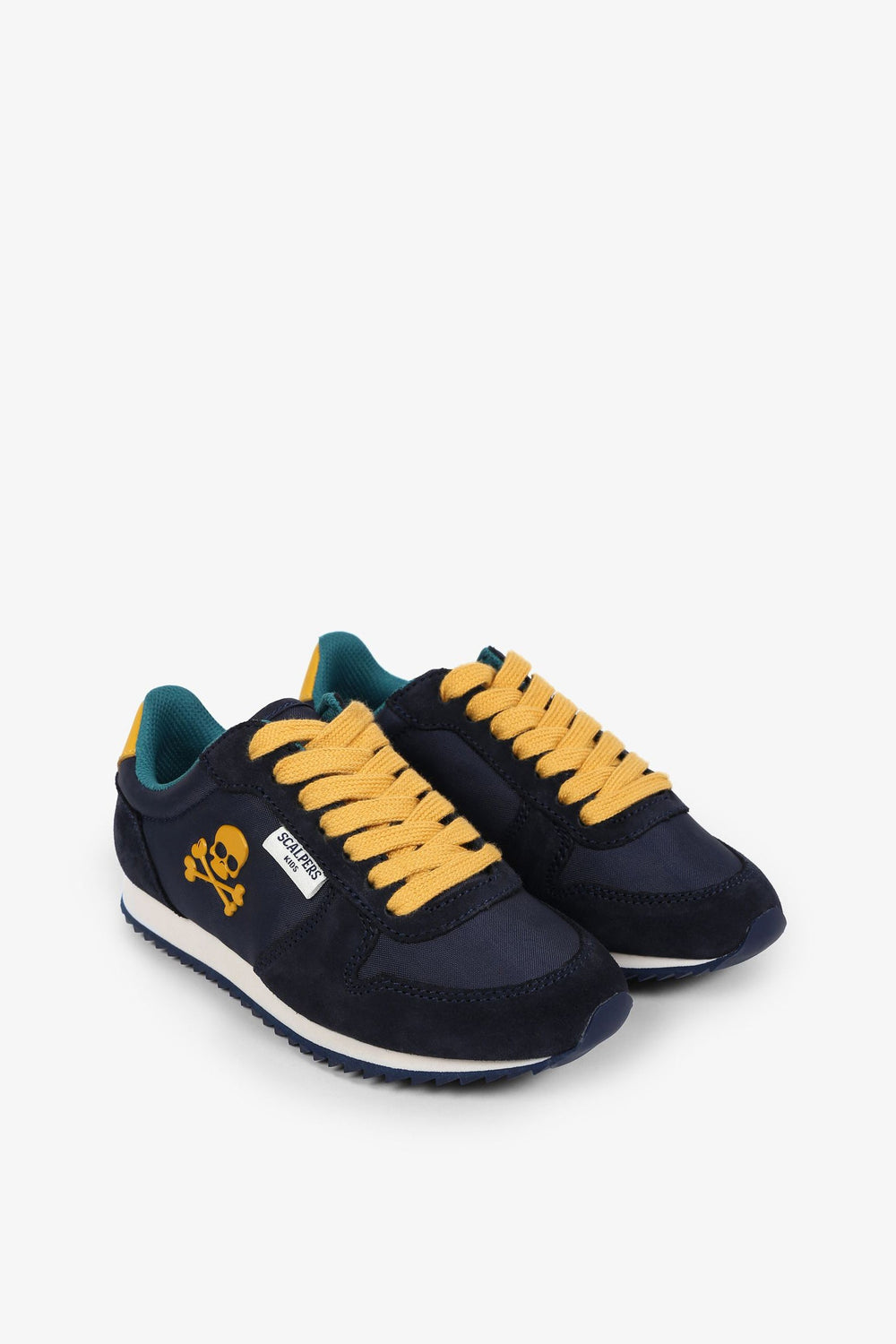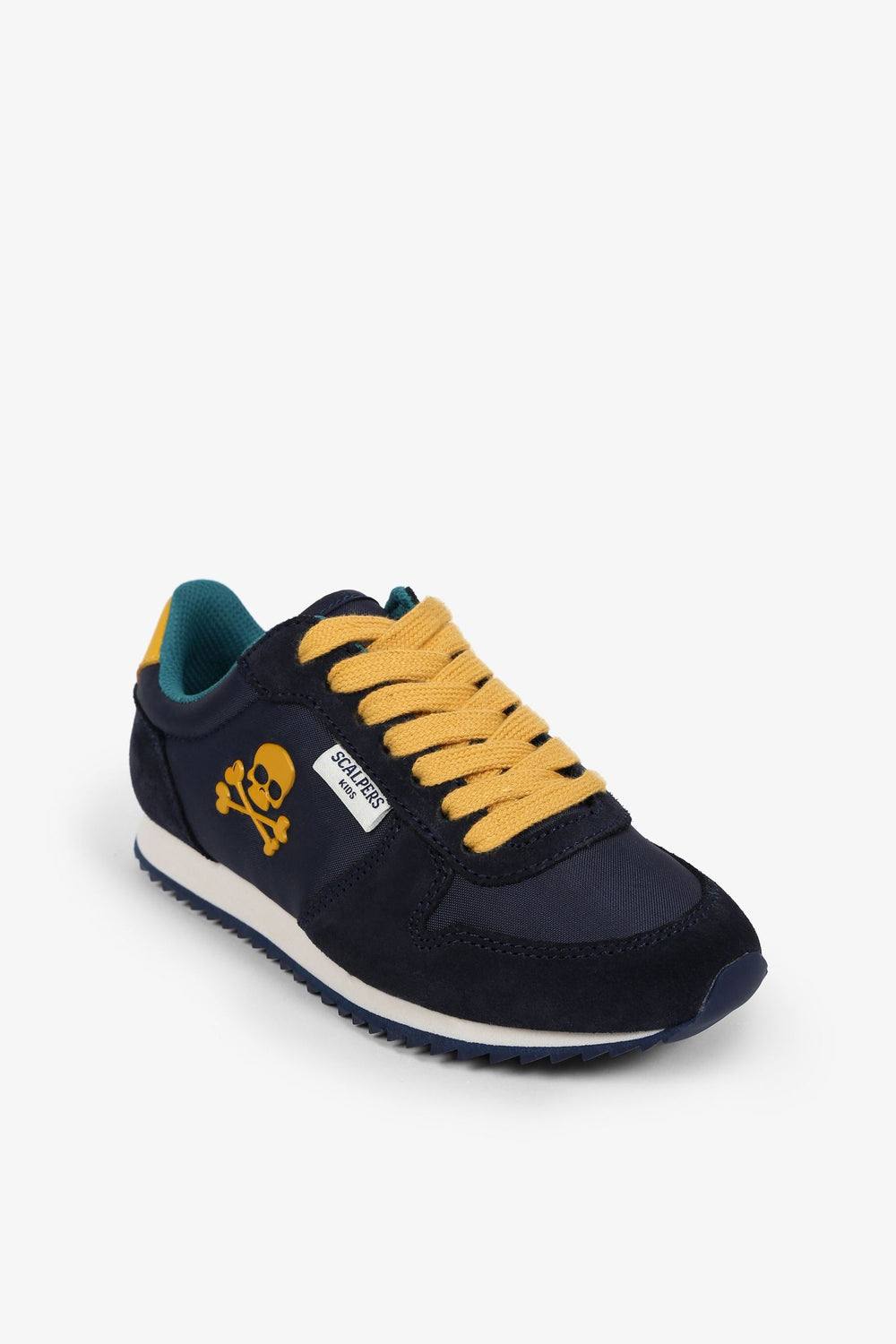 Zapatillas deportivas confeccionadas en tejido de nylon y serraje. Cierre con cordones a contraste y suela dentada con eva. Detalle de calavera con print de alta densidad en el lateral.