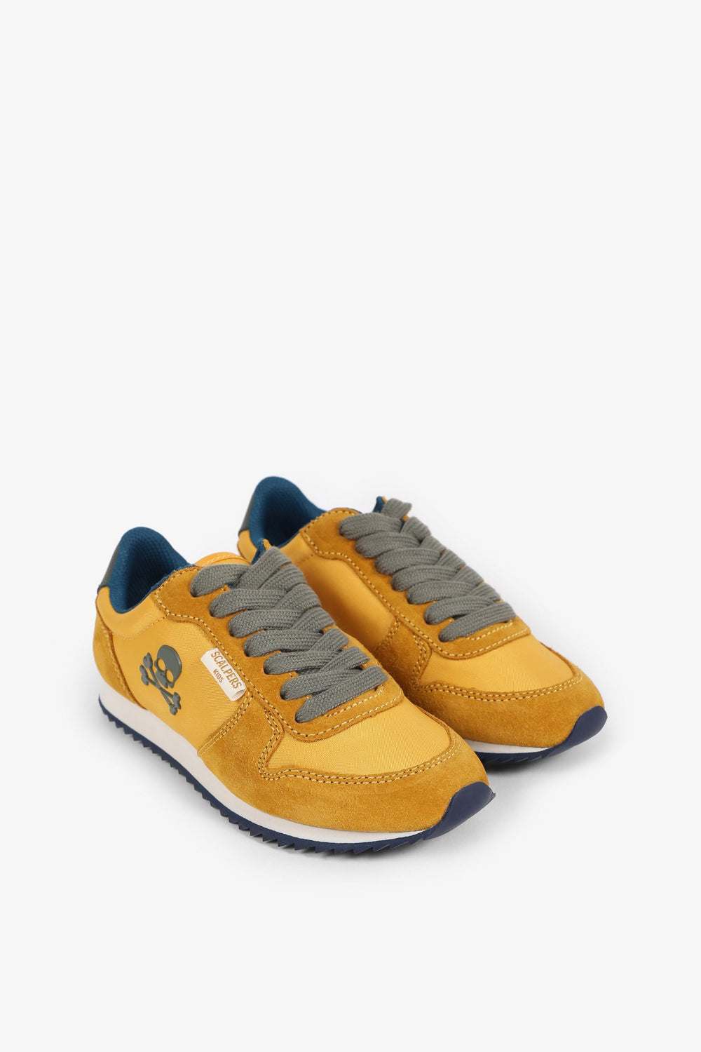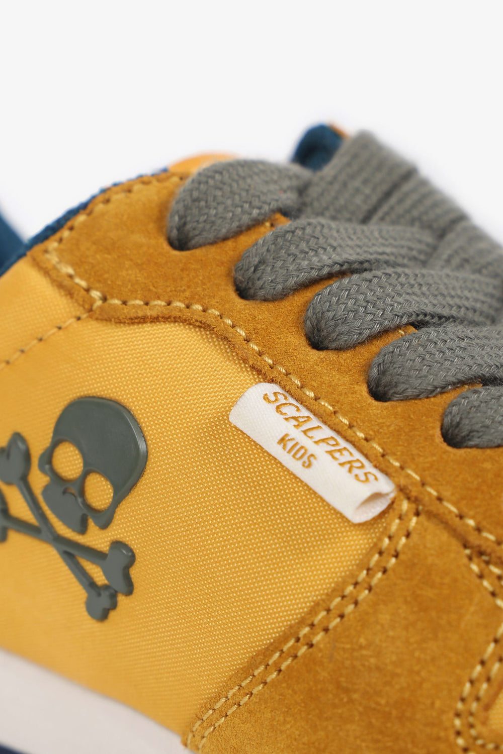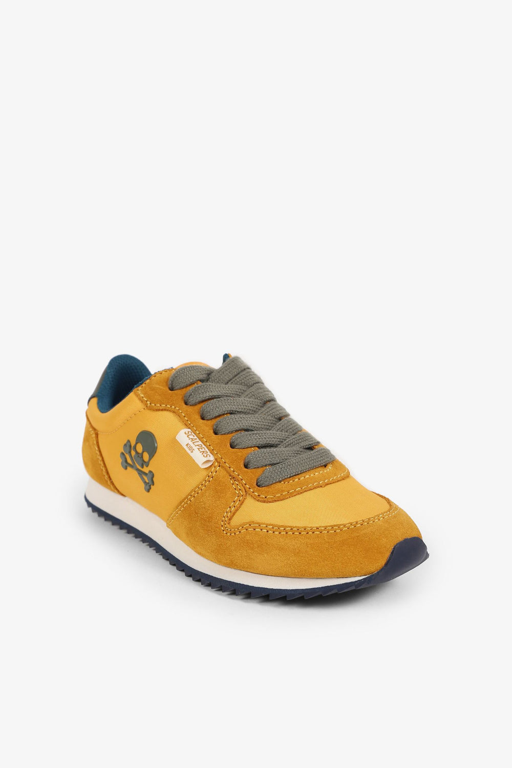 Zapatillas deportivas confeccionadas en tejido de nylon y serraje. Cierre con cordones a contraste y suela dentada con eva. Detalle de calavera con print de alta densidad en el lateral.