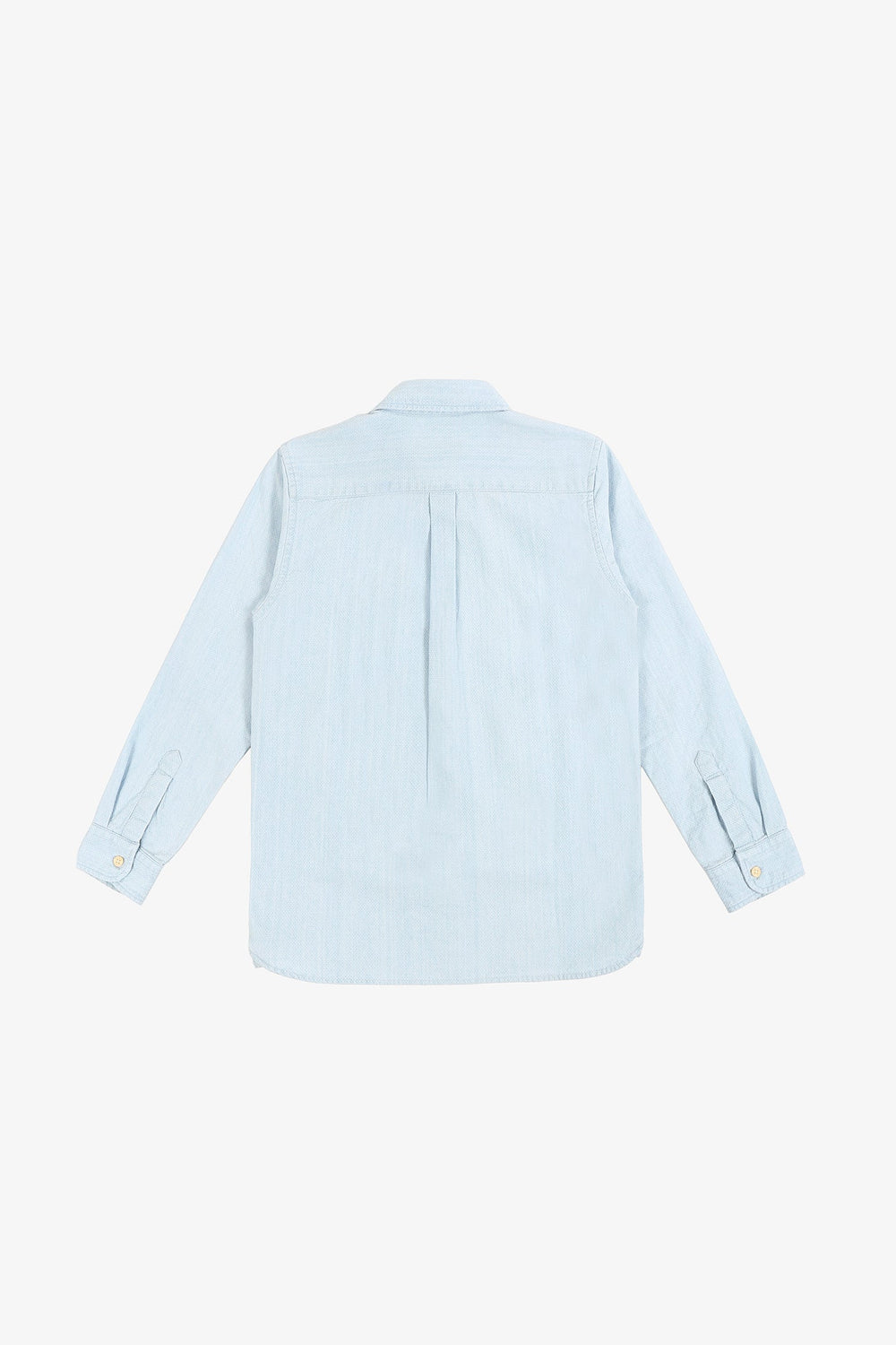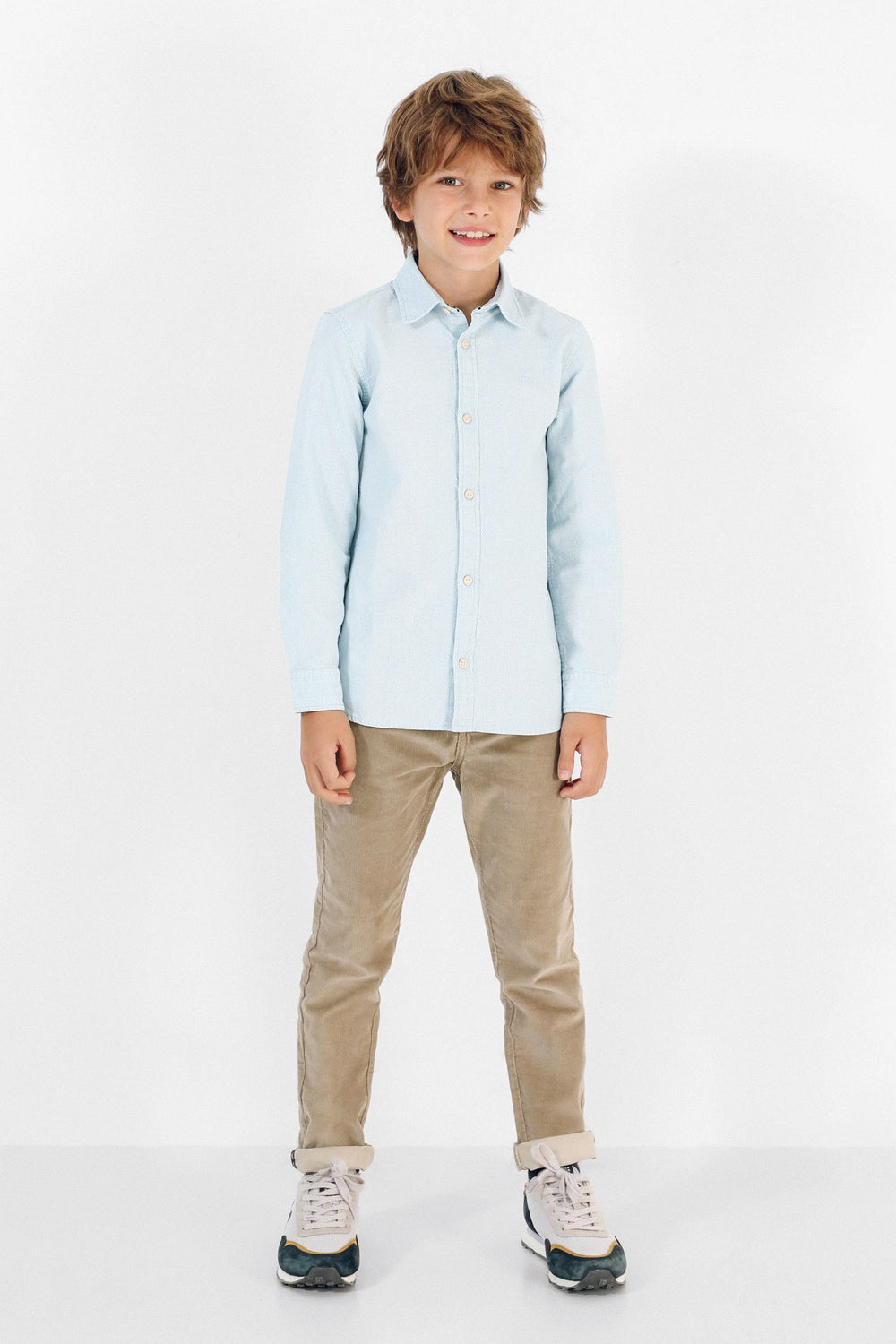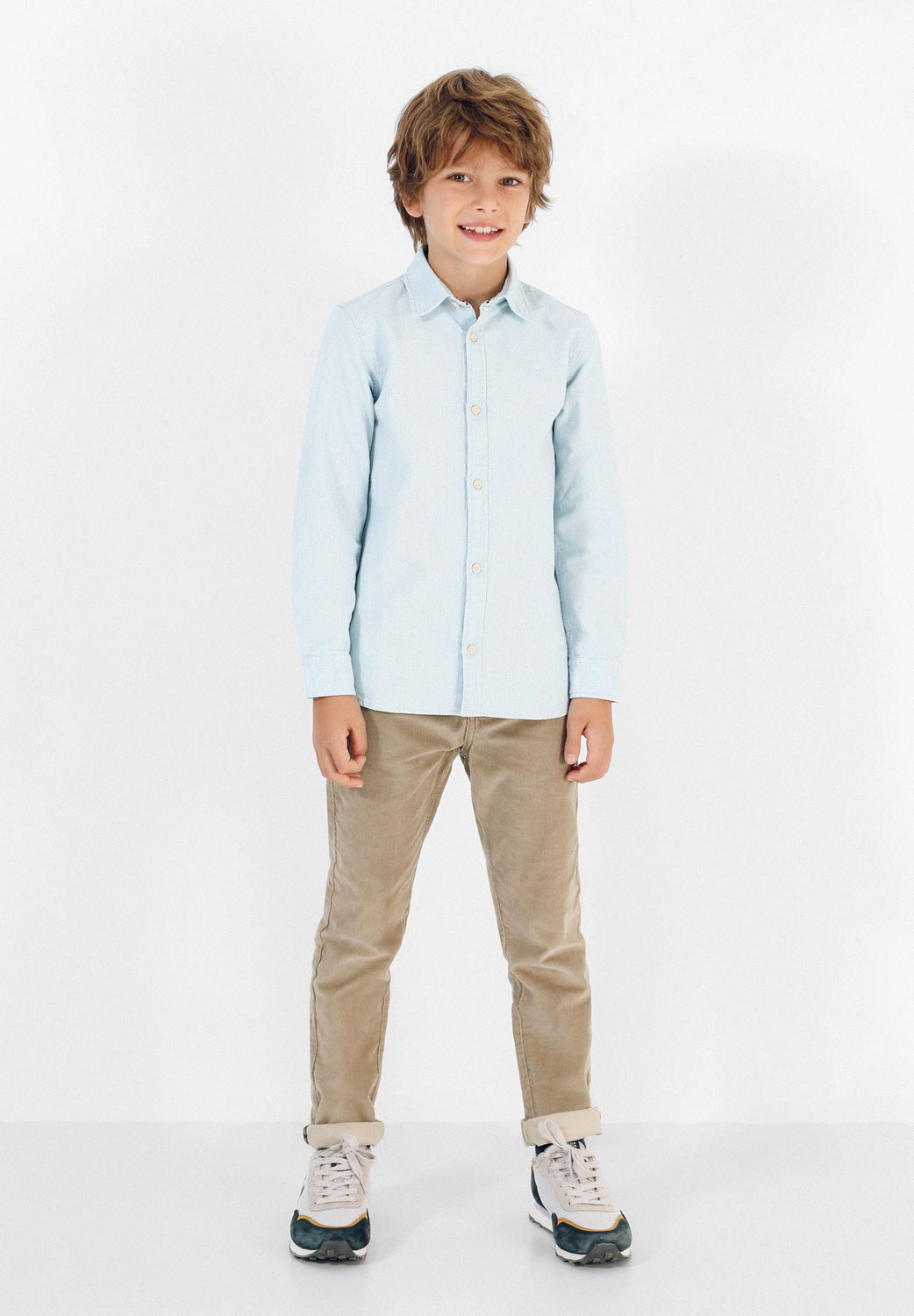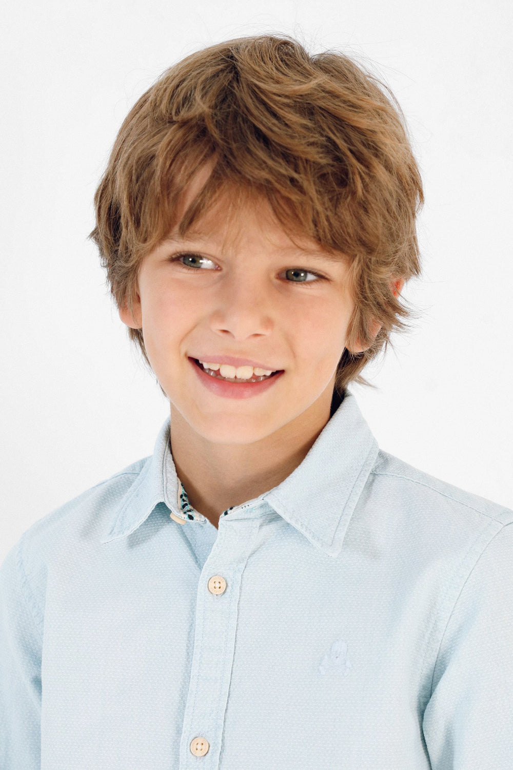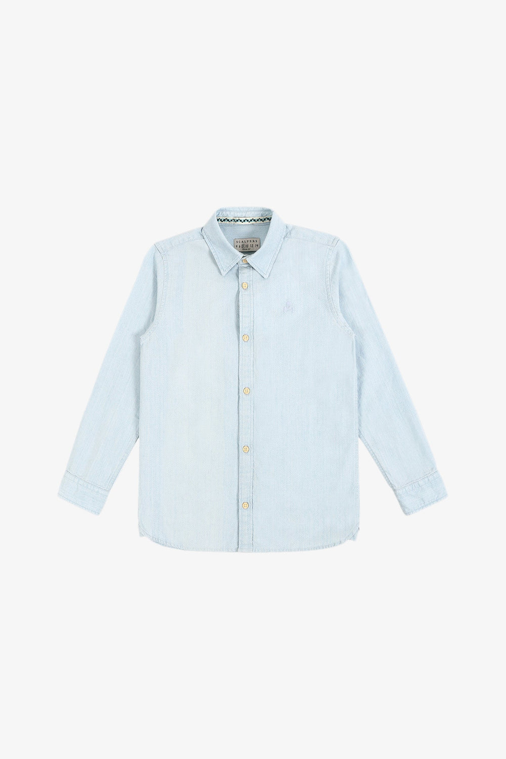 Camisa confeccionada en tejido 100% algodón orgánico. Corte Regular Fit, cuello italiano y cierre con botones. Manga larga terminada en puño y detalle de calavera bordada a tono.
