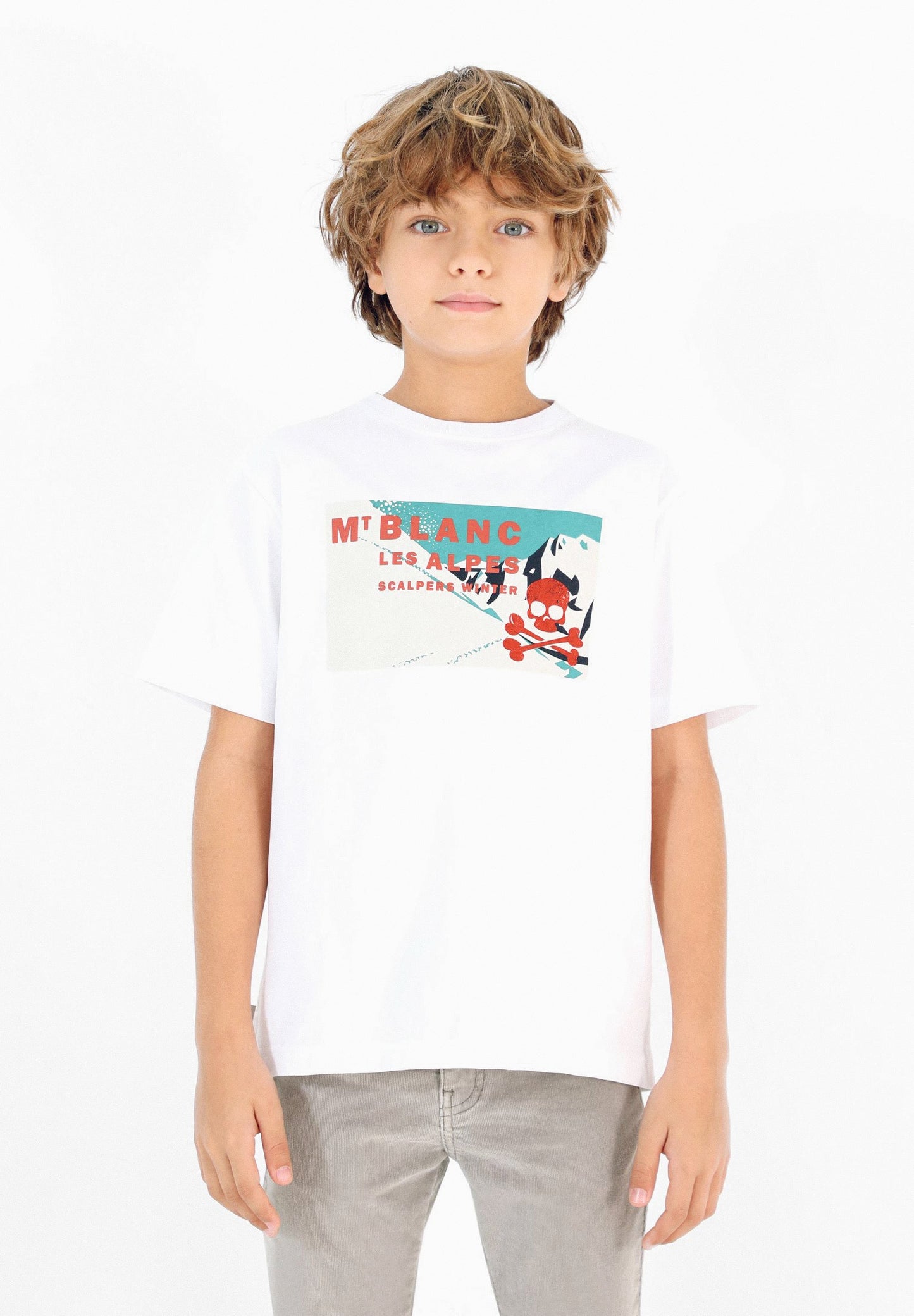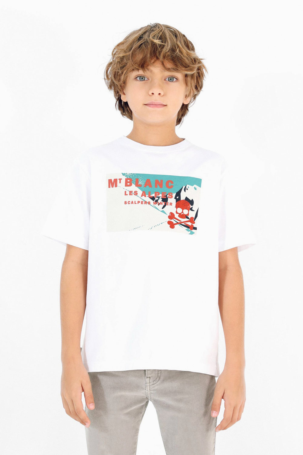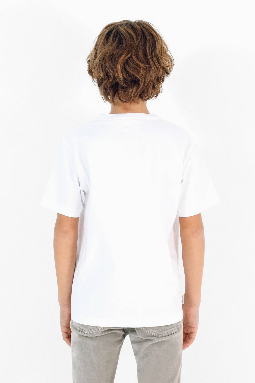 Camiseta confeccionada en tejido 100% algodón orgánico. Corte Regular Fit, cuello redondo y manga corta. Detalle de print delantero.
