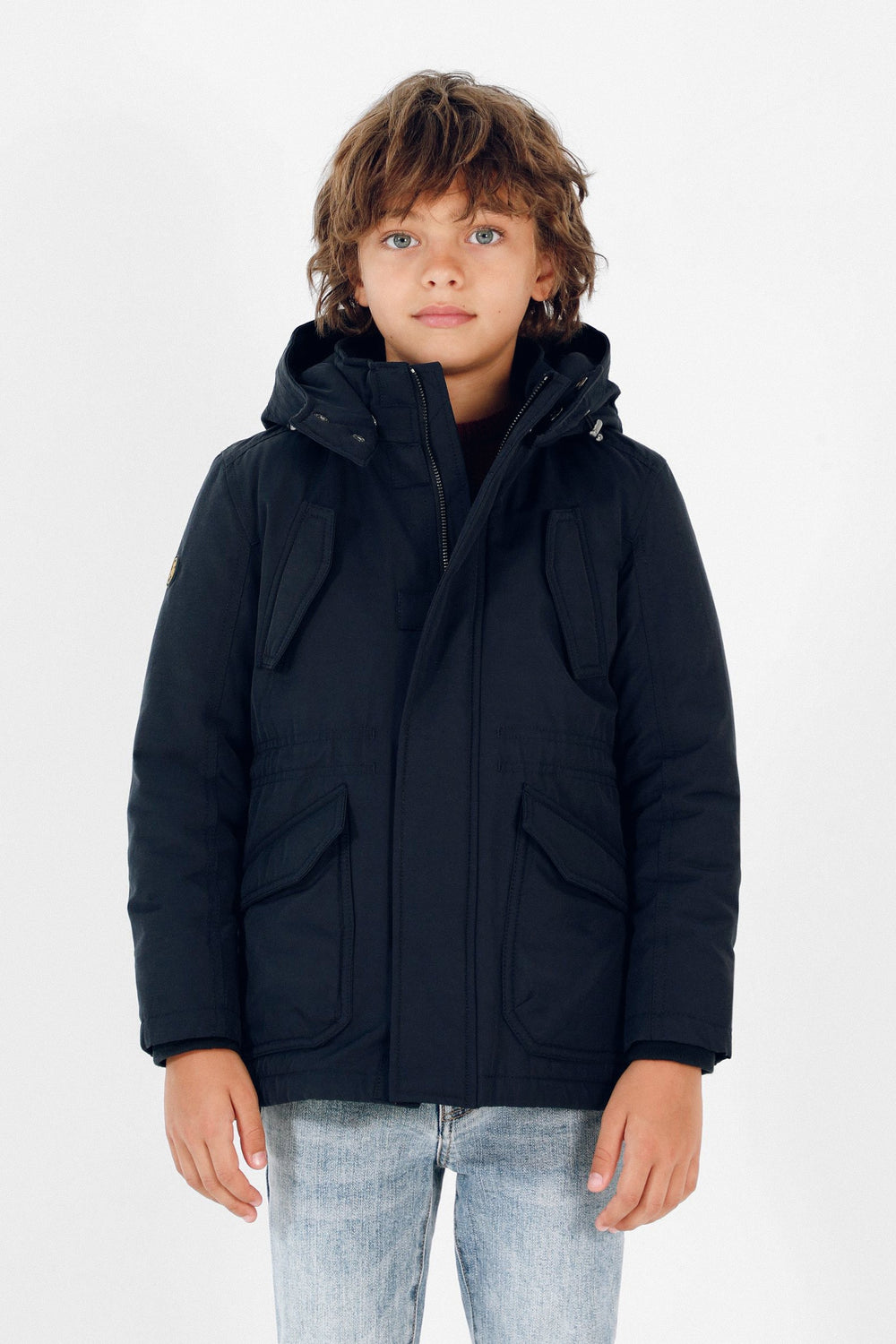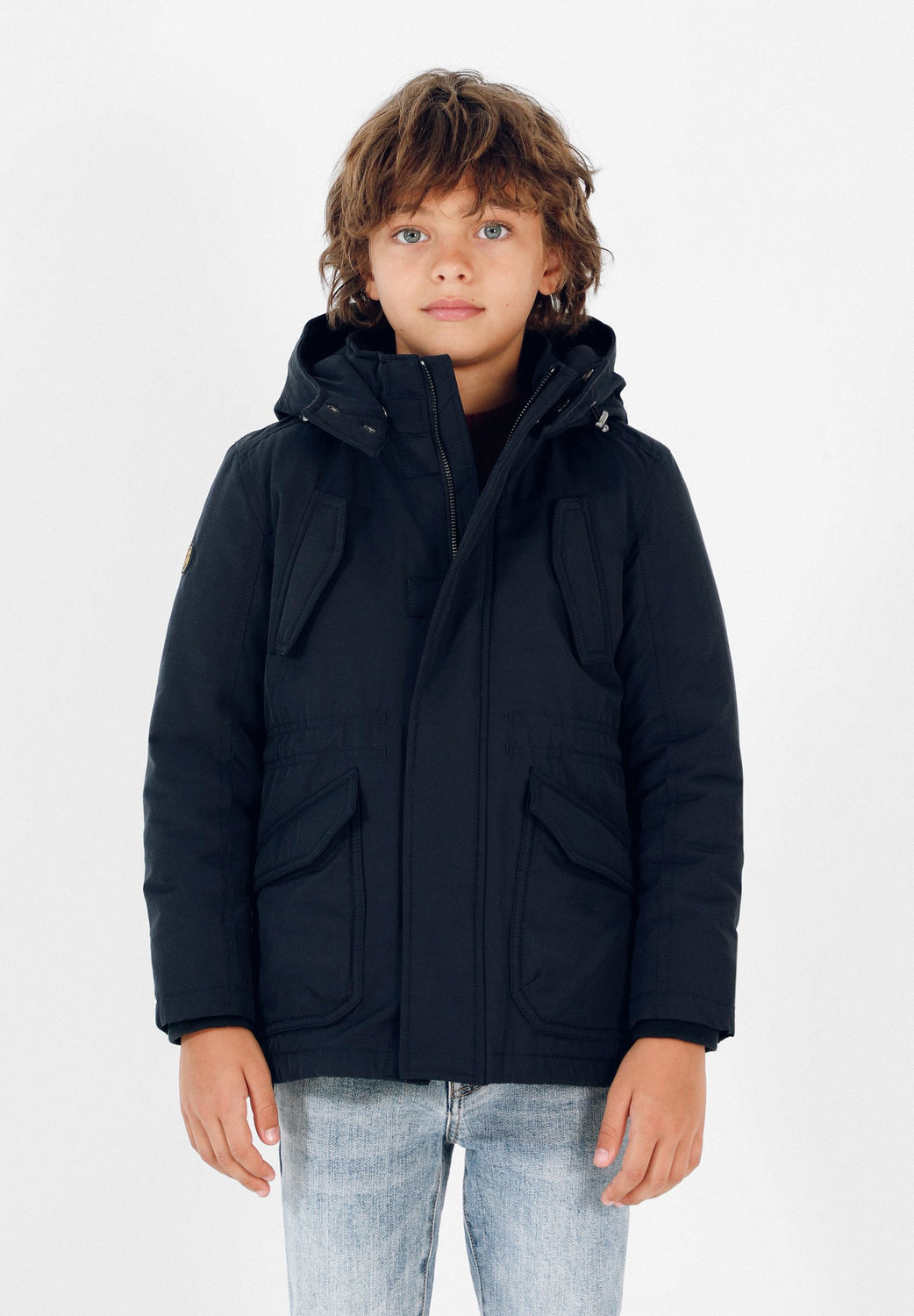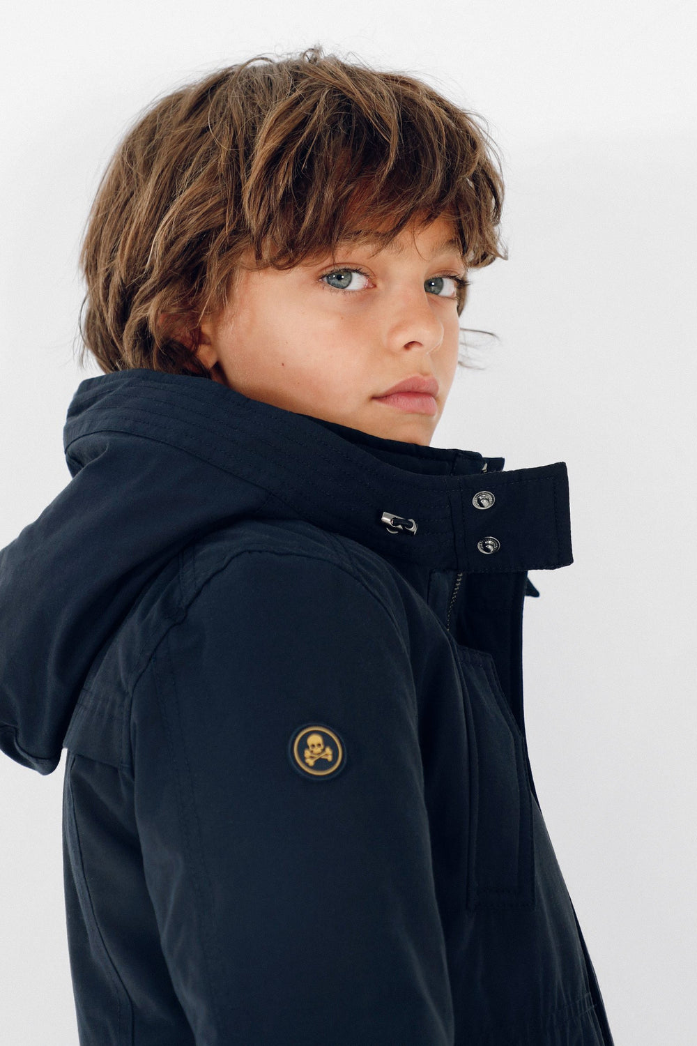 Parka guateada confeccionada en tejido con algodón BCI con tratamiento resistente al agua. Corte Regular Fit, ajustadores en cintura, cuello con capucha ajustable y cierre con cremallera. Bolsillos de plastrón e insertados en el pecho con cierre de imán. Manga larga con detalle de calavera.