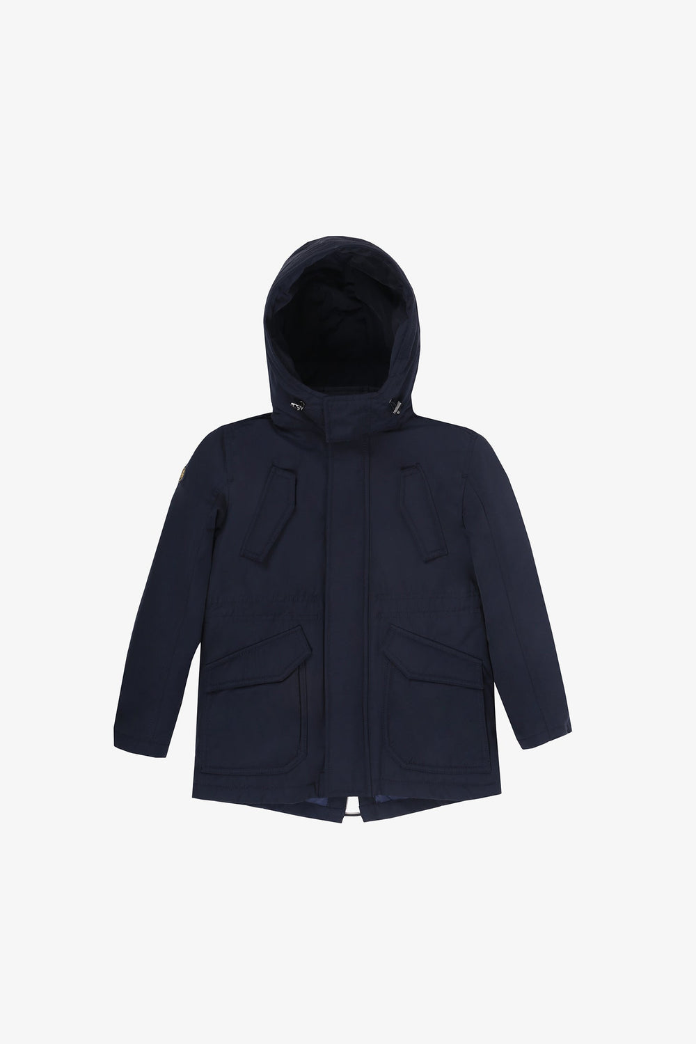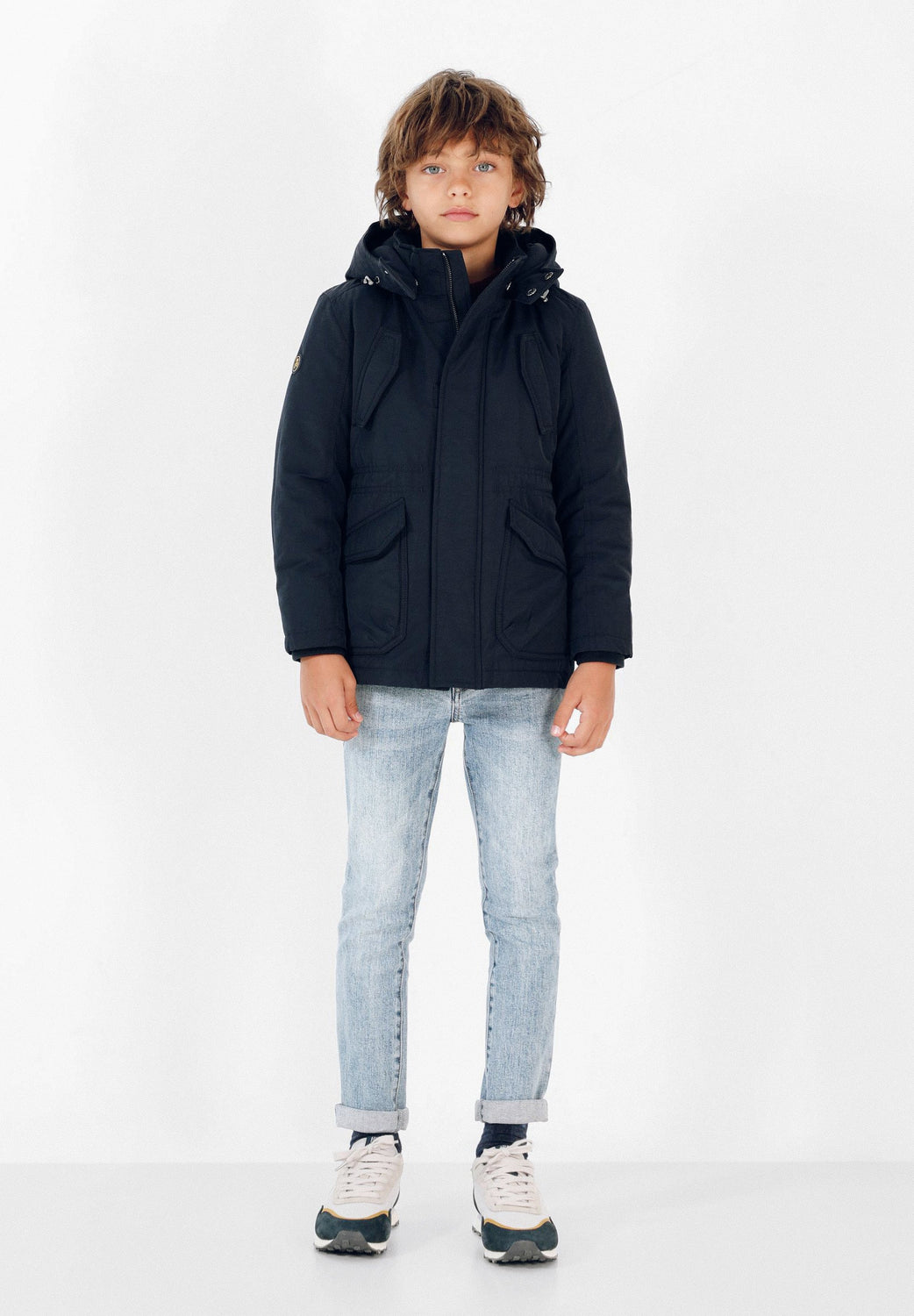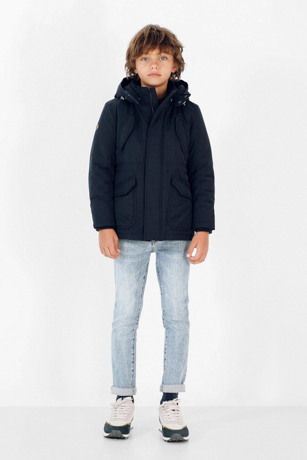 Parka guateada confeccionada en tejido con algodón BCI con tratamiento resistente al agua. Corte Regular Fit, ajustadores en cintura, cuello con capucha ajustable y cierre con cremallera. Bolsillos de plastrón e insertados en el pecho con cierre de imán. Manga larga con detalle de calavera.