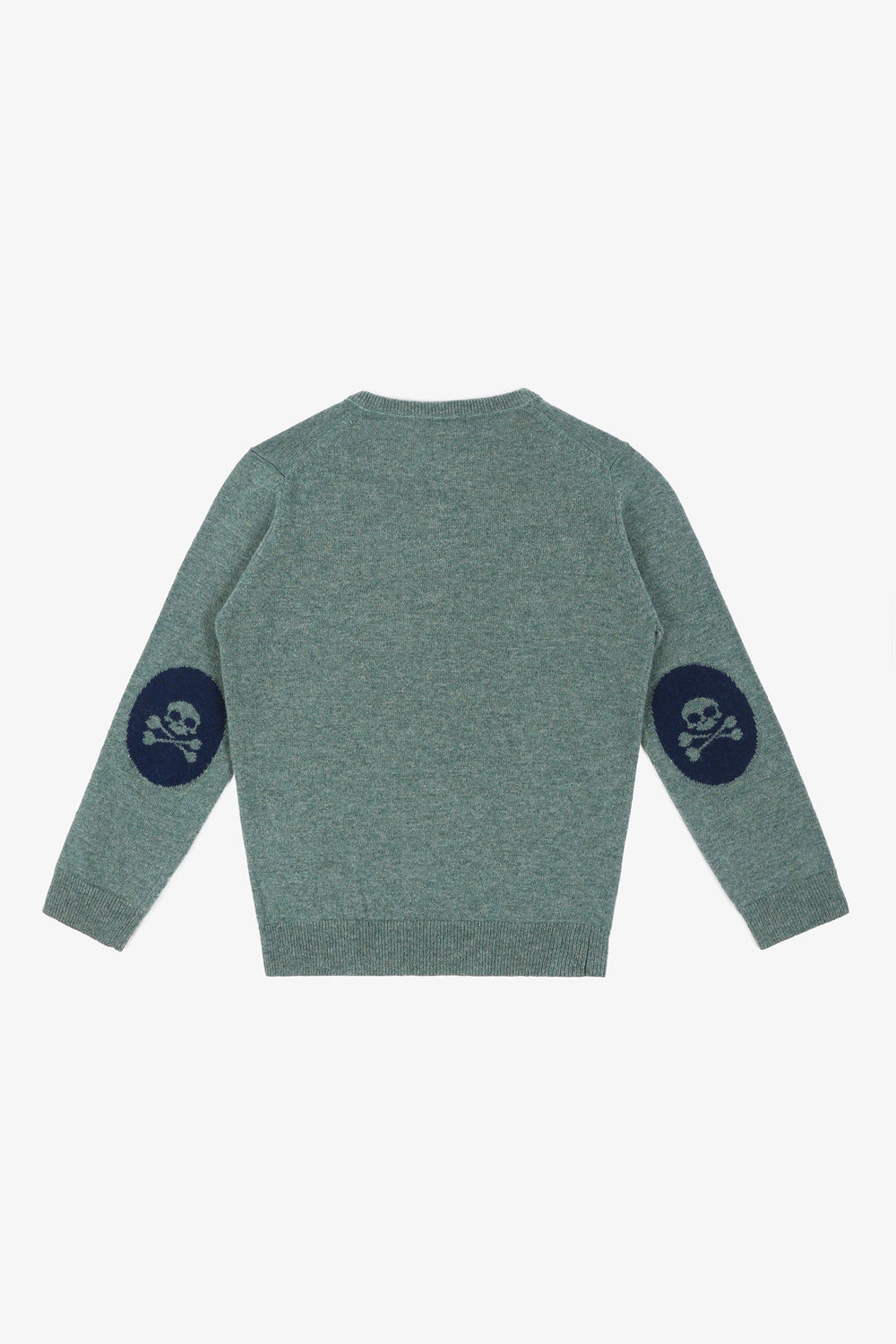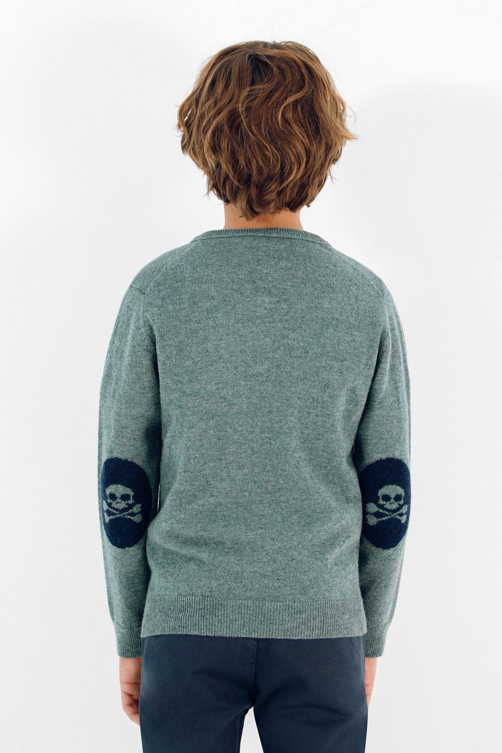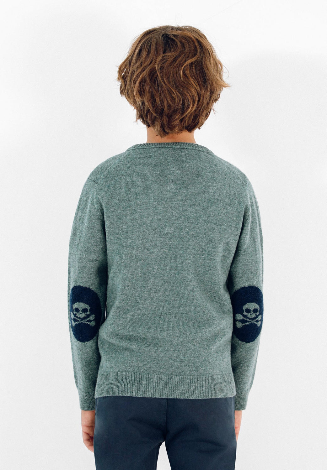 Jersey confeccionado en tejido mezcla de lana. Corte Regular Fit, cuello de pico y manga larga. Detalle de coderas con calavera y calavera a contraste en el pecho.