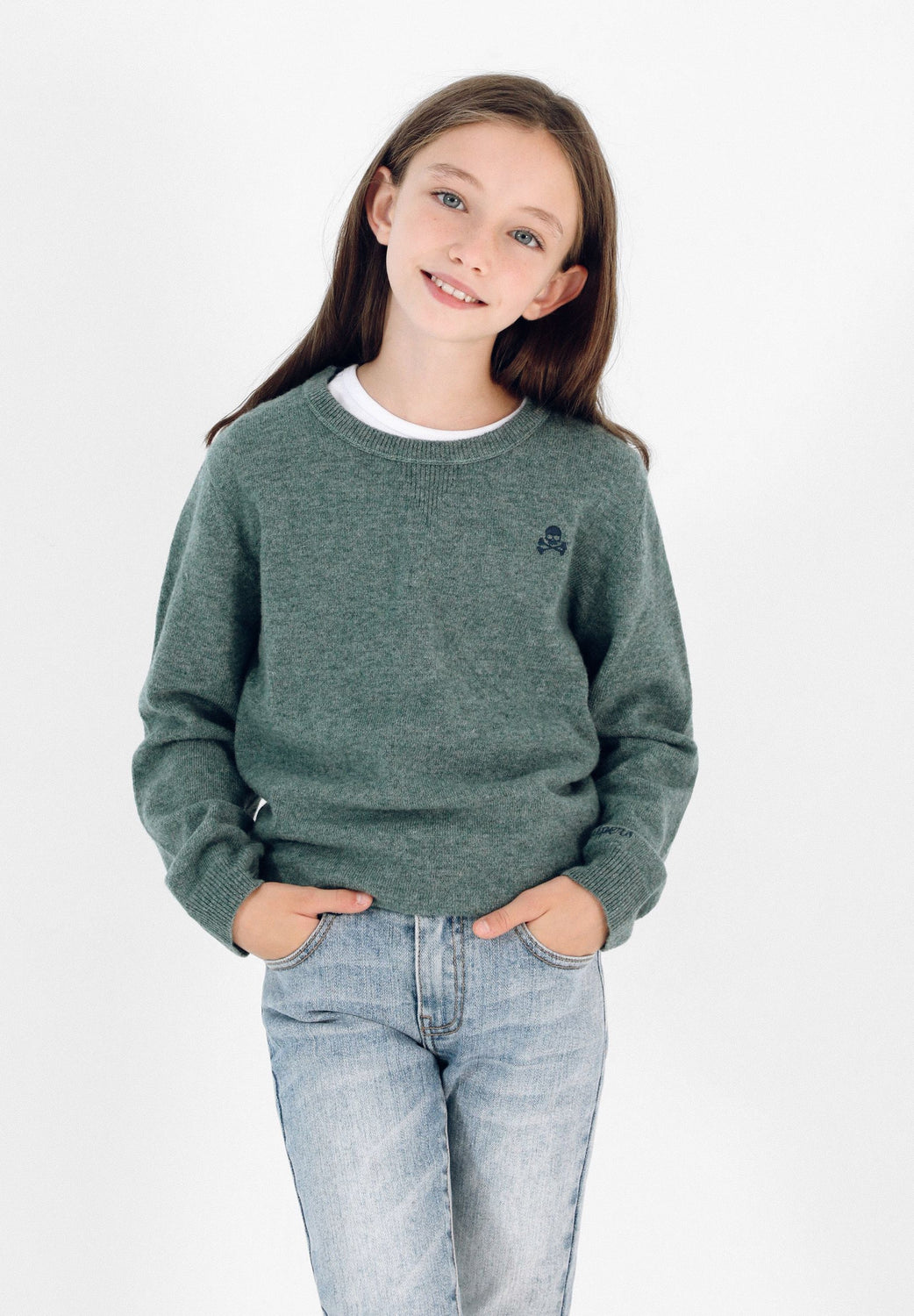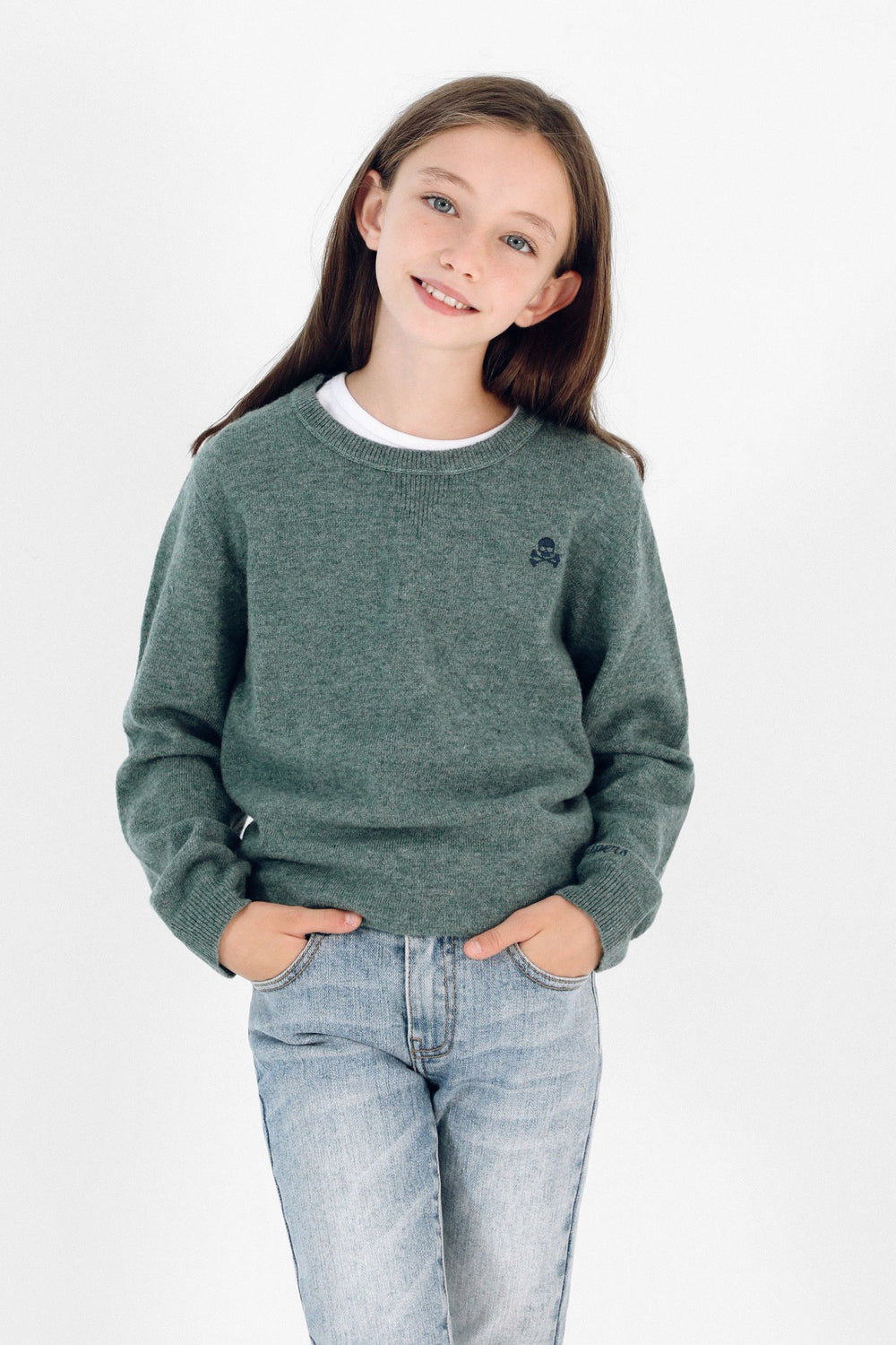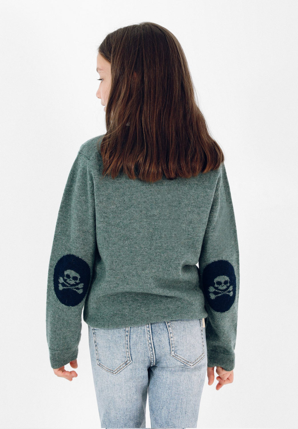 Jersey confeccionado en tejido mezcla de lana. Corte Regular Fit, cuello de pico y manga larga. Detalle de coderas con calavera y calavera a contraste en el pecho.