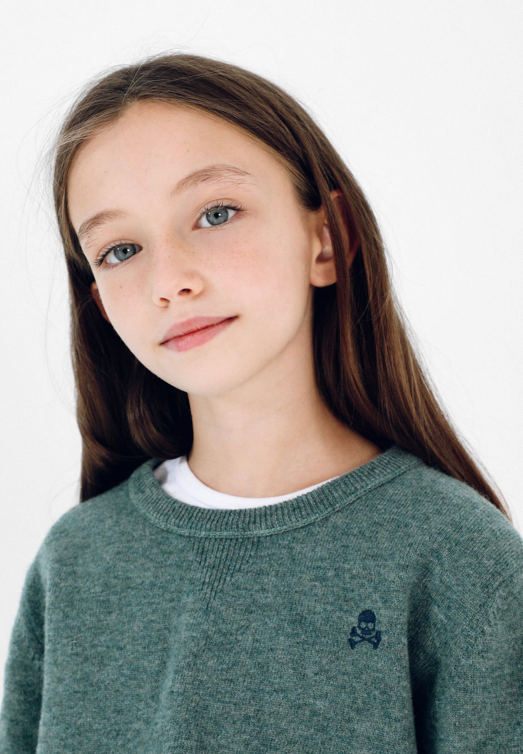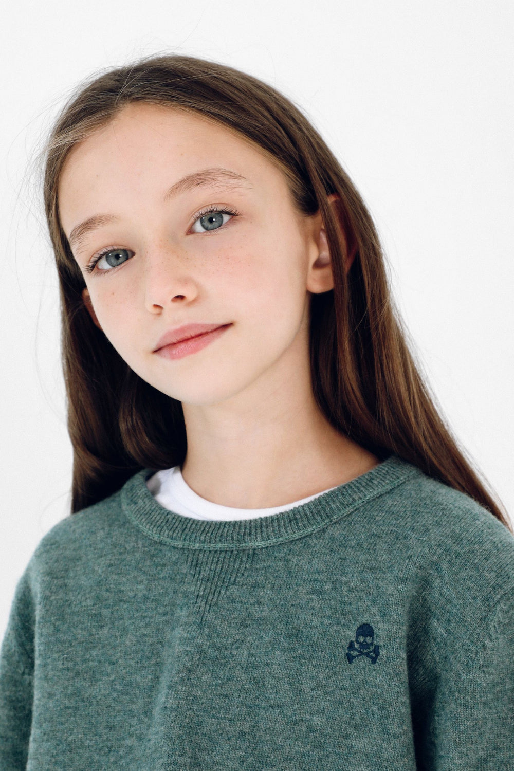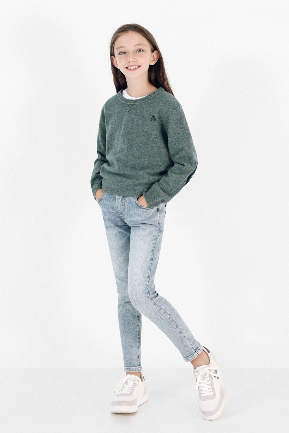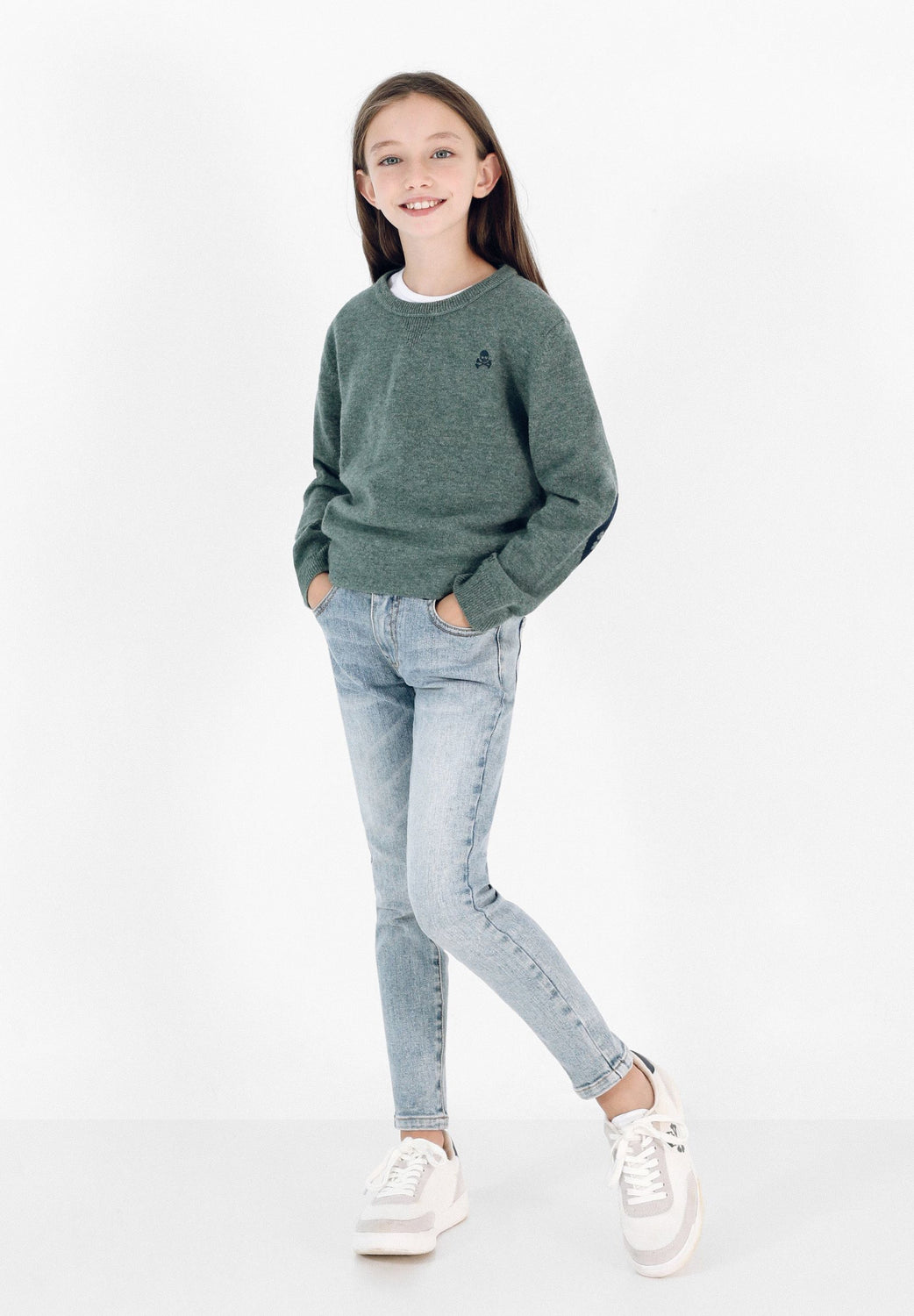 Jersey confeccionado en tejido mezcla de lana. Corte Regular Fit, cuello de pico y manga larga. Detalle de coderas con calavera y calavera a contraste en el pecho.