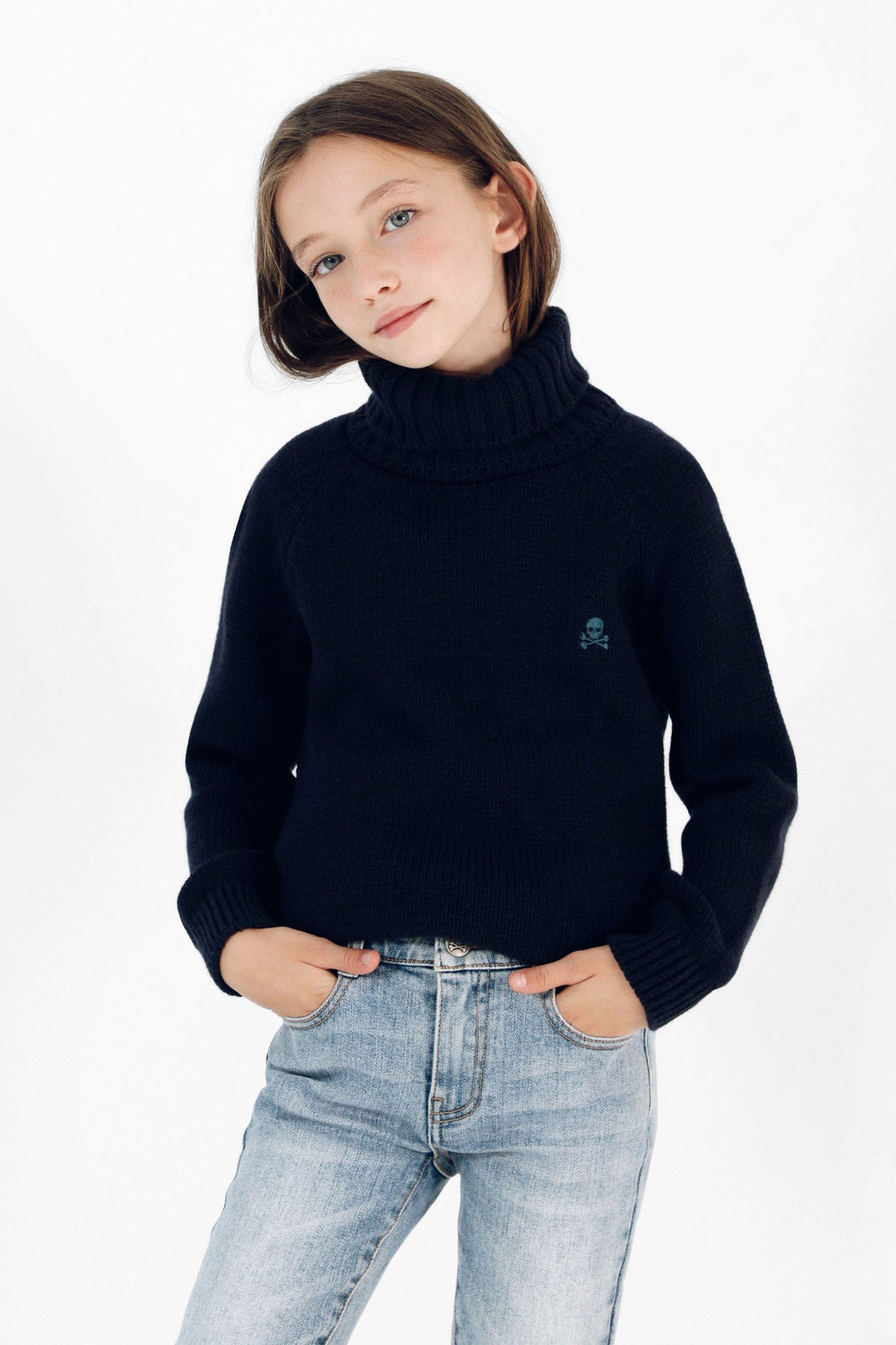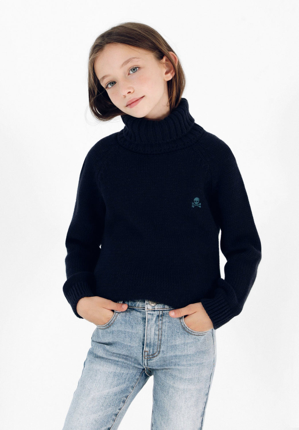 Jersey confeccionado en tejido de algodón y lana. Corte Regular Fit, cuello vuelto y manga larga terminada en ribs. Detalle de calavera bordada.