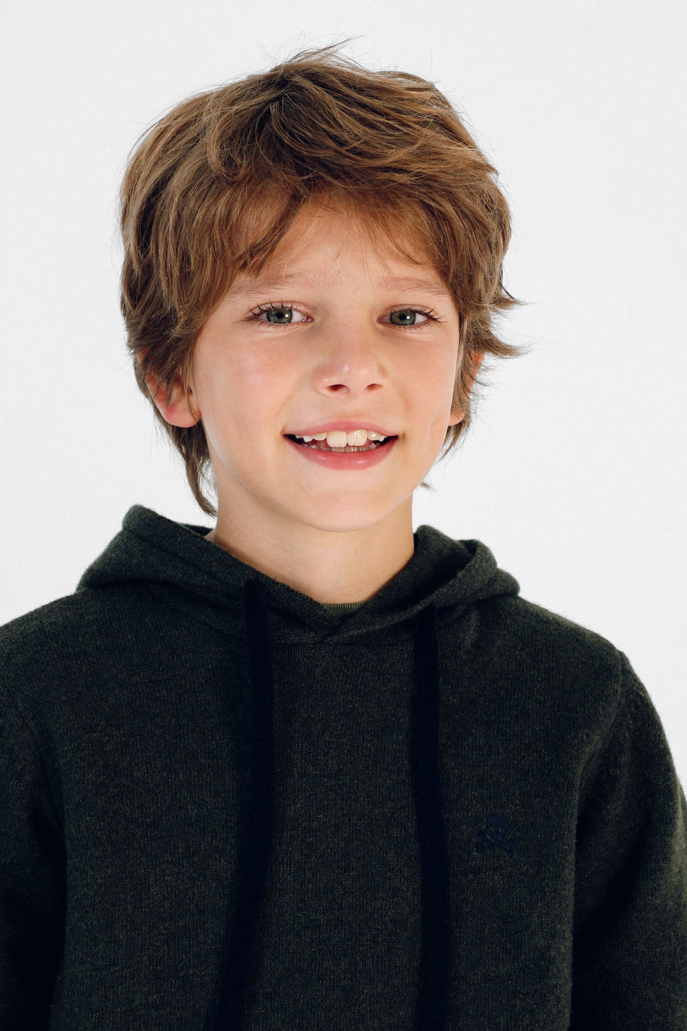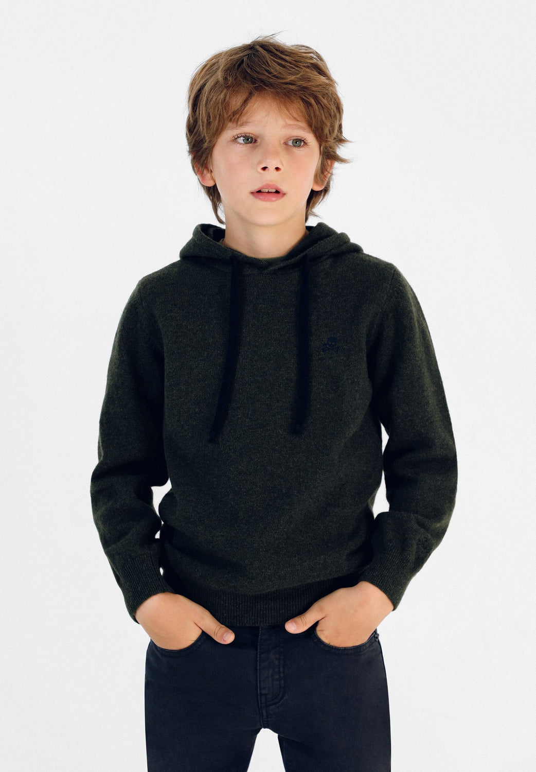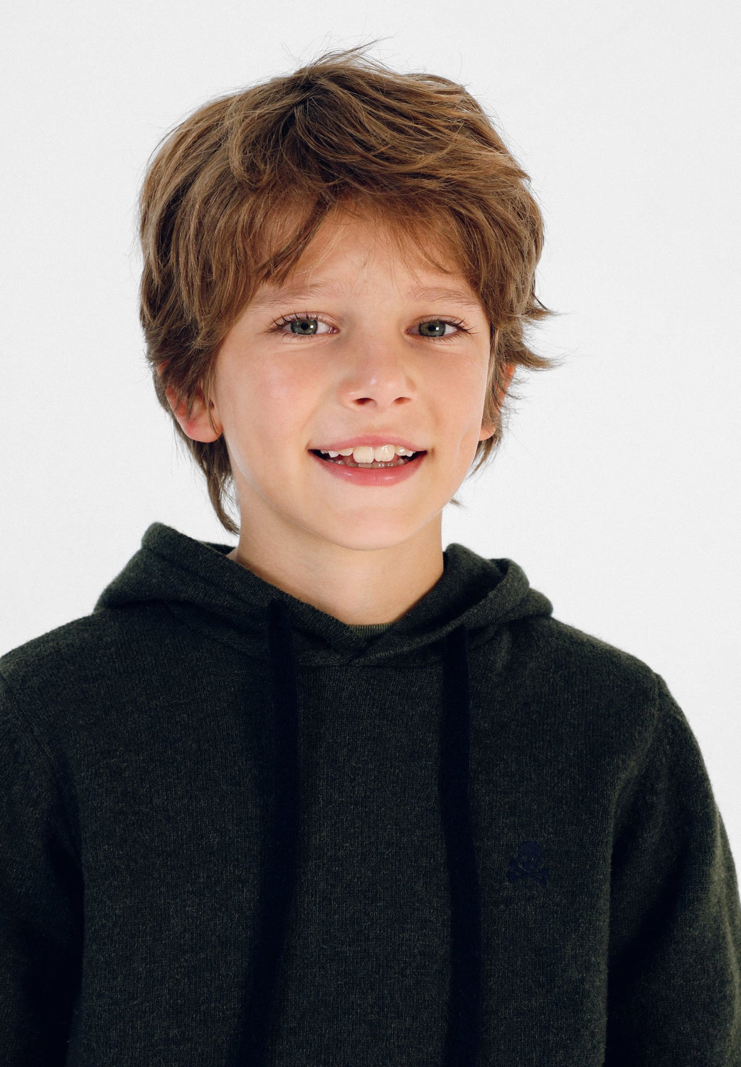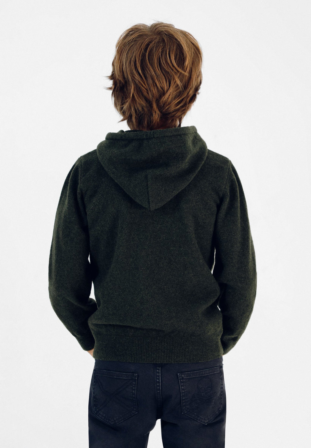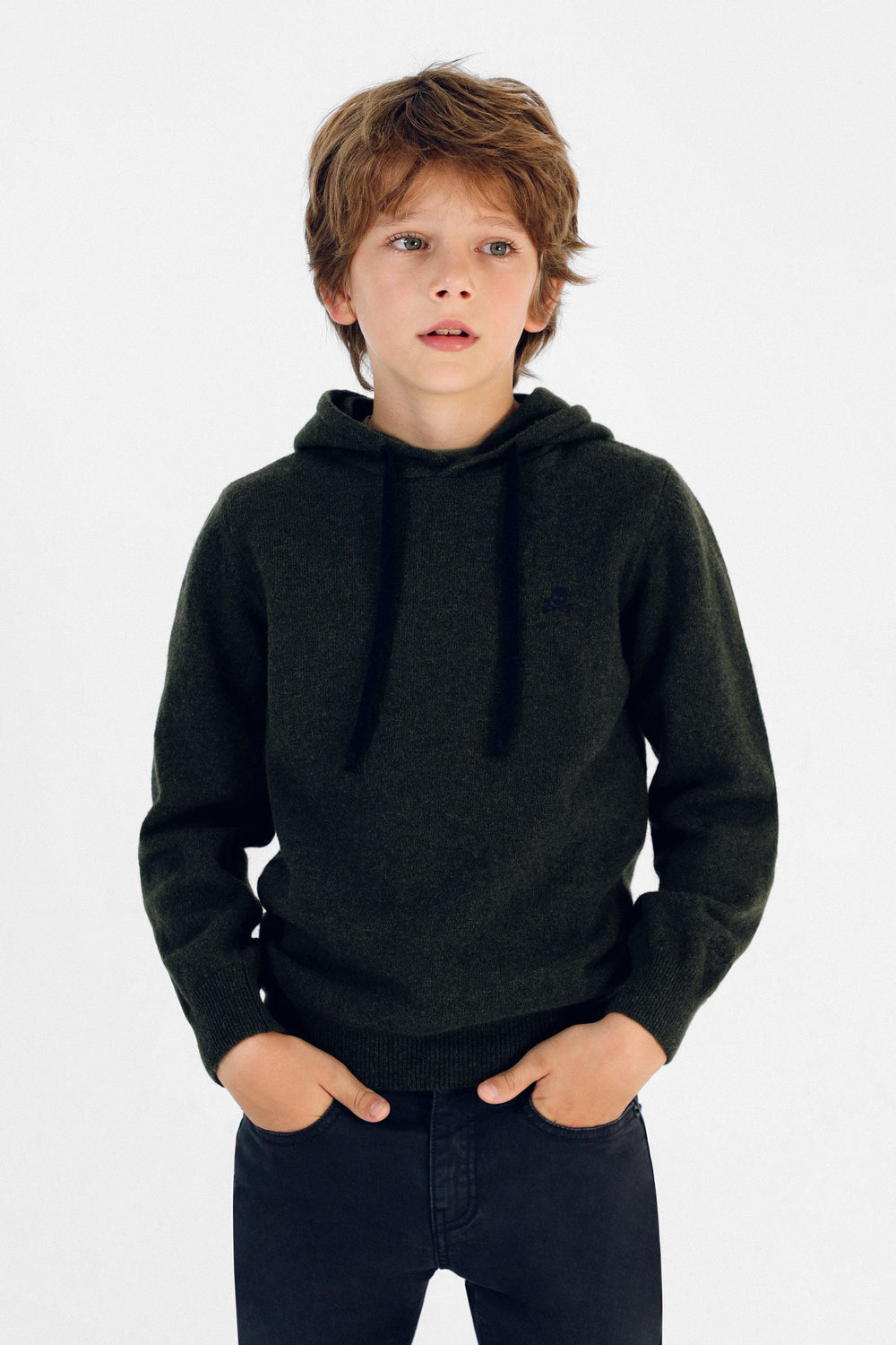 Jersey confeccionado en mezcla de lana. Corte Regular Fit, cuello con capucha ajustable con cordones y manga larga. Detalle de calavera bordada a contraste en el pecho y logo bordado en la manga.