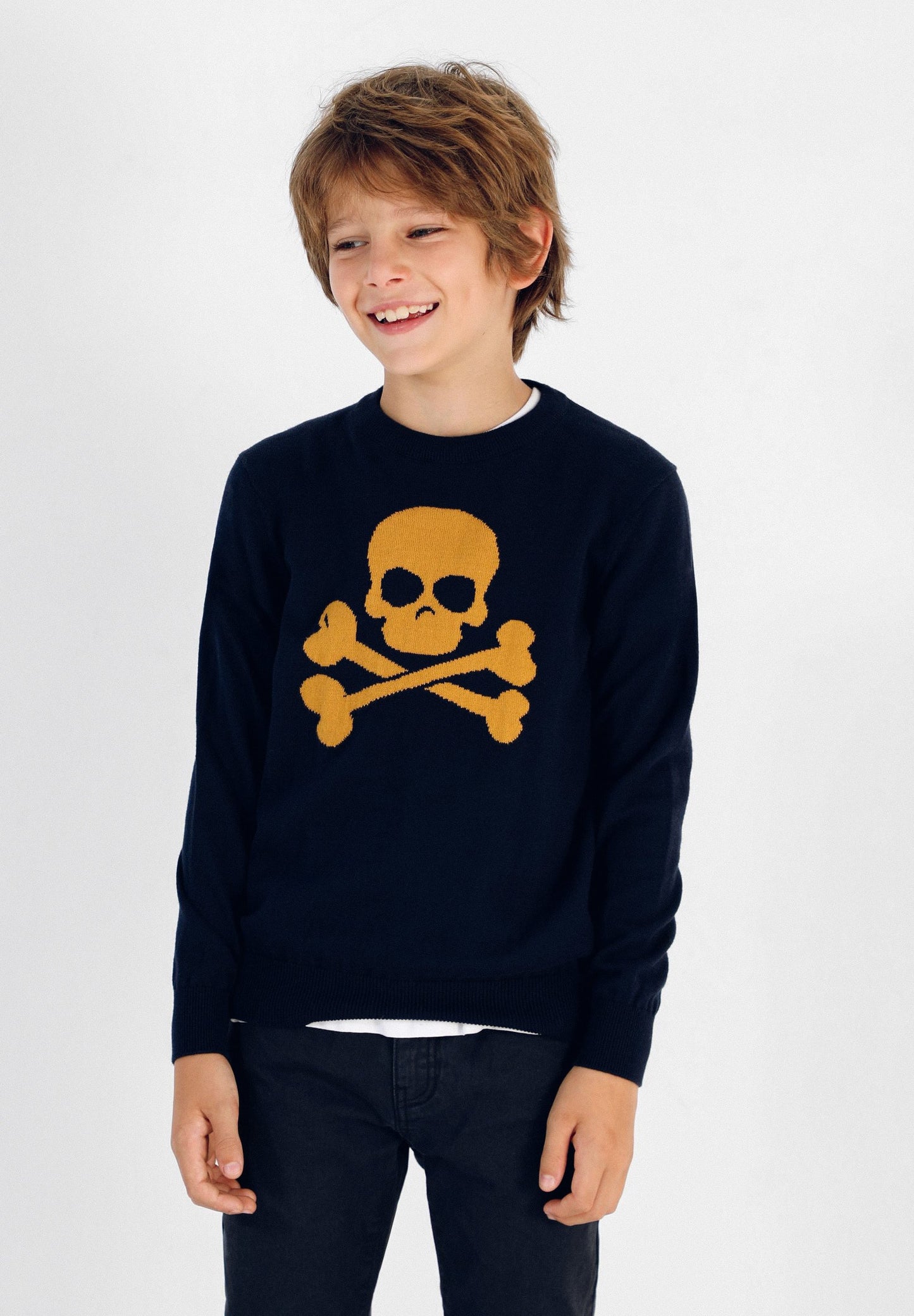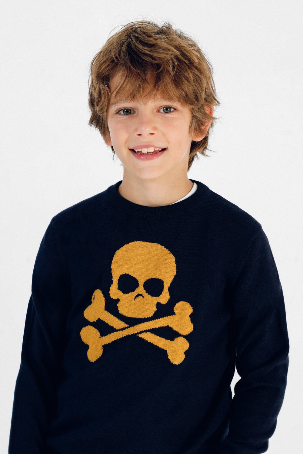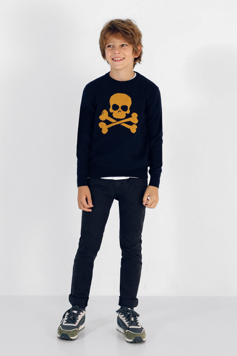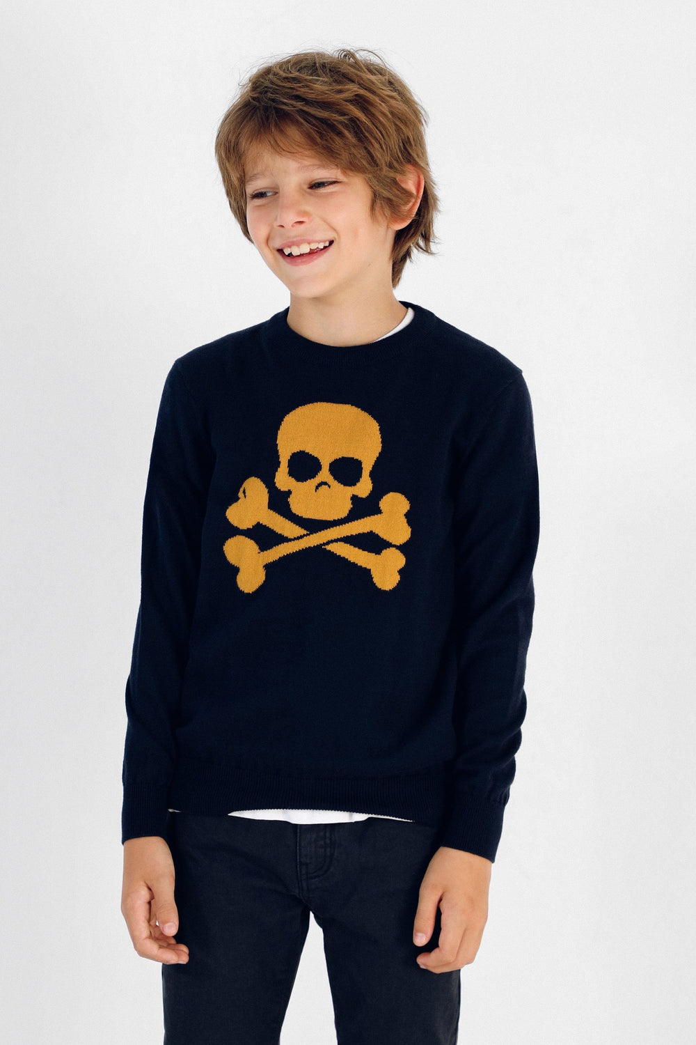 Jersey de punto confeccionado en algodón BCI. Corte Regular Fit, cuello redondo y manga larga. Detalle de calavera frontal en intarsia a contraste.