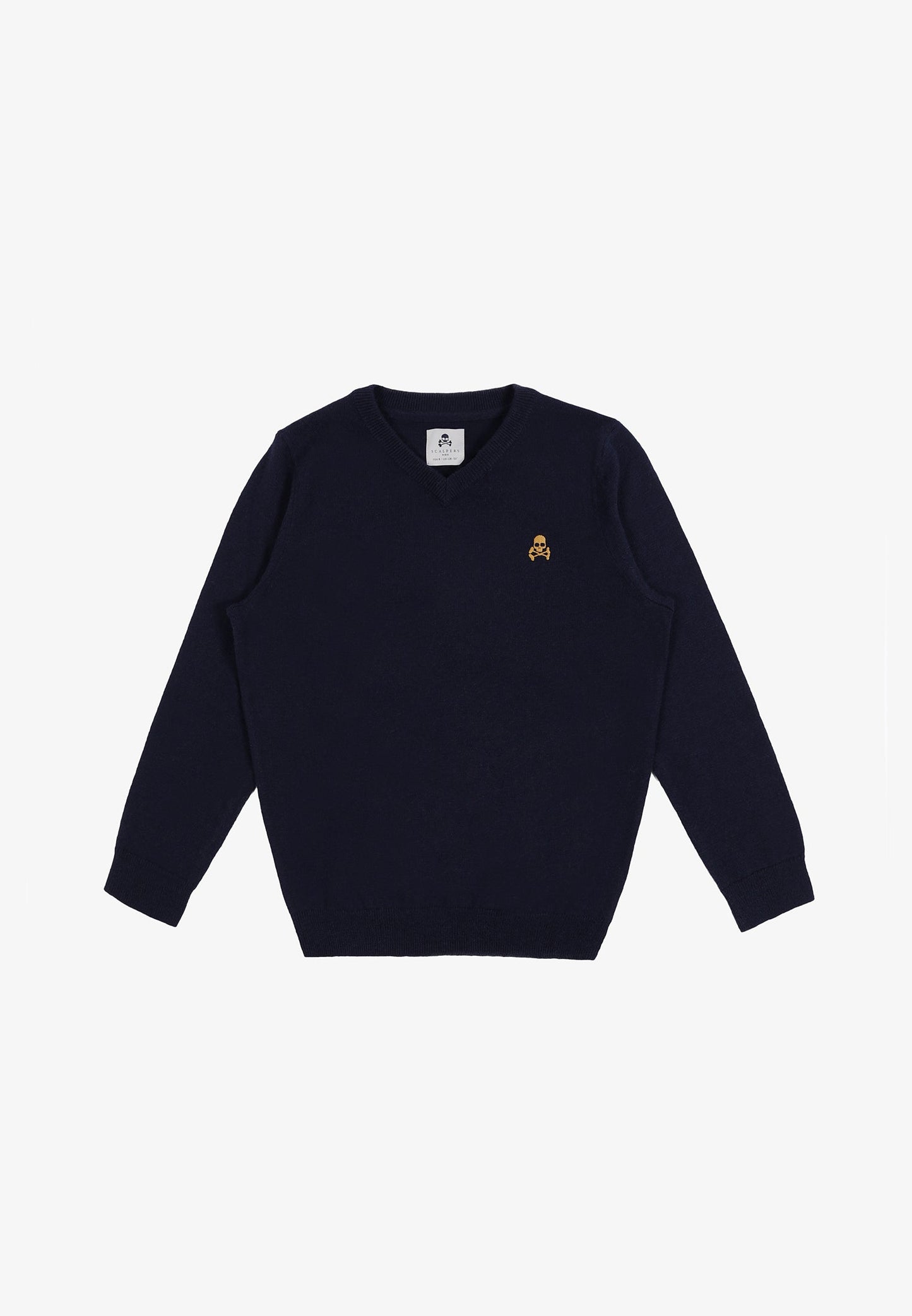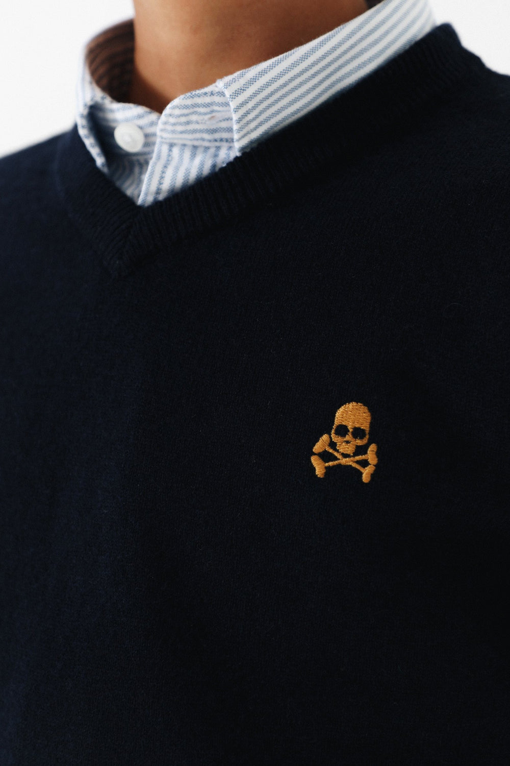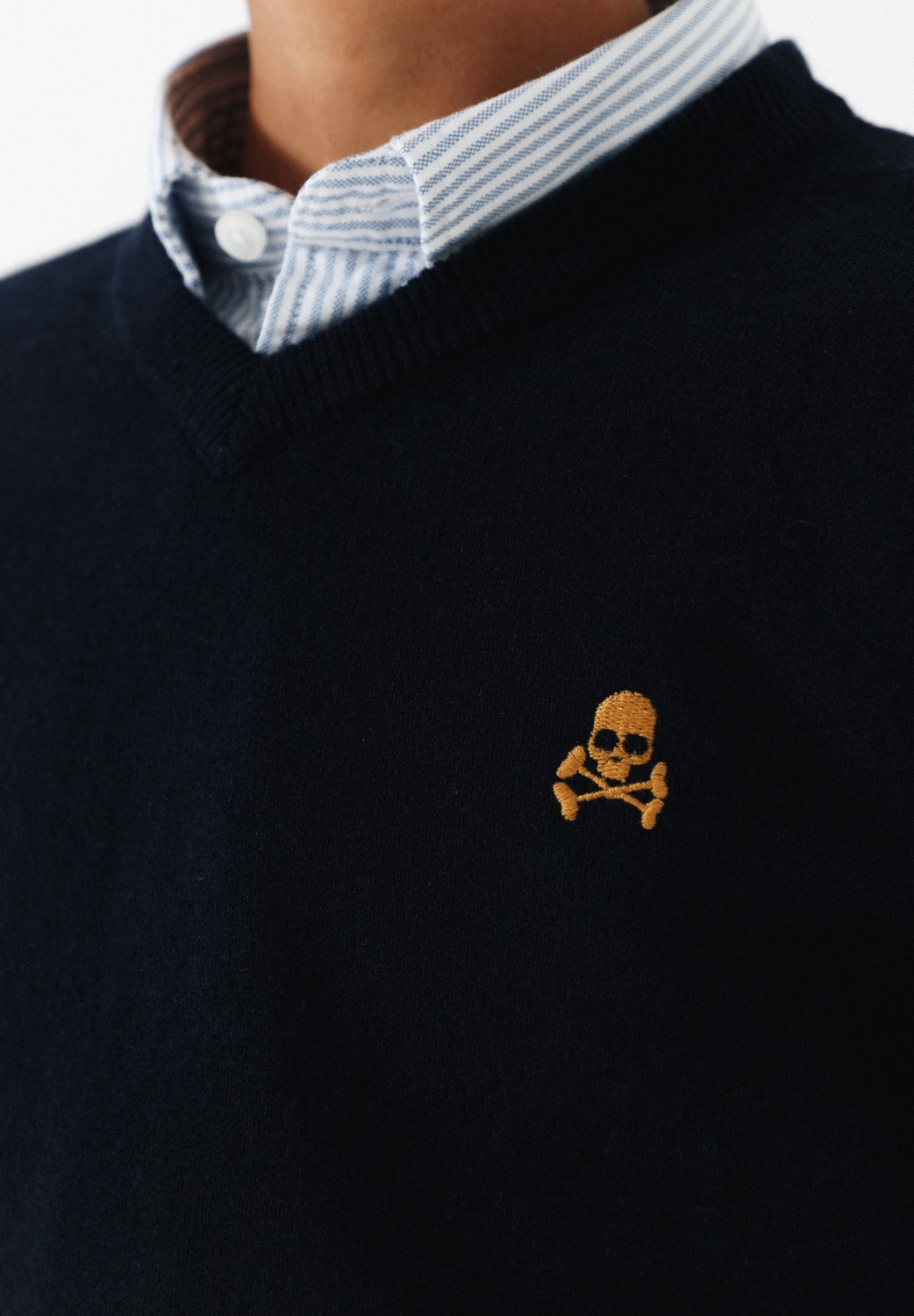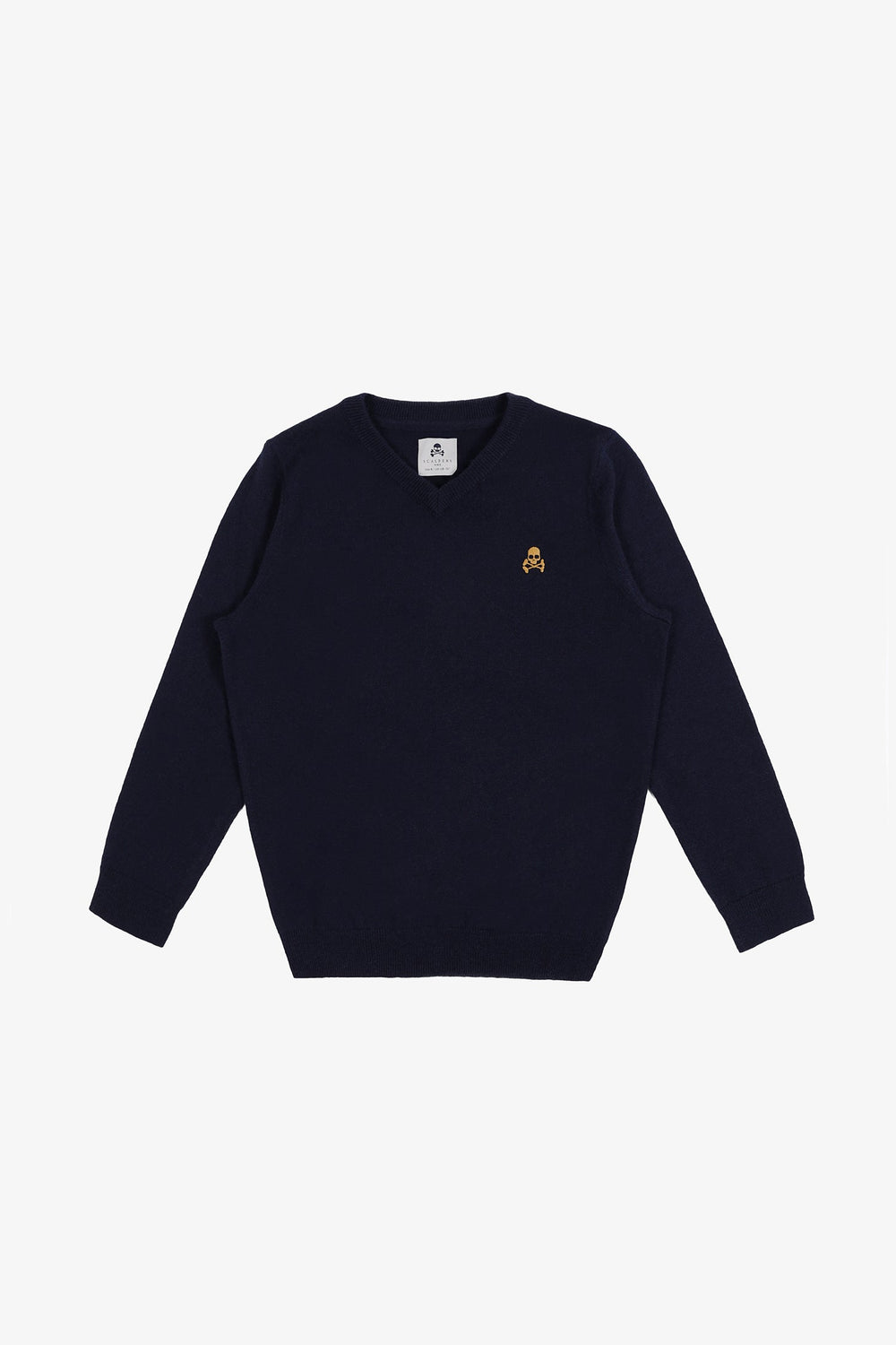 Jersey confeccionado en tejido de algodón BCI y lana. Corte Regular Fit, cuello de pico y manga larga. Detalle de calavera a contraste.