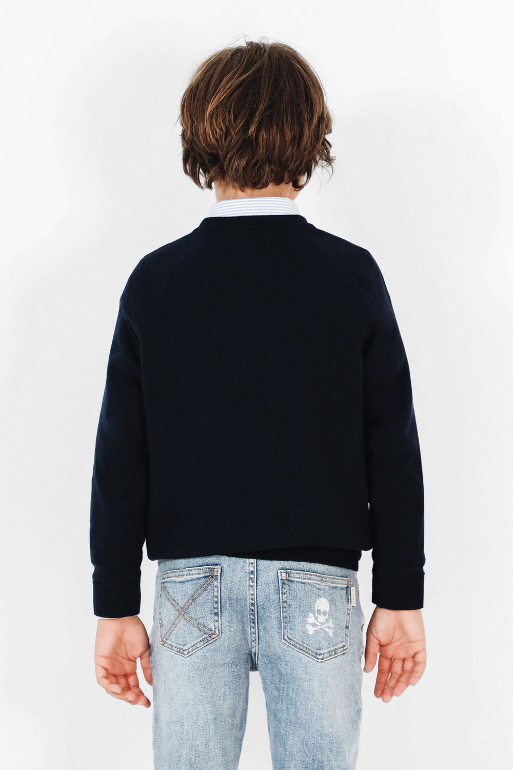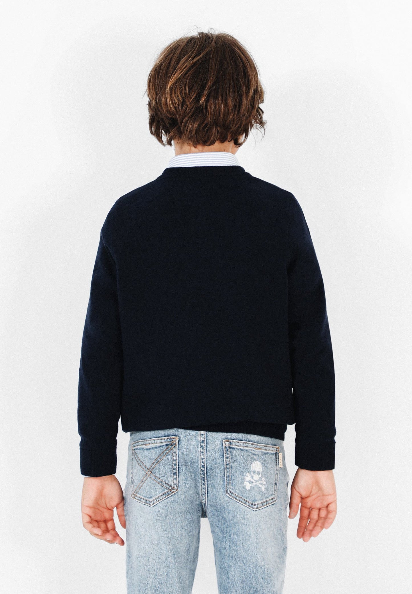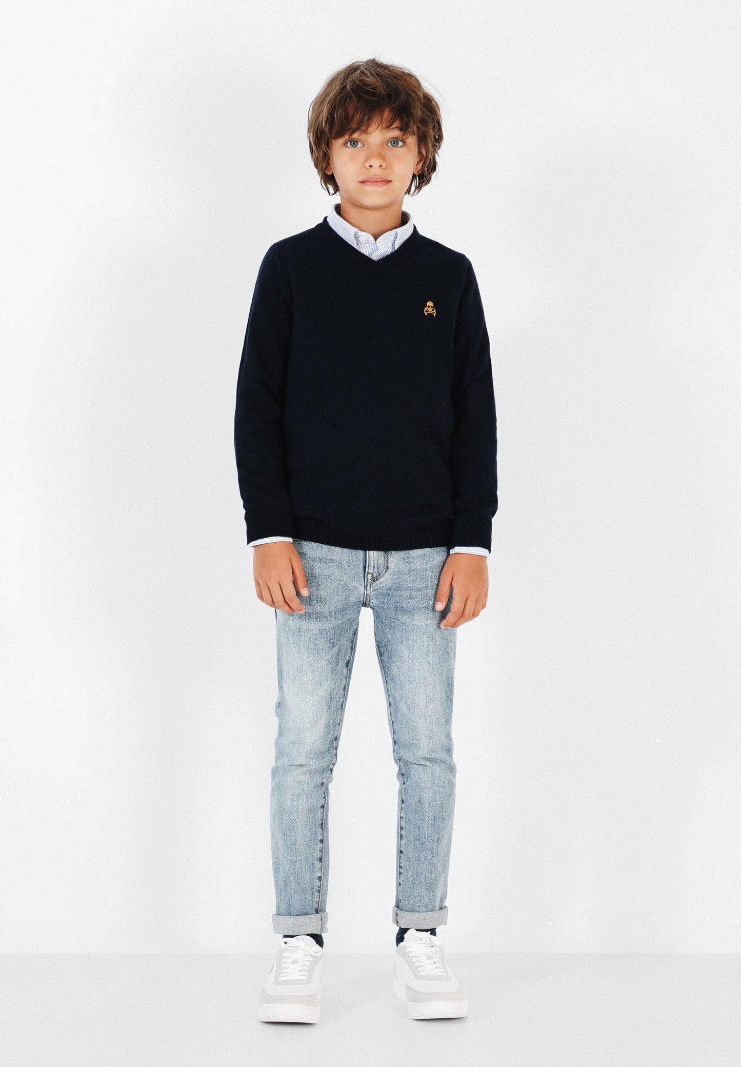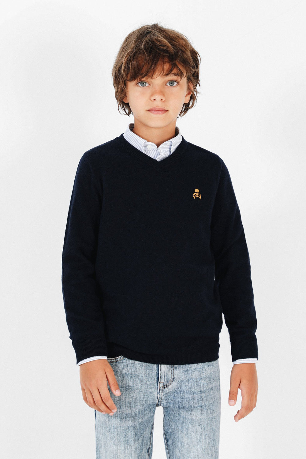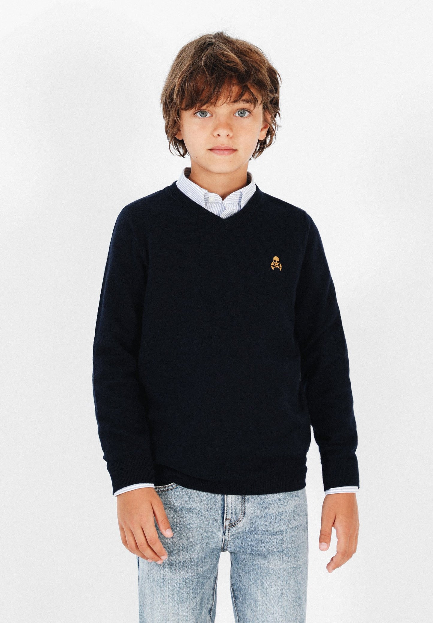 Jersey confeccionado en tejido de algodón BCI y lana. Corte Regular Fit, cuello de pico y manga larga. Detalle de calavera a contraste.