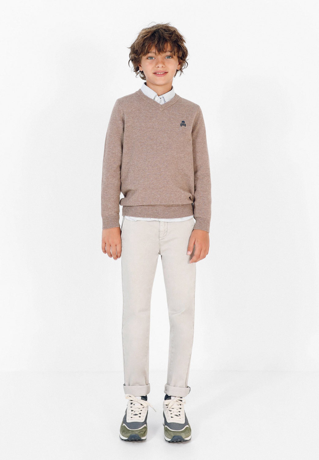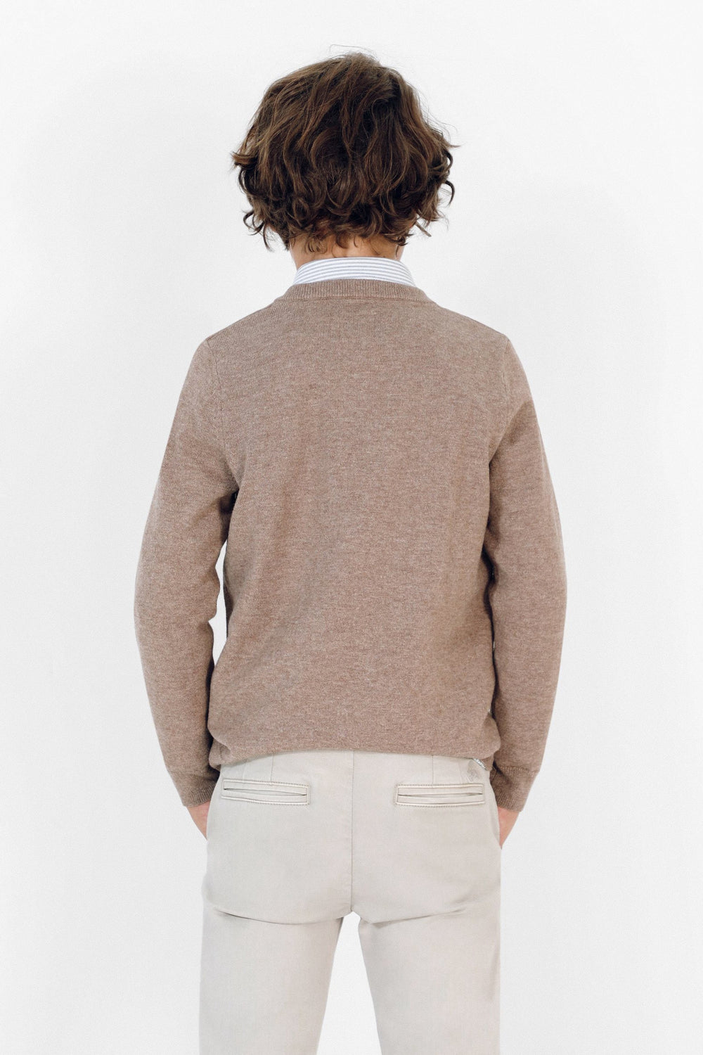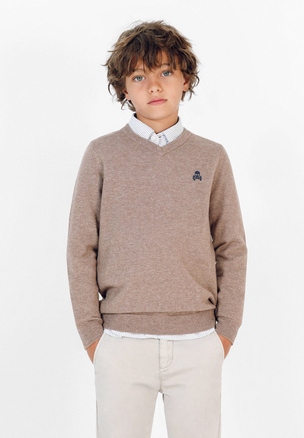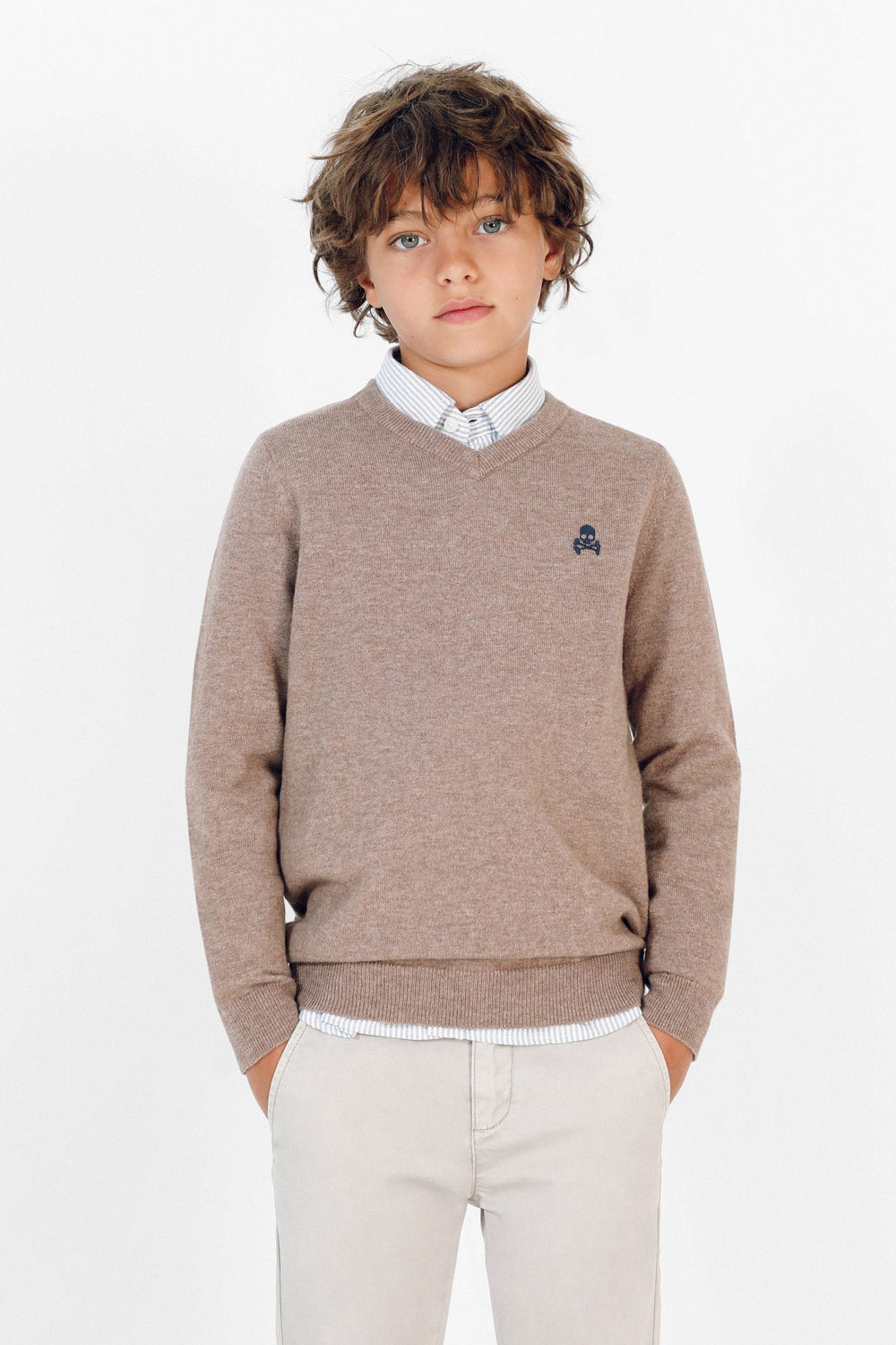 Jersey confeccionado en tejido de algodón BCI y lana. Corte Regular Fit, cuello de pico y manga larga. Detalle de calavera a contraste.