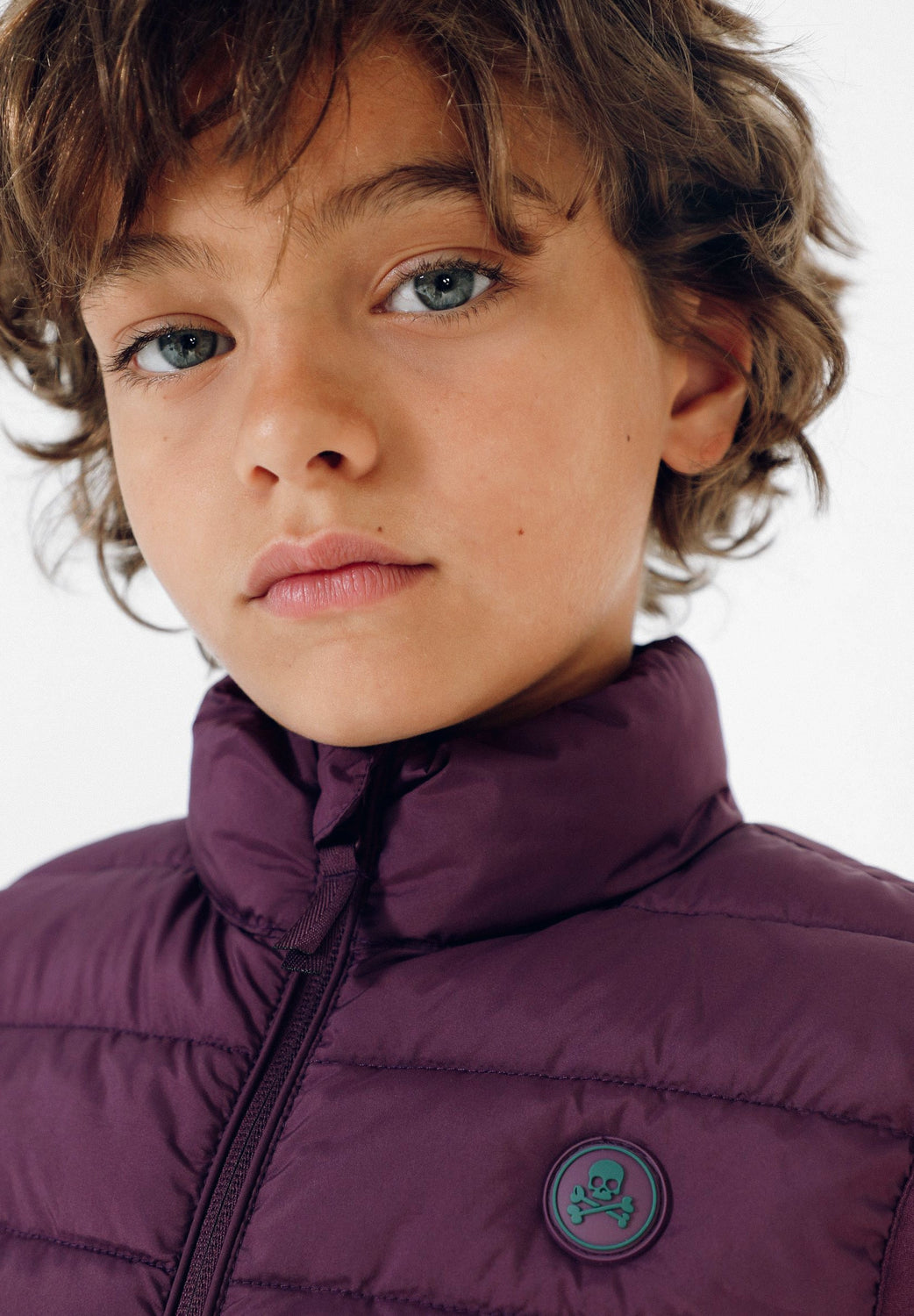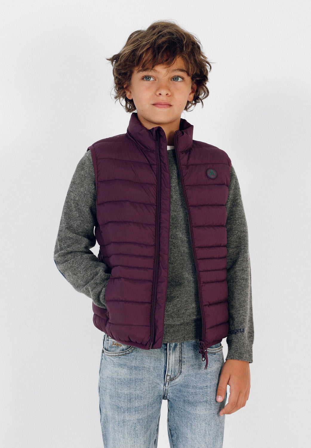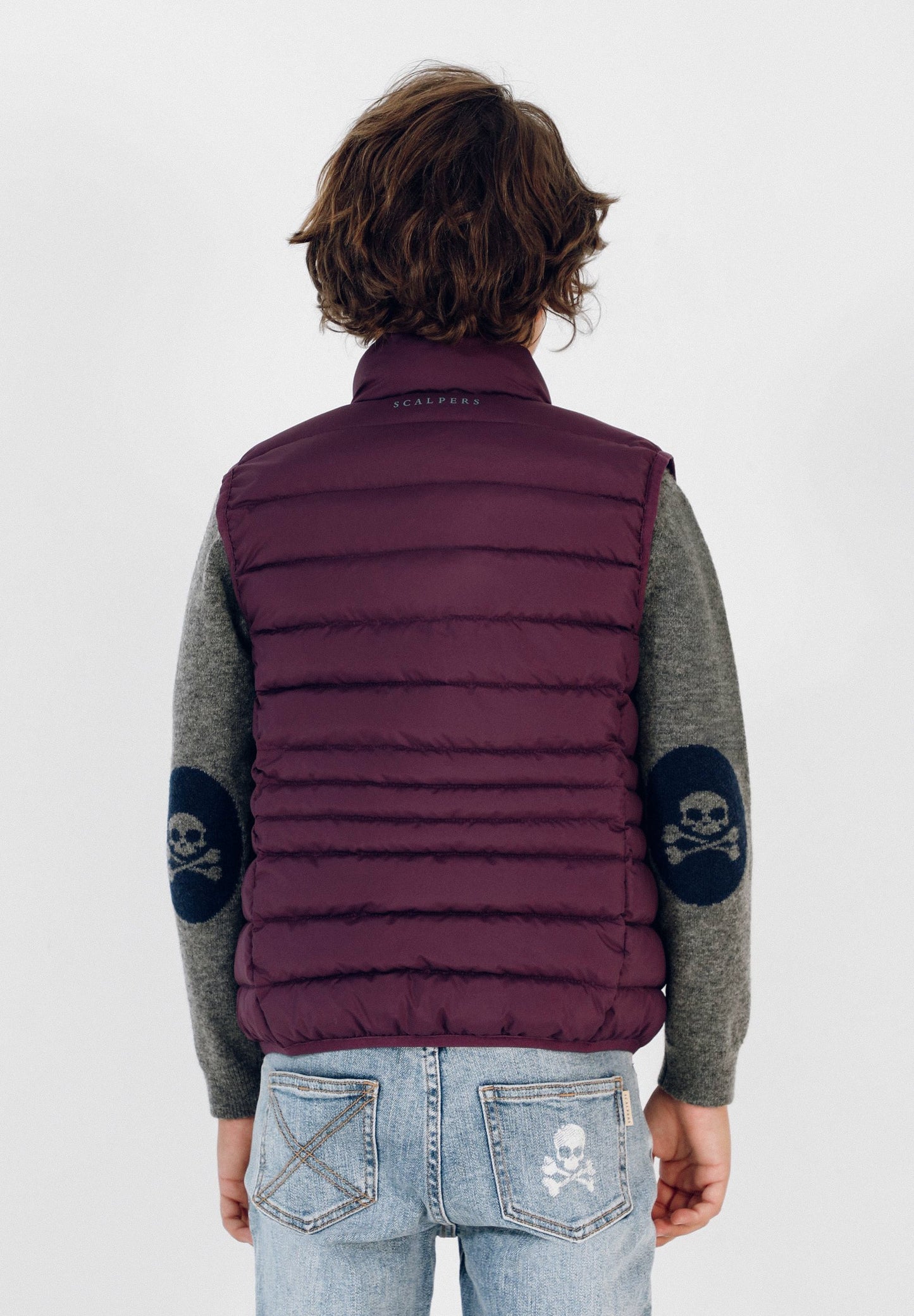 Chaleco sin mangas confeccionado en poliéster reciclado. Corte recto, cuello subido y cierre con cremallera de doble carro. Tiene bolsillos con cremallera laterales y presenta como detalle la calavera engomada en el pecho.