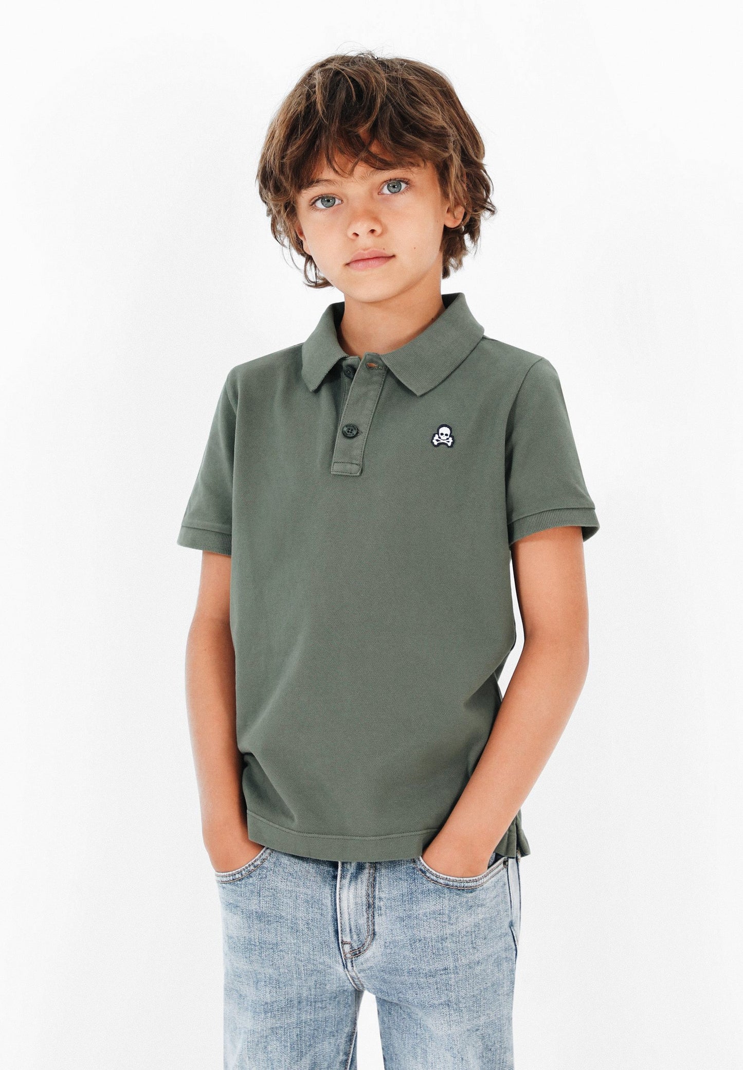 Polo confeccionado en tejido 100% algodón. Corte Regular Fit, cuello clásico y cierre con botones. Detalle de bordado de calavera en el pecho.