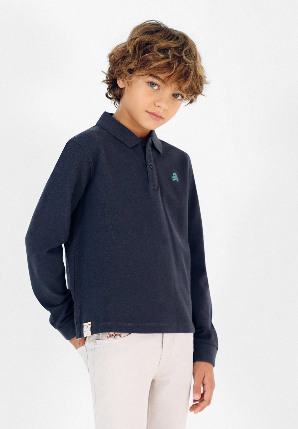 Polo confeccionado en tejido de algodón. Corte Regular Fit, cuello clásico y cierre con botones. Manga larga terminada en ribs y detalle de calavera trasera con estampado de kilim y calavera bordada delantera.