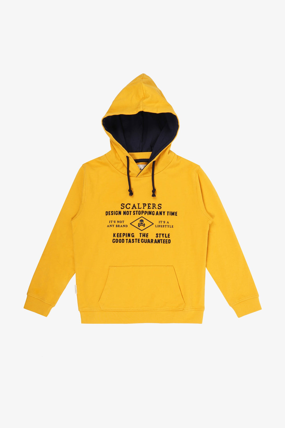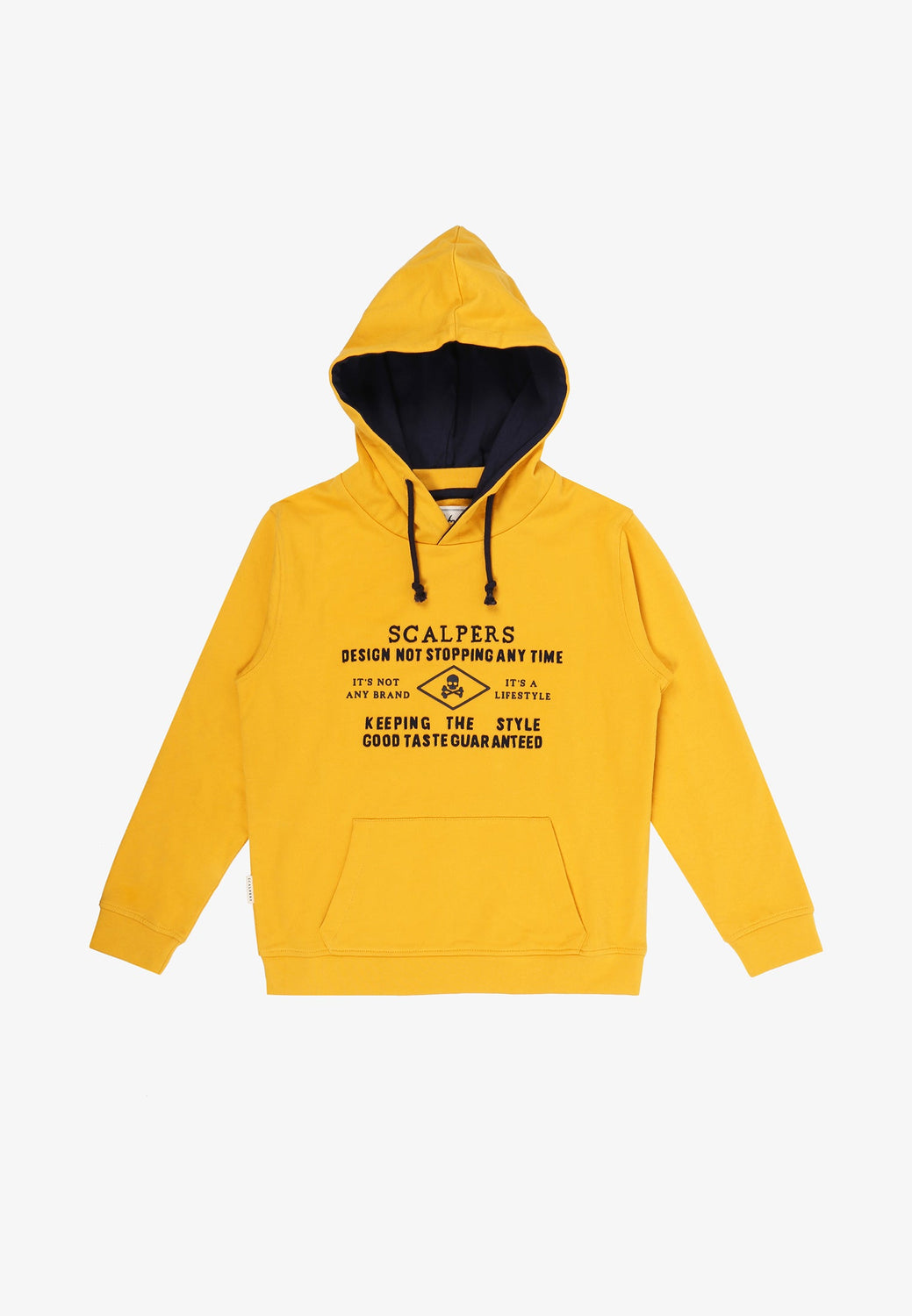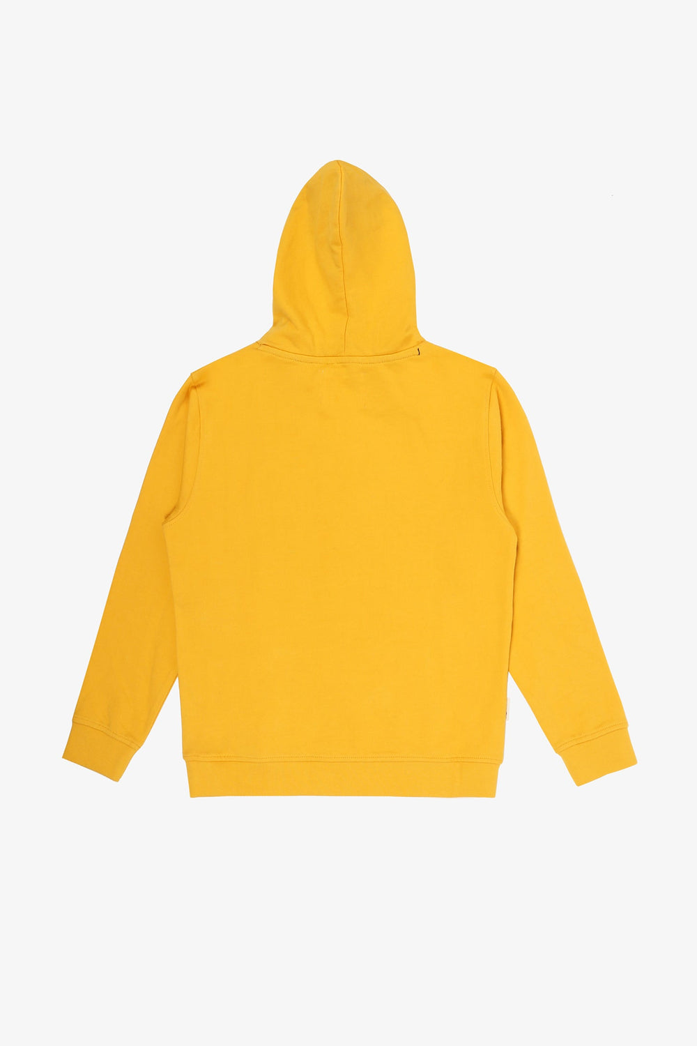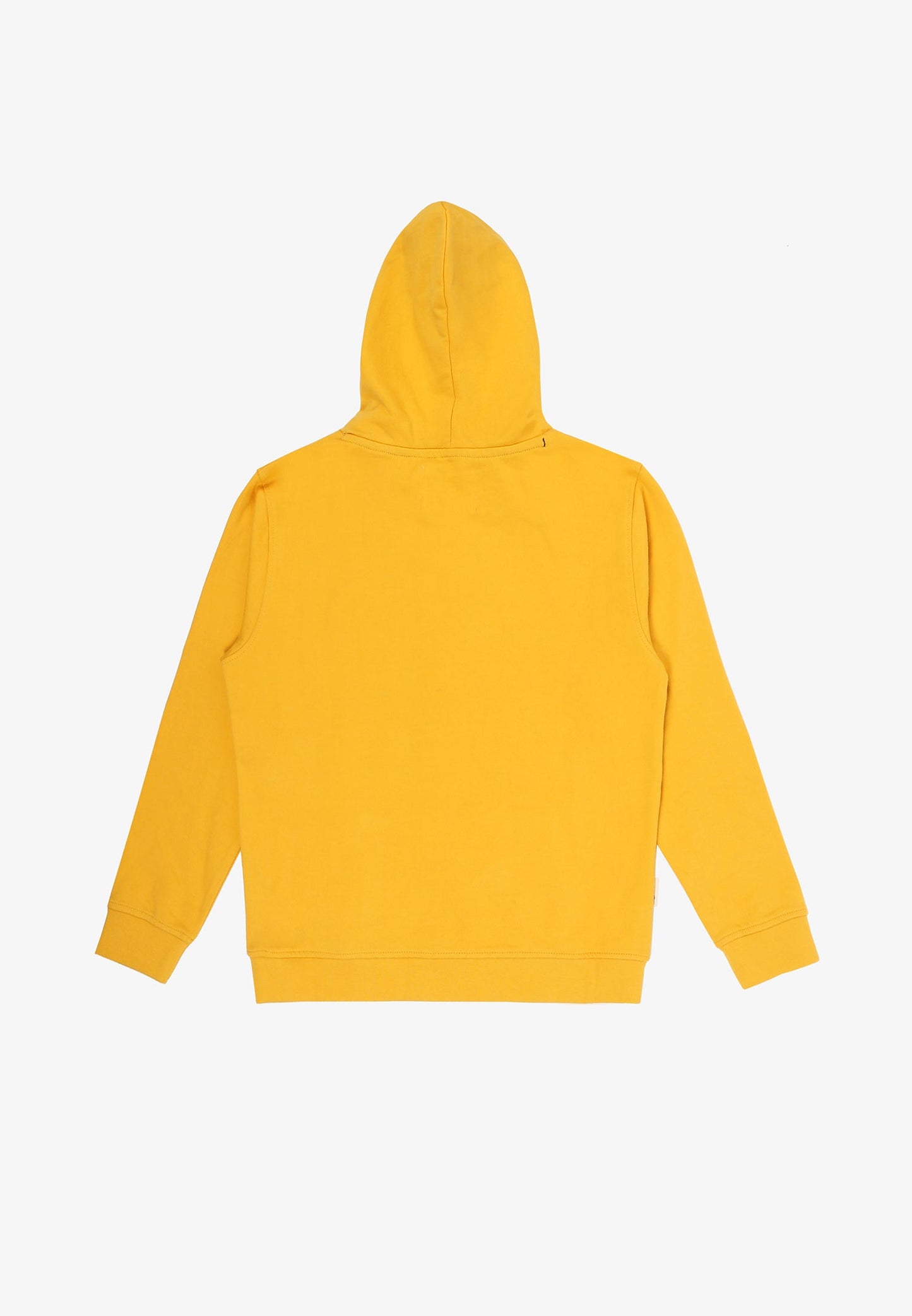 Sudadera confeccionada en tejido 100% algodón orgánico. Corte Regular Fit, cuello con capucha ajustable con cordón y manga larga. Bolsillo delantero canguro y detalle de print delantero.