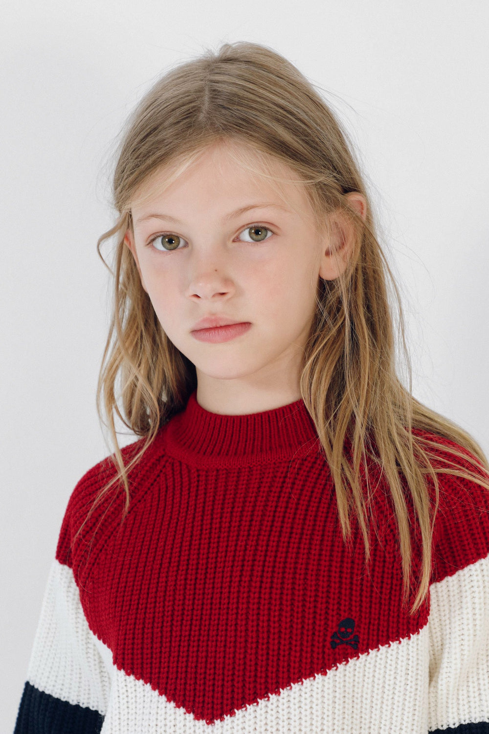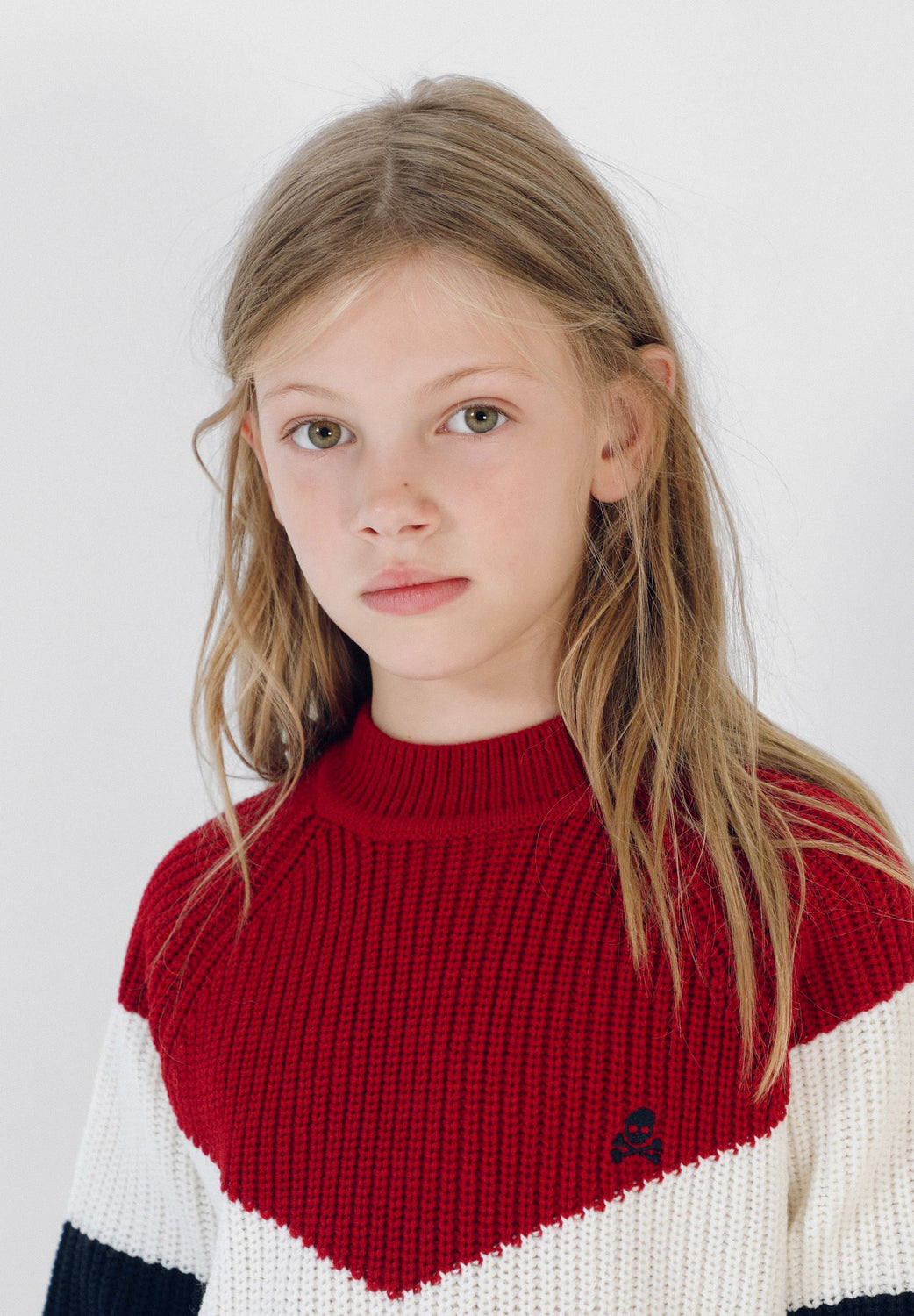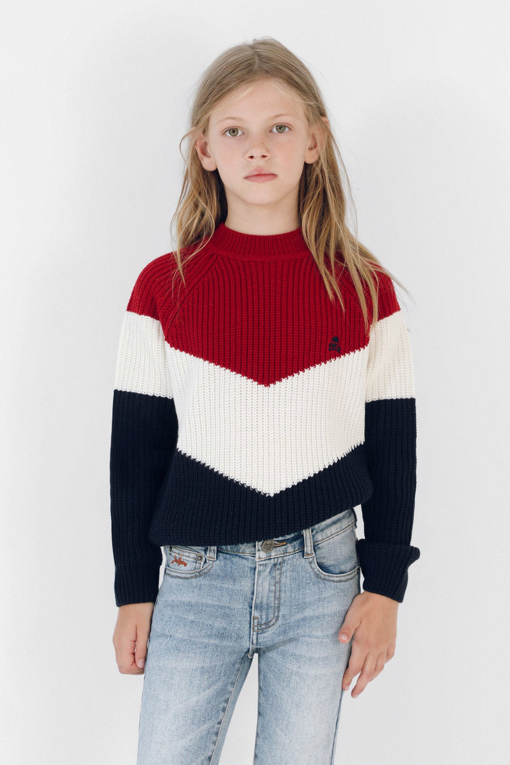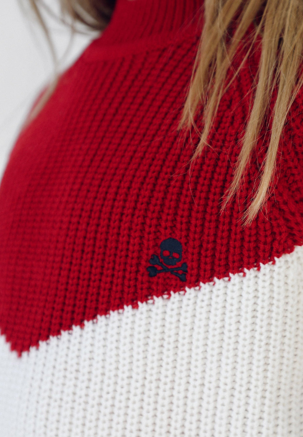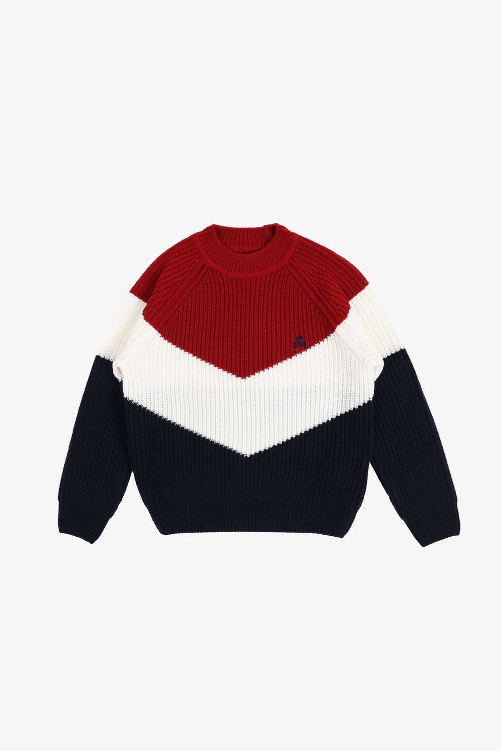 Jersey colour block de punto confeccionado en tejido de lana. Corte Regular Fit, cuello redondo y manga larga. Detalle de calavera bordada.
