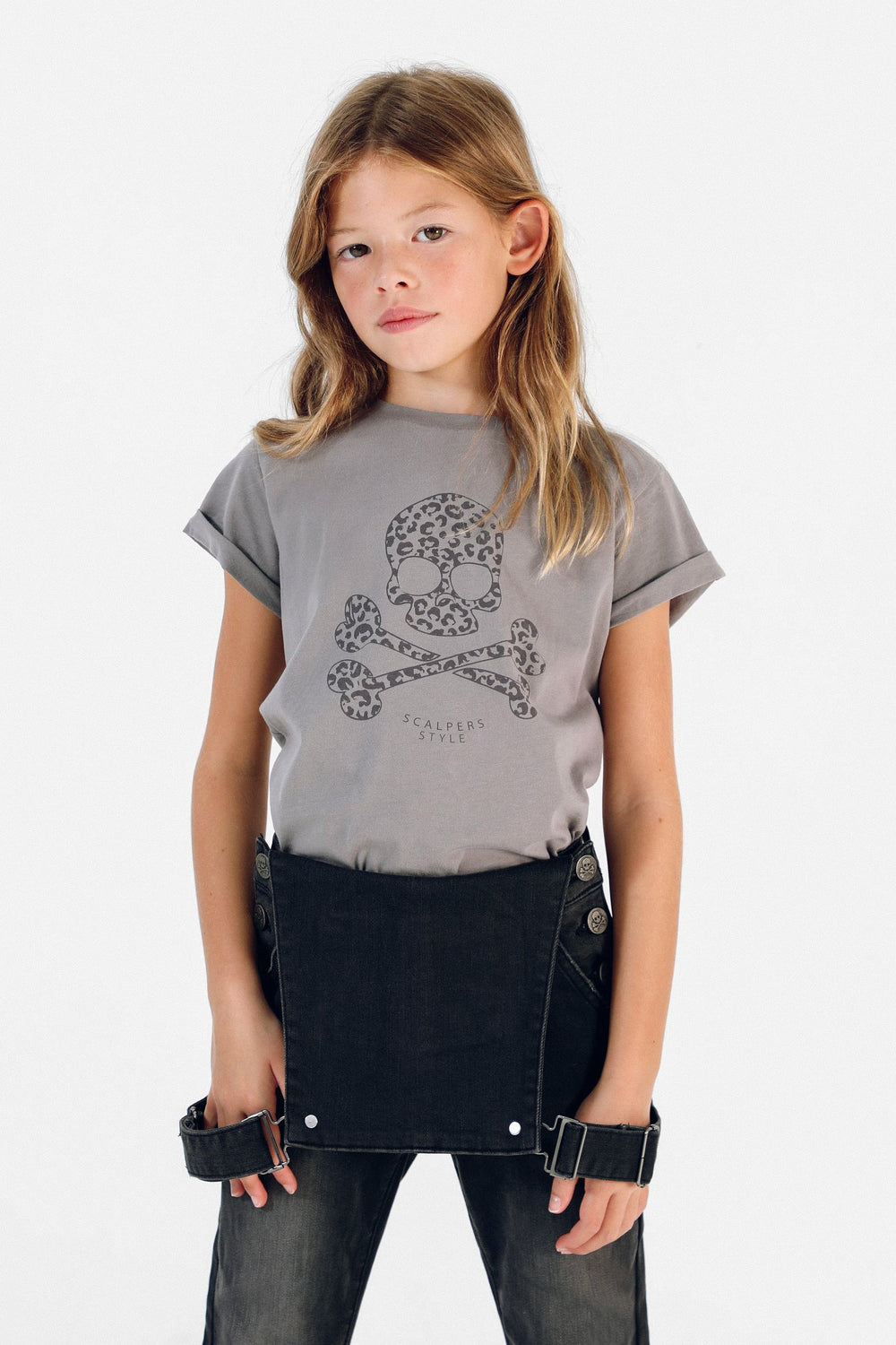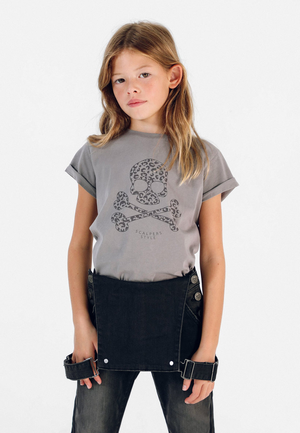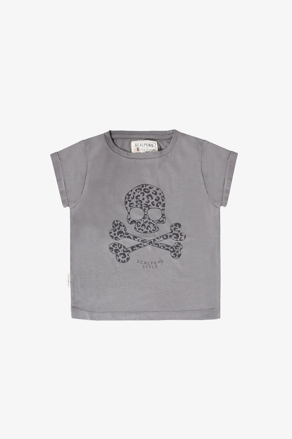 Camiseta confeccionada en tejido 100% orgánico. Corte Regular Fit, cuello redondo y manga corta. Detalle de calavera con animal print.
