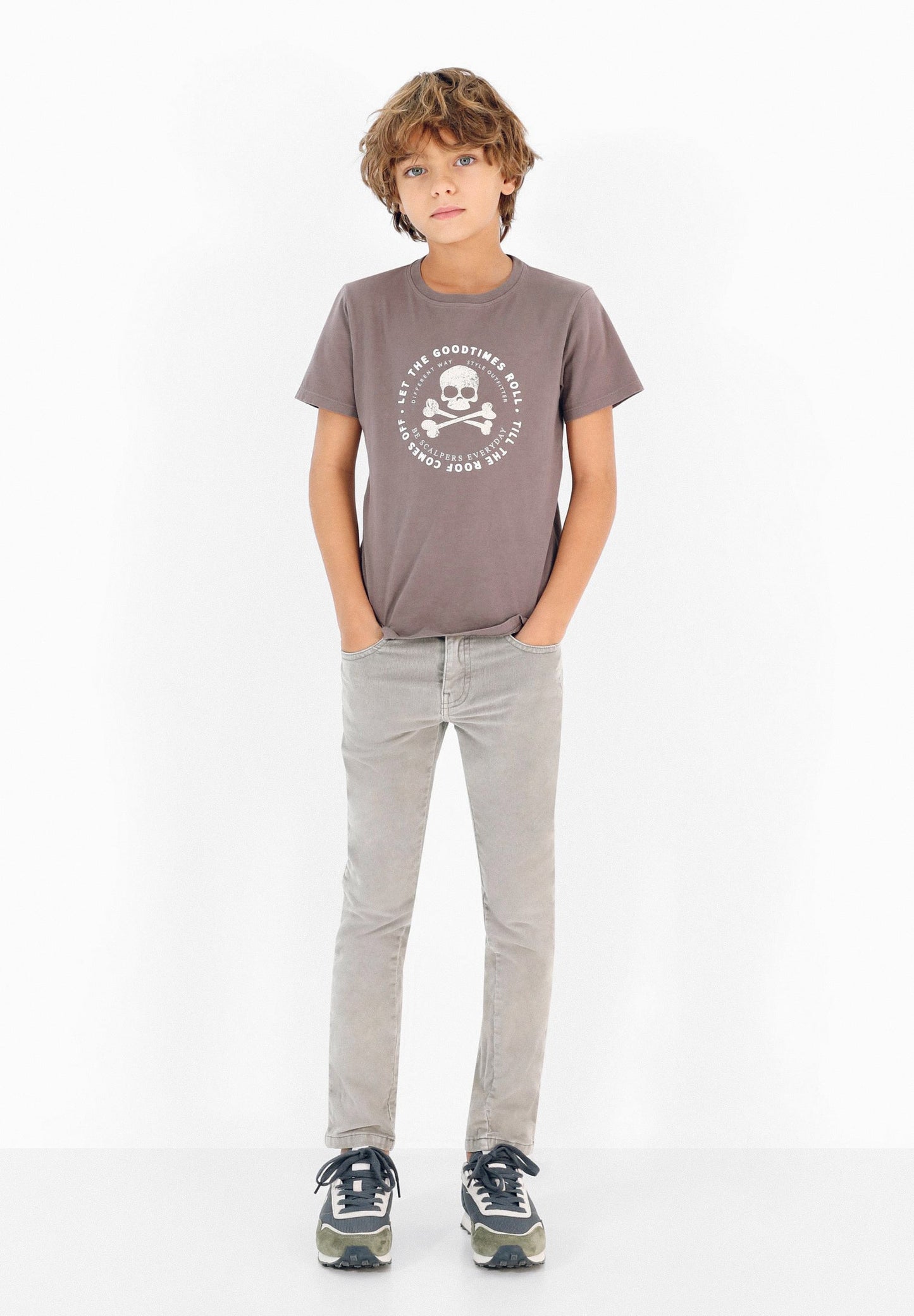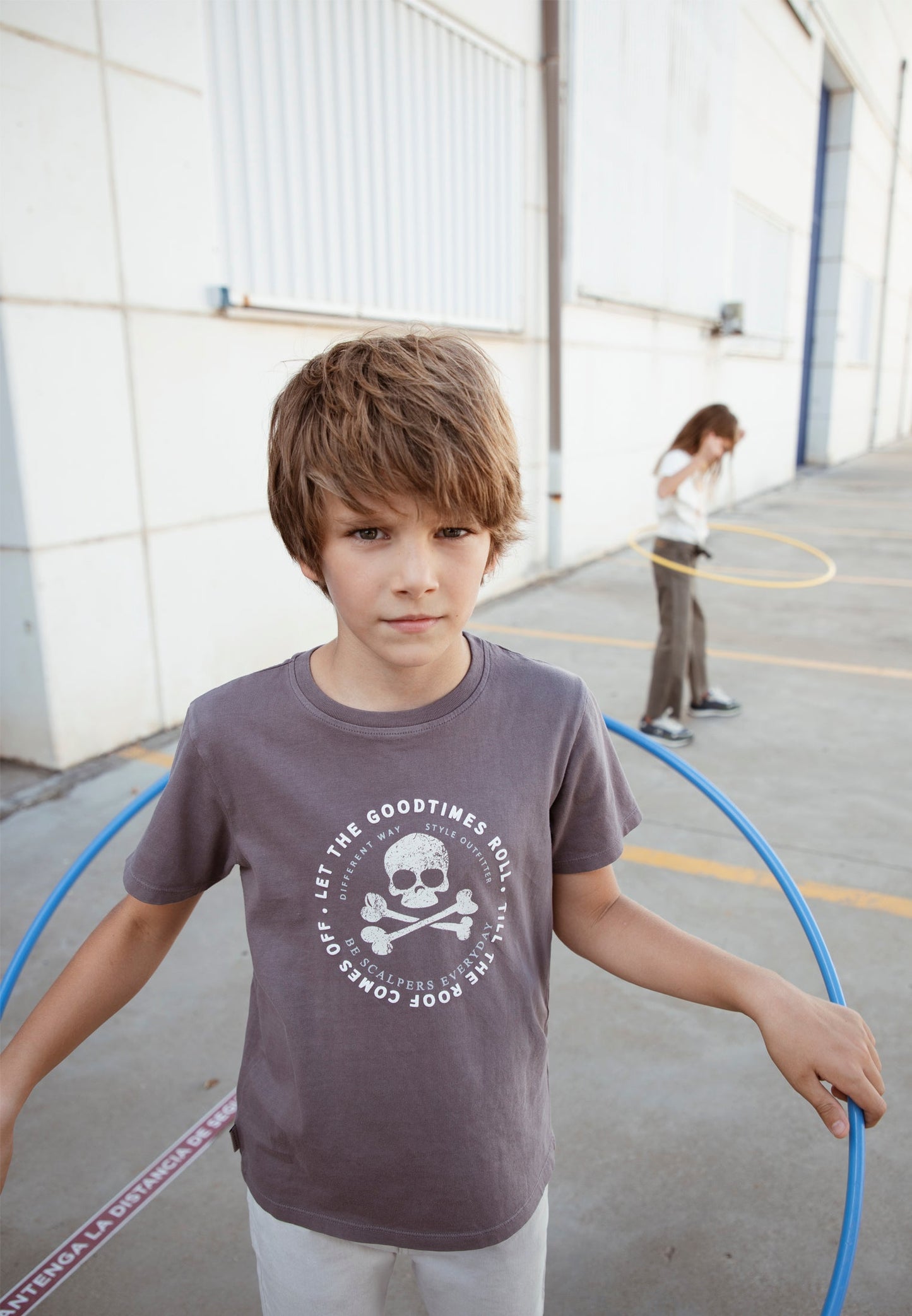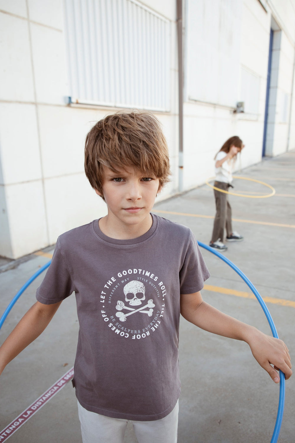 Camiseta confeccionado en tejido 100% algodón orgánico. Corte Regular Fit, cuello redondo y manga corta. Detalle de print frontal circular.