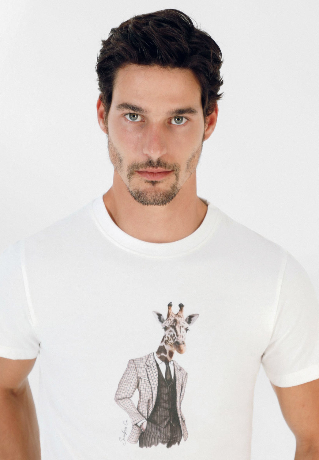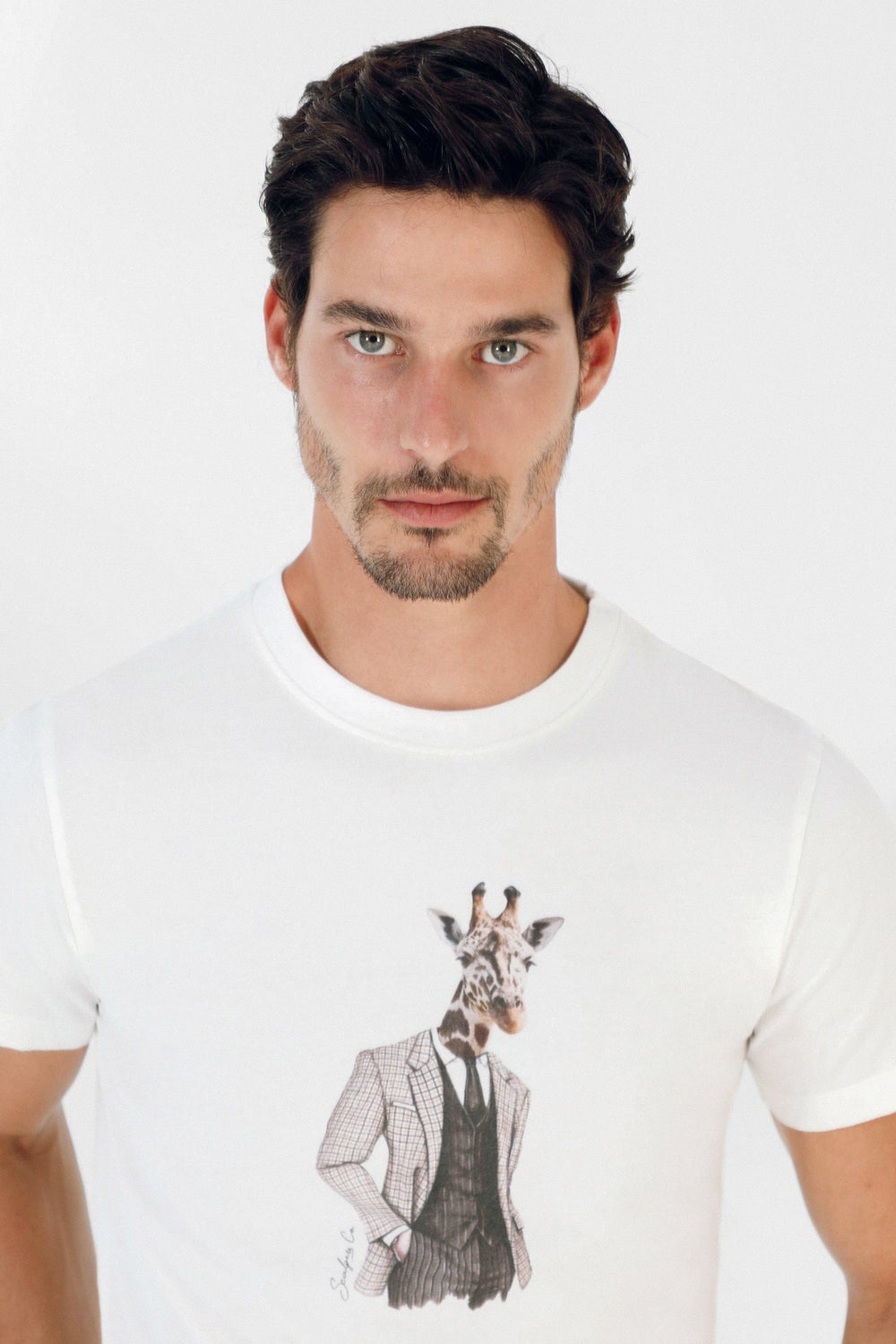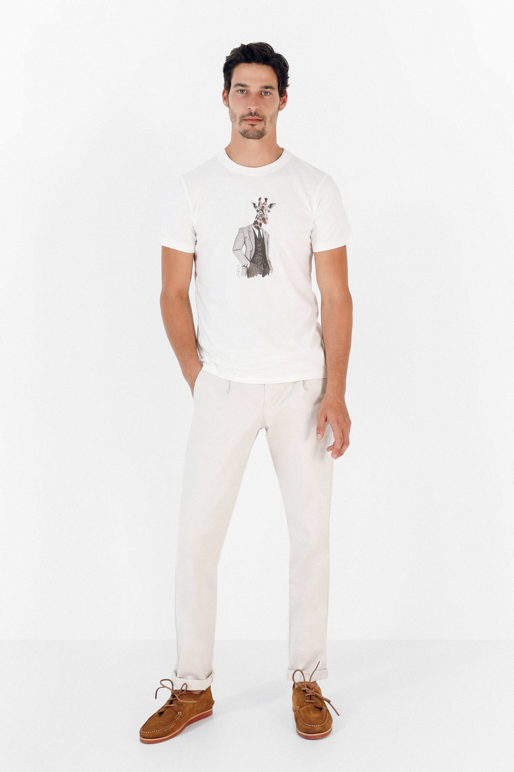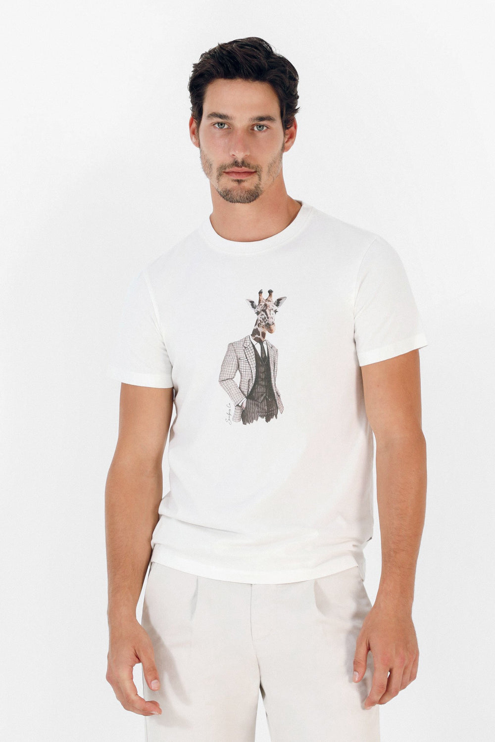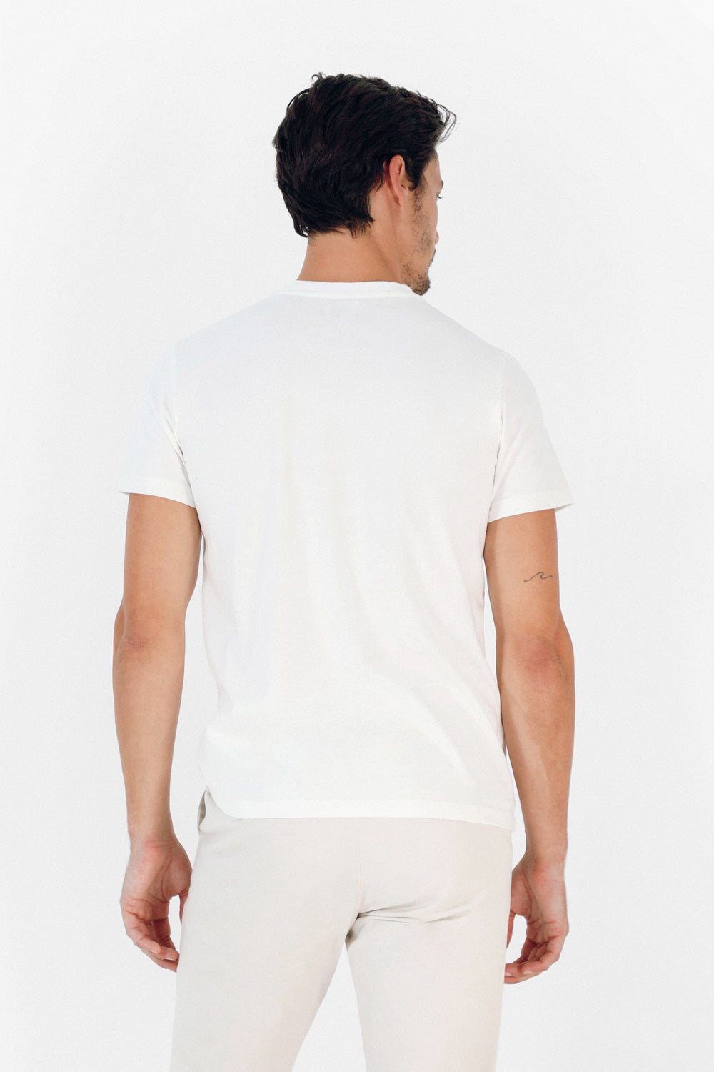 Camiseta confeccionada en tejido 100% algodón reciclado. Corte Regular Fit, cuello redondo y manga corta. Detalle de collage en la parte delantera.