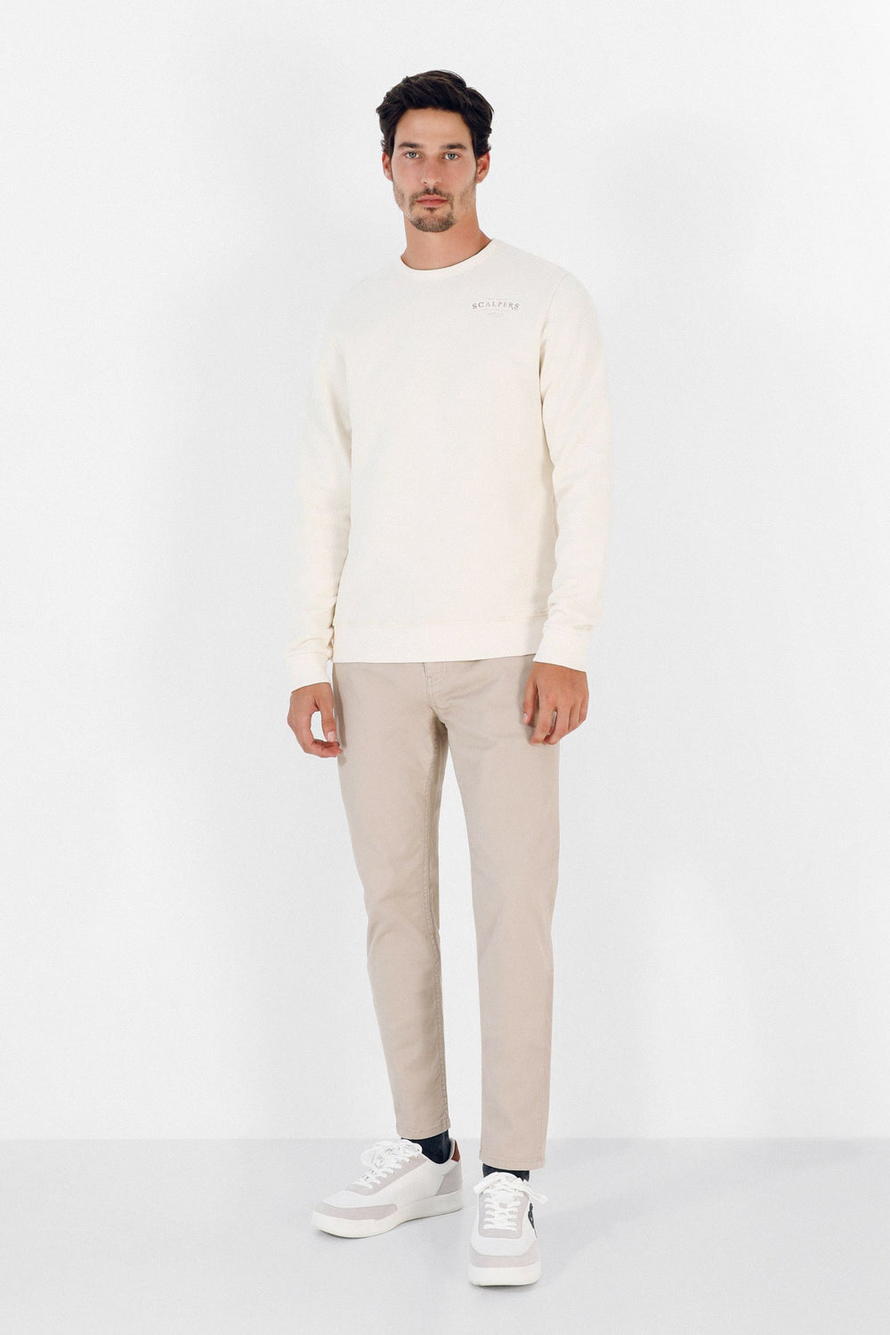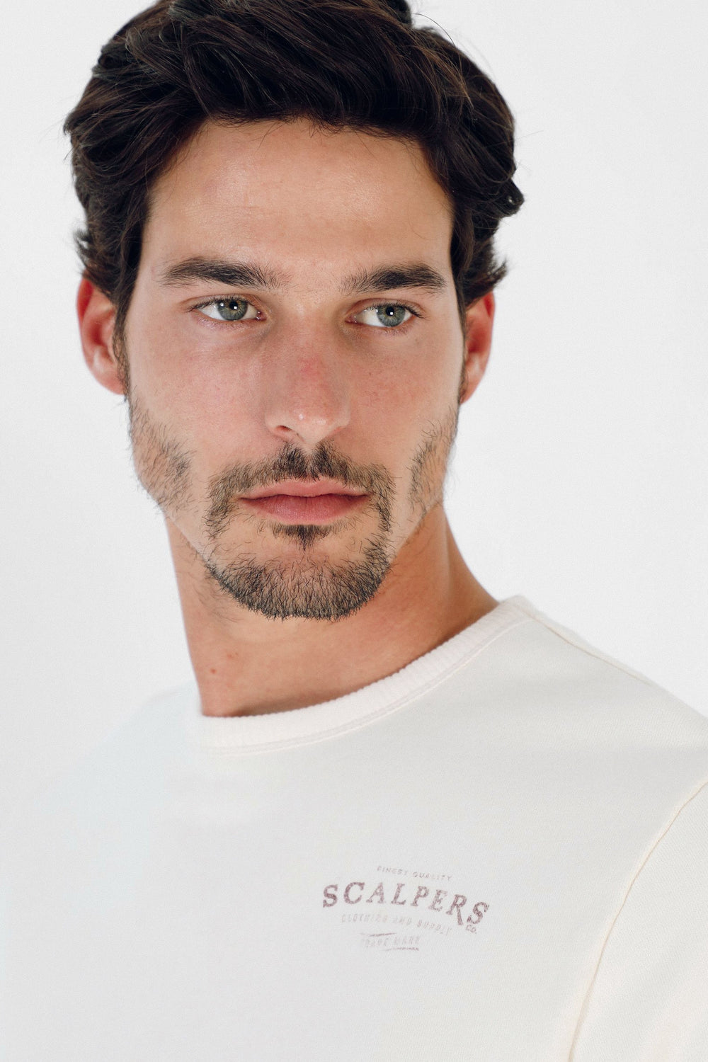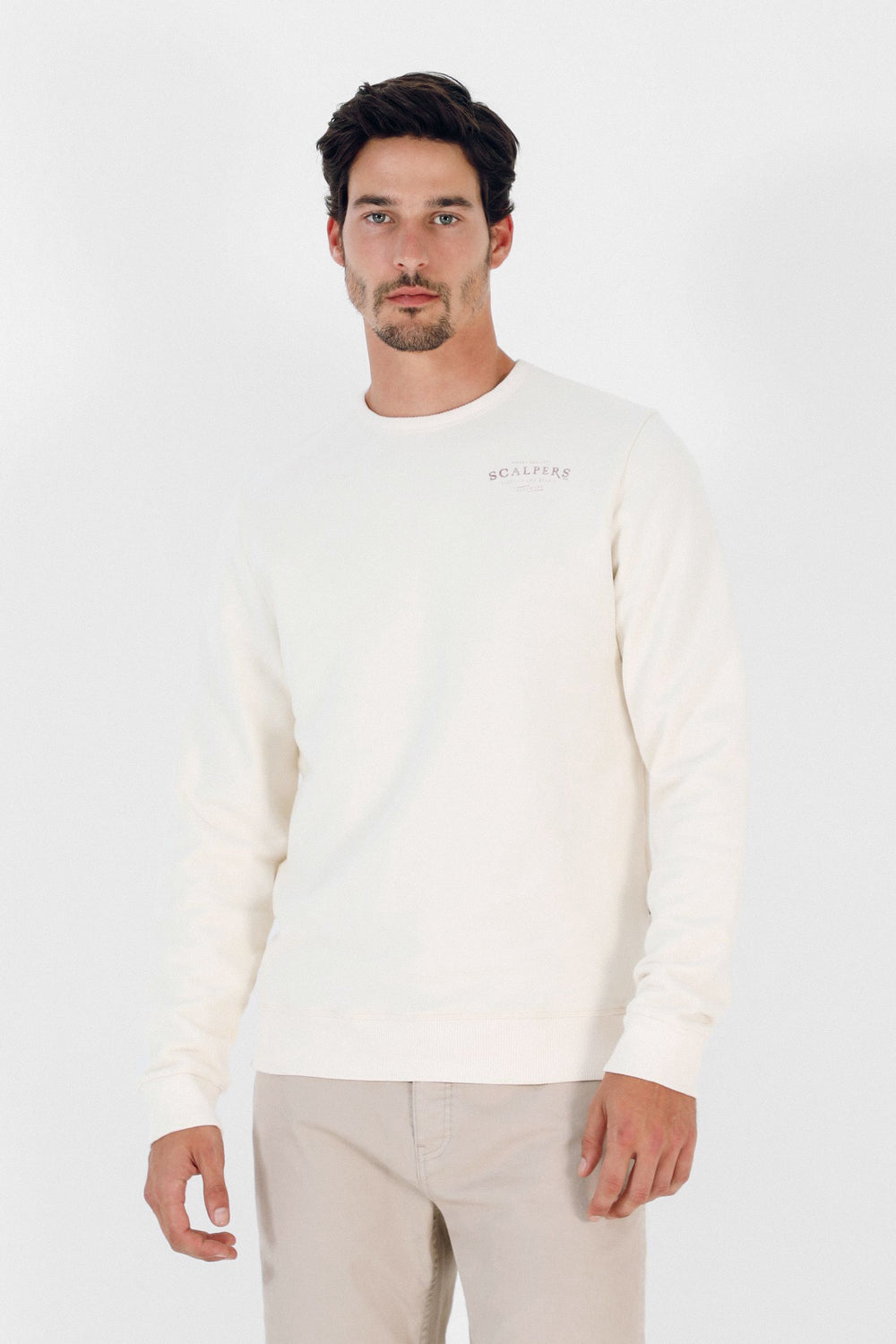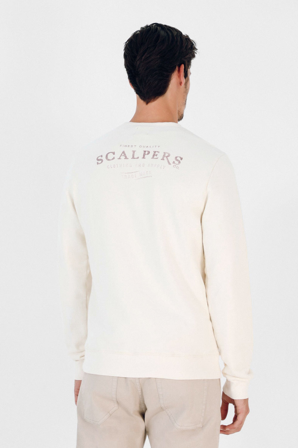 Sudadera con print desgastado trasero y frontal confeccionado en 100% algodón orgánico con tacto suave. Corte Regular Fit, cuello redondo y manga larga.